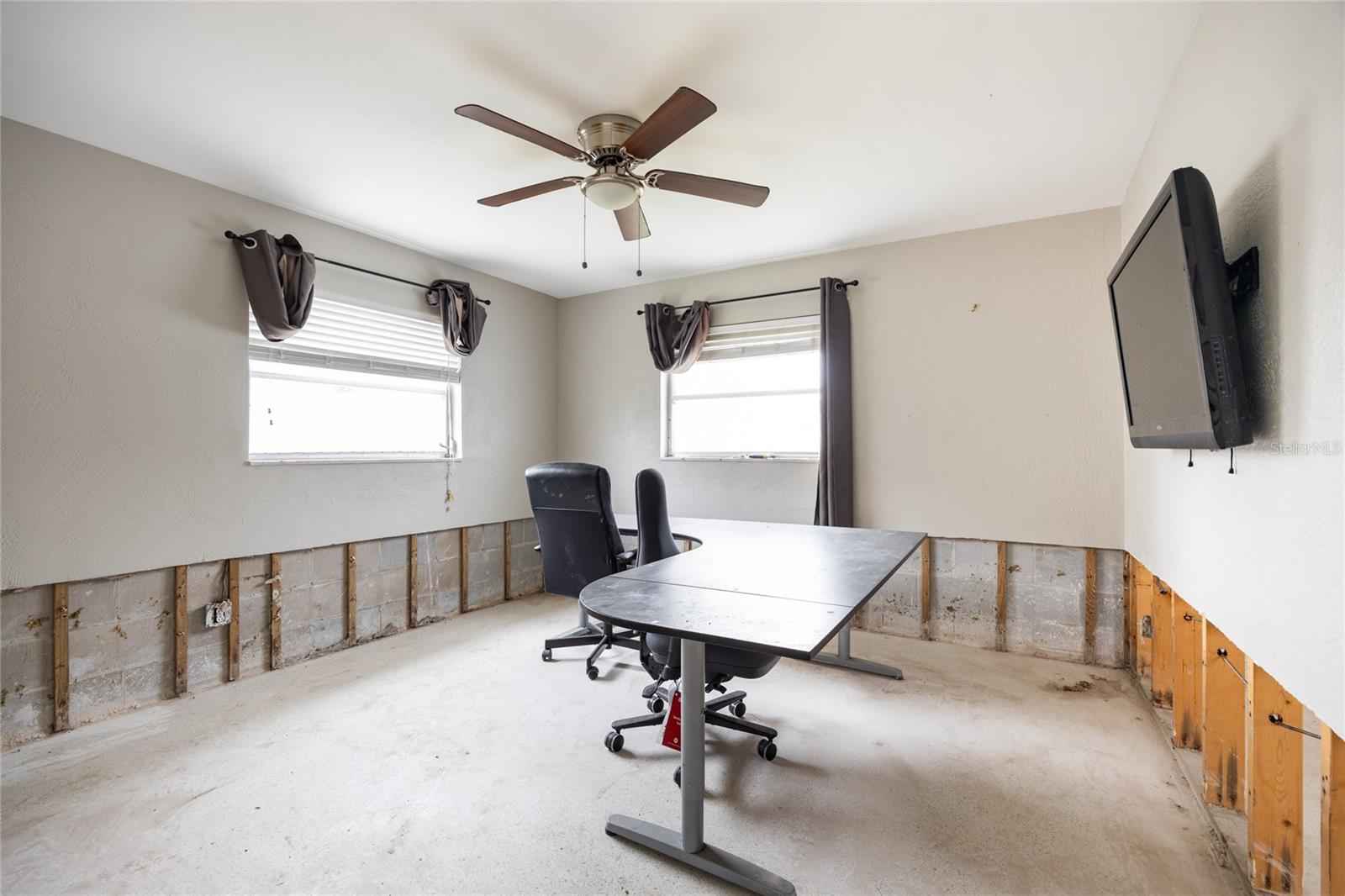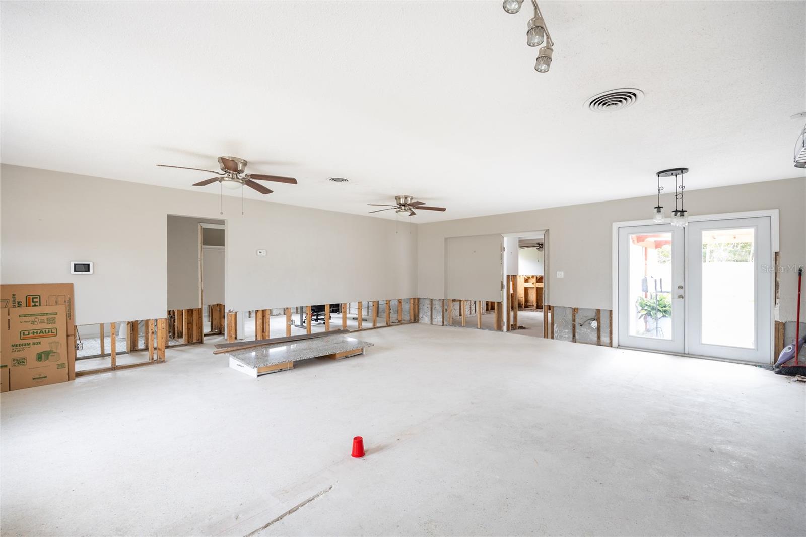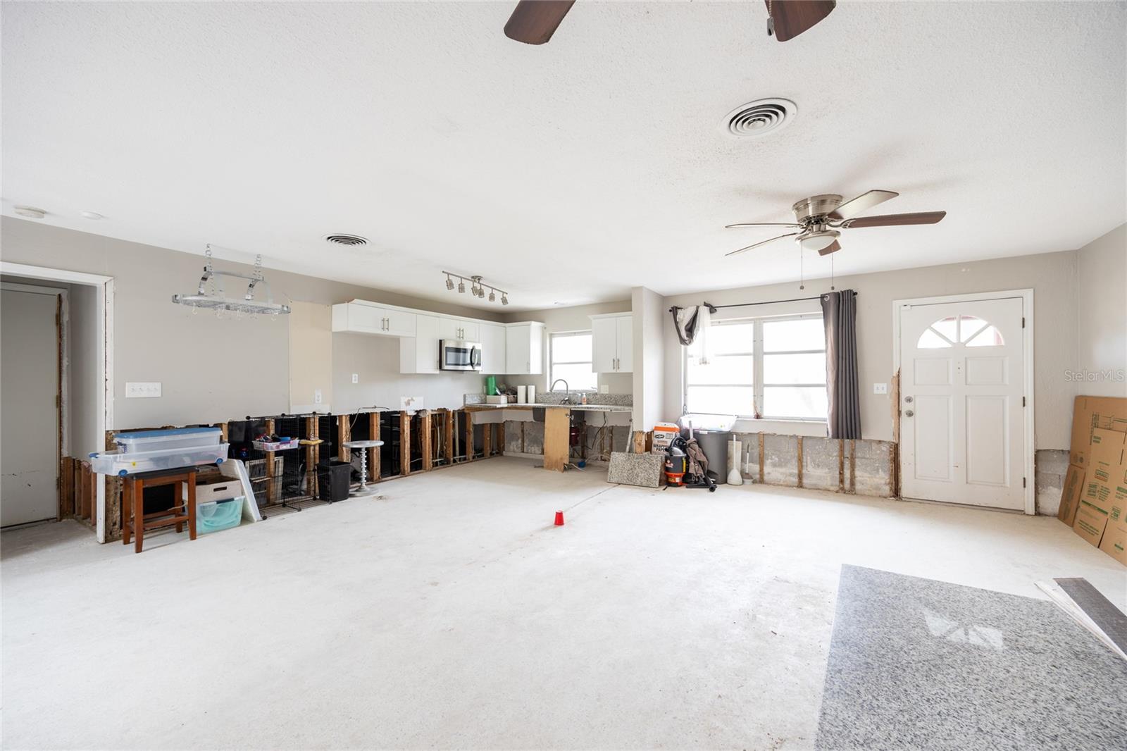 RARE opportunity for the savvy buyer to own property that sits on .2 acres in highly sought-after Pasadena Isle! A short bridge separates the homes on this private, peaceful isle from the bustle of center city South Pasadena/Gulfport This home is being sold as-is following flood damage from Hurricane Helene. It has been professionally remediated and is now ready for renovation, elevation, or rebuilding. Terrazzo floors grace the family/living/dining and kitchen areas. There are five ceiling fans, one in each room. The home has three bedrooms, two bathrooms, a one-car garage, and an open, split-floor plan. A beautiful kitchen island granite slab is ready for a new set of cabinets. Granite countertops and sinks are ready for new vanities in the primary and guest bathrooms. With a new roof installed in 2020 and new ductwork in 2023, this block construction home is bursting with potential. A spacious, fenced-in backyard offers plenty of room for a pool. Just minutes from the beach, waterfront dining, grocery stores, coffee shops, libraries, marinas, golf courses, and more, this property offers unique potential for the discriminating buyer. Don’t delay, make your appointment today!