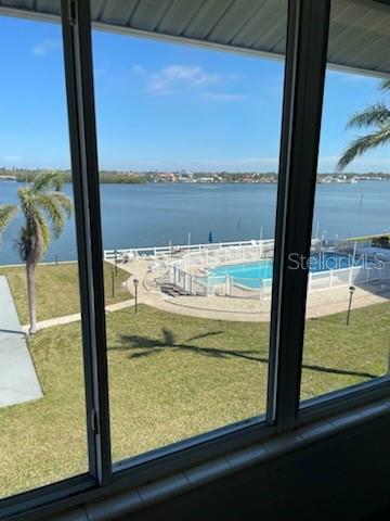 SUPER WATER VIEW FROM FLORIDA ROOM. GOOD SIZE OPEN FLOOR PLAN. LARGE BATHROOM WITH WALK IN SHOWER FURNITURE IS OPTIONAL. COMMUNITY POOL, SHUFFLEBOARD AND FITNESS CENTER AND MUCH MORE. MINUTES FROM ST PETE BEACH STORAGE CLOSET IN FLORIDA ROOM. NEWER WINDOWS.