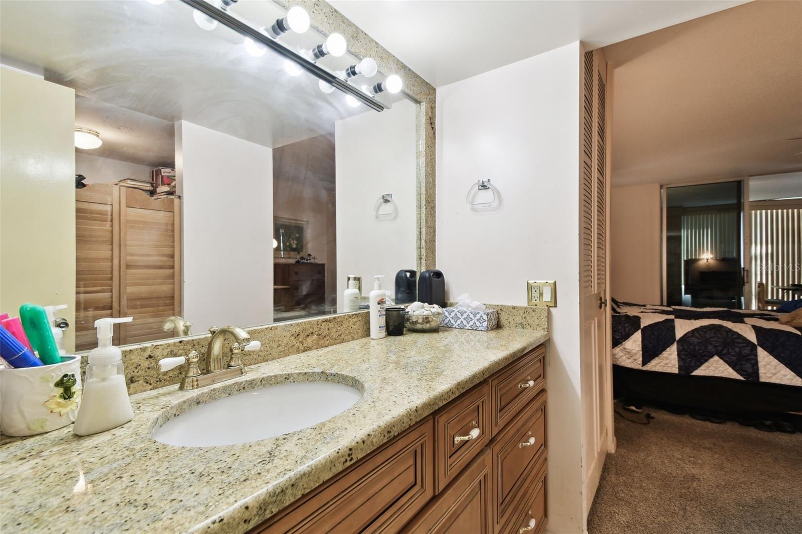 Discover the charm of coastal living with this inviting one-bedroom, one-and-a-half-bath condo nestled in the Bay Island community, a premier 55+ waterfront enclave cherished for its vibrant lifestyle and extensive amenities. This unit offers a beautiful foundation for customization and updates to enhance its inherent appeal. It features a spacious living room with stunning flooring and elegant plantation shutters, creating a bright and welcoming atmosphere. The kitchen is equipped with granite countertops, ample workspace, and sleek stainless steel appliances, ideal for both casual dining and entertaining guests. In addition to its appealing features, the primary master suite is spacious and boasts an en-suite bathroom complete with a walk-in closet, providing both comfort and convenience in your private retreat. Adjacent to the living area, a versatile sunroom expands your living options, perfect as a home office, fitness room, or additional guest space with the addition of a pull-out sofa or Murphy bed. A convenient half bath located off the main entry adds functionality to the layout. Residing in the Ambassador building, this condo offers both comfort and convenience. Enjoy the safety of a guarded gate and gated lobby, along with two elevators, climate-controlled, covered walkways, and floor-specific garbage collection. A private storage locker and a well-maintained community laundry room enhance everyday living. As part of the Bay Island community, indulge in exceptional amenities including multiple pools and spas, outdoor grills, waterfront tiki huts, tennis and shuffleboard courts, and a well-stocked library. The clubhouse features two exercise rooms with saunas, and an expansive banquet space with a bar, dance floor, and stage—perfect for social gatherings. Enjoy leisurely strolls along the scenic 1.5-mile waterfront boardwalk, where you can observe dolphins and manatees in their natural habitat. The community marina also provides opportunities for fishing or securing a boat slip for nautical adventures. Situated just minutes from Corey Avenue and the stunning St. Pete Beach, explore boutique shopping, family-owned restaurants, or take the Sun Runner to vibrant downtown St. Pete. This home offers an ideal balance of relaxation and activity, making it a perfect setting for your next chapter. This condo is not just a place to live but a canvas ready for personalization, set in one of St. Pete Beach’s most beloved communities. Schedule your showing today to start envisioning your new lifestyle at Bay Island. Please note: Bay Island is a 55+ community, requiring at least one resident to be over the age of 55 and no residents under the age of 15.
