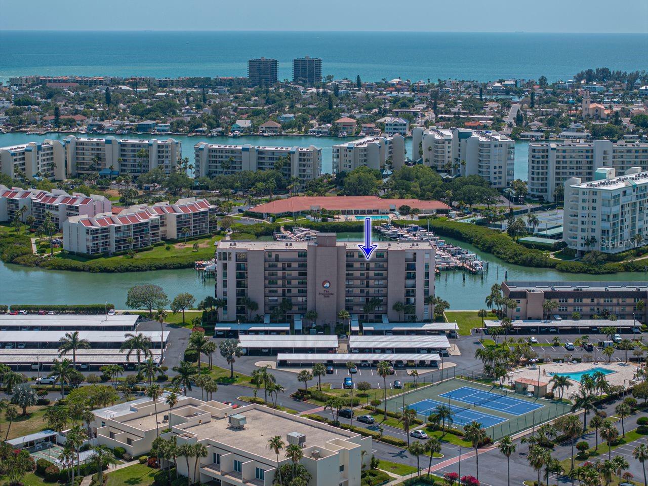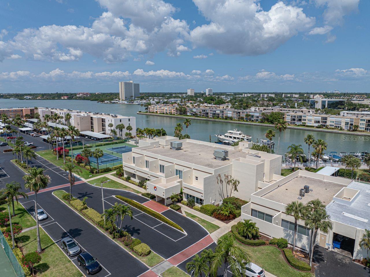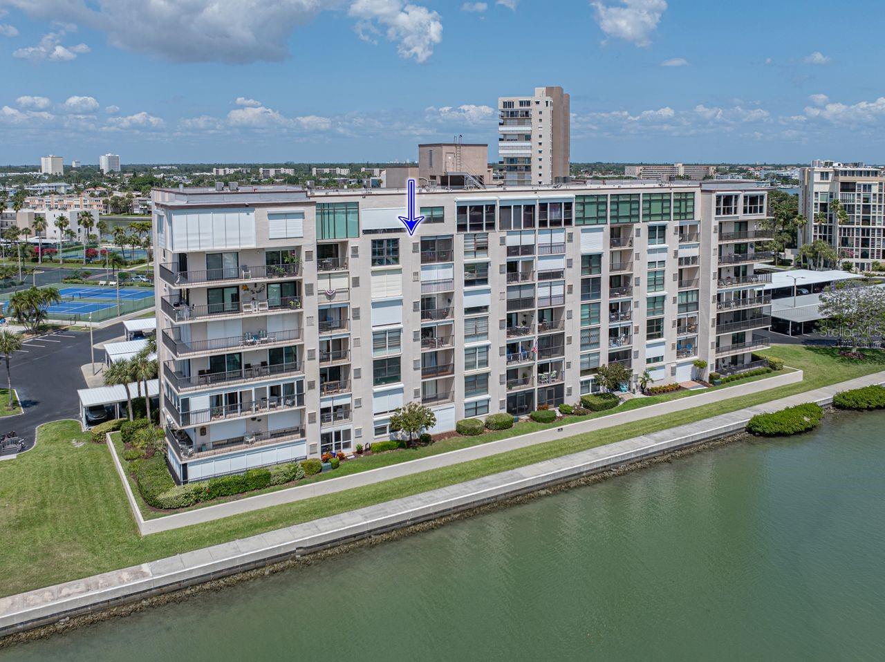 Enjoy living in one of the most beautiful cities in Florida. Bay Island is a great community for having the Florida lifestyle! This 7th floor condo is in the Presidential Building - which wasn't damaged in the hurricanes! Open floor plan with balcony that overlooks the intracoastal waterway and Marina next door! Foyer, Kitchen and Bath have beautiful tile floors. The living room, dining and bedroom have luxury vinyl floors. The kitchen is spacious with upscale appliances and solid surface counters and room to eat in! The Bedroom is oversized with a king size bed and two large closets with custom designed shutters on the doors and windows.There is a stacked washer and dryer in the unit and a tankless hot water heater. The balcony is fully screened and has hurricane shutters. Bay Island has wonderful amenities with six swimming pools, jacuzzis at two of them, his and her fully stocked gyms, tennis courts, pickle ball courts, shuffle board courts, darts, pool tables, card room, management office on site. The community is gated with a 24 hr guard on site. There is a Marina with boat slips available for rent on a first come basis for an additional fee. The HOA fee covers wi-fi, basic cable, water, sewer, landscaping, maintenance, swimming pool upkeep and insurance. St. Pete Beach is nearby and downtown St. Pete has all of the night life and restaurants. Tampa International Airport is a 30 minute drive. Agent is owner.