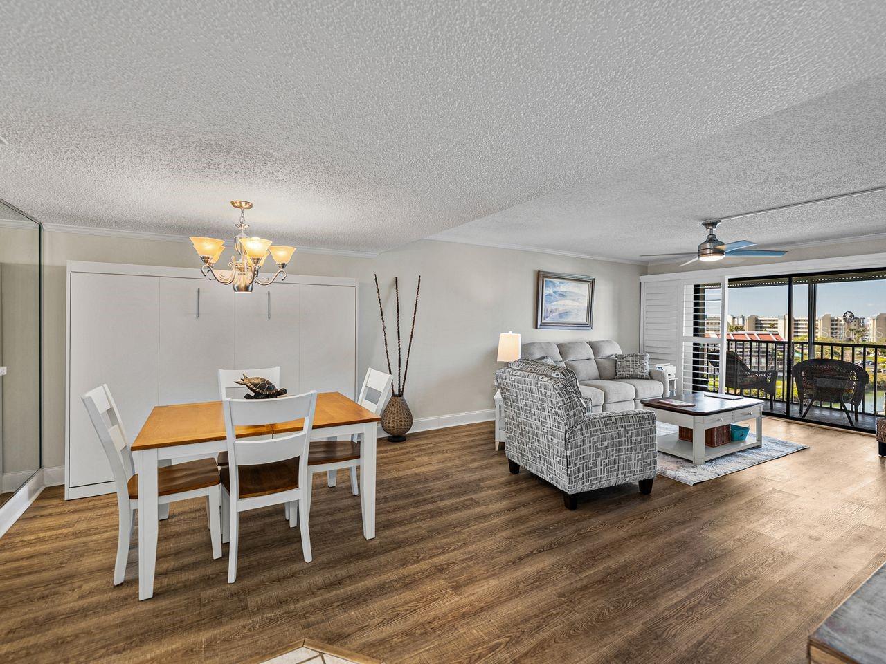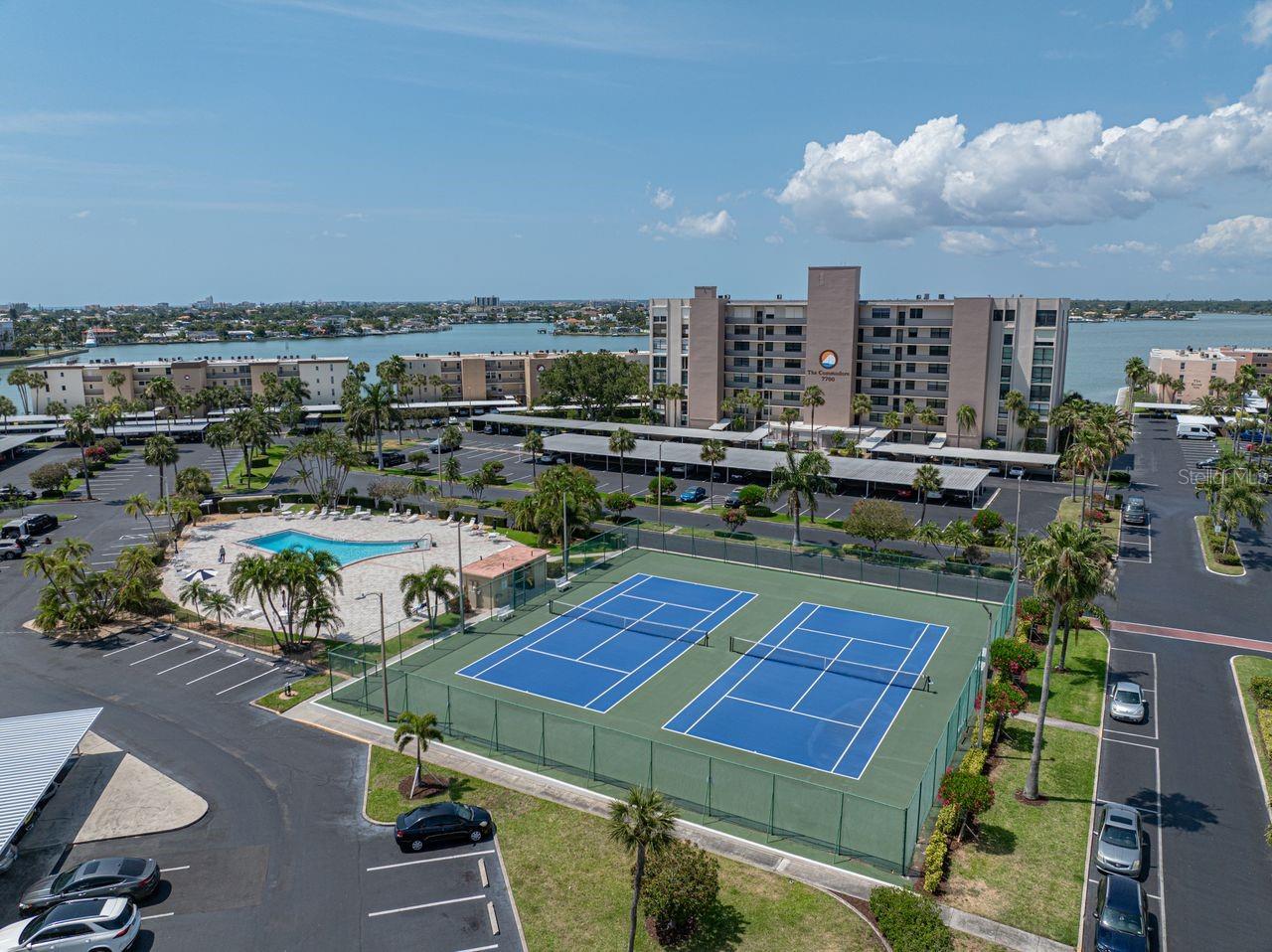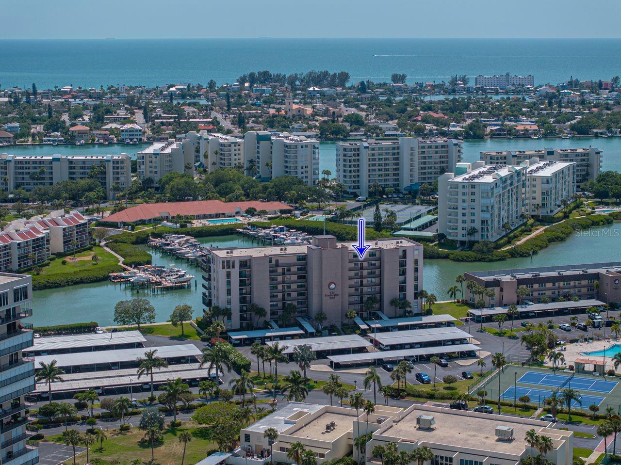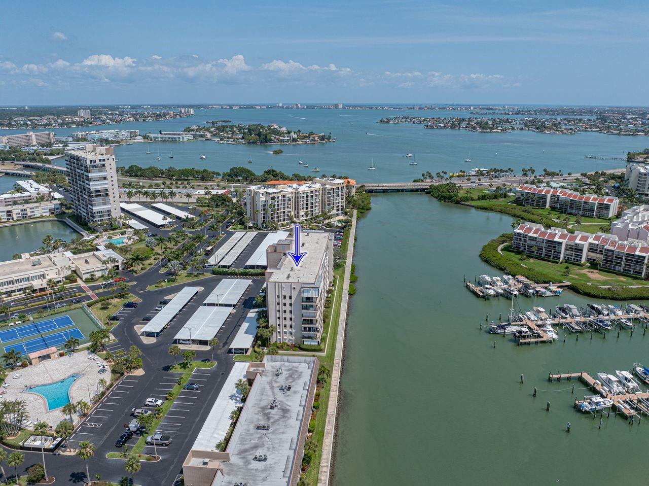 Enjoy living in one of the most beautiful cities in Florida. Bay Island is a great community for having the Florida lifestyle! This 7th floor condo is in the Presidential Building - which wasn't damaged in the hurricanes! Open floor plan with balcony that overlooks the intracoastal waterway and Marina next door! Foyer, Kitchen and Bath have beautiful tile floors. The living room, dining and bedroom have luxury vinyl floors. The kitchen is spacious with upscale appliances and solid surface counters and room to eat in! The Bedroom is oversized with a king size bed and two large closets with custom designed shutters on the doors and windows.There is a stacked washer and dryer in the unit and a tankless hot water heater. The balcony is fully screened and has hurricane shutters. Bay Island has wonderful amenities with six swimming pools, jacuzzis at two of them, his and her fully stocked gyms, tennis courts, pickle ball courts, shuffle board courts, darts, pool tables, card room, management office on site. The community is gated with a 24 hr guard on site. There is a Marina with boat slips available for rent on a first come basis for an additional fee. The HOA fee covers wi-fi, basic cable, water, sewer, landscaping, maintenance, swimming pool upkeep and insurance. St. Pete Beach is nearby and downtown St. Pete has all of the night life and restaurants. Tampa International Airport is a 30 minute drive. Agent is owner.