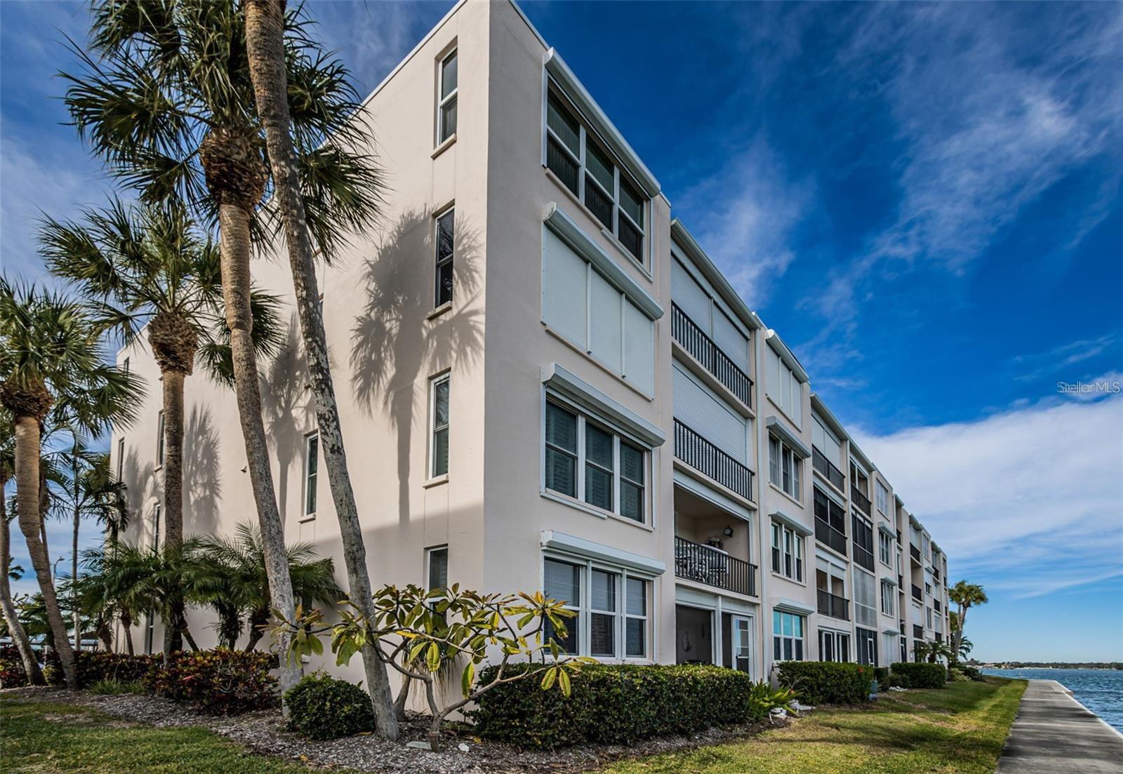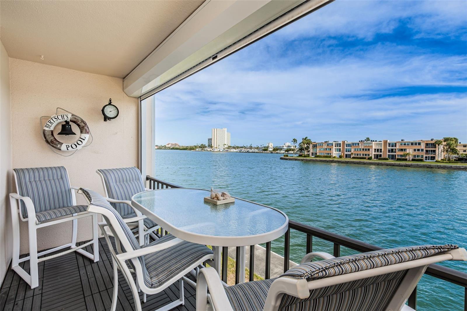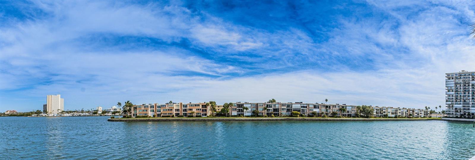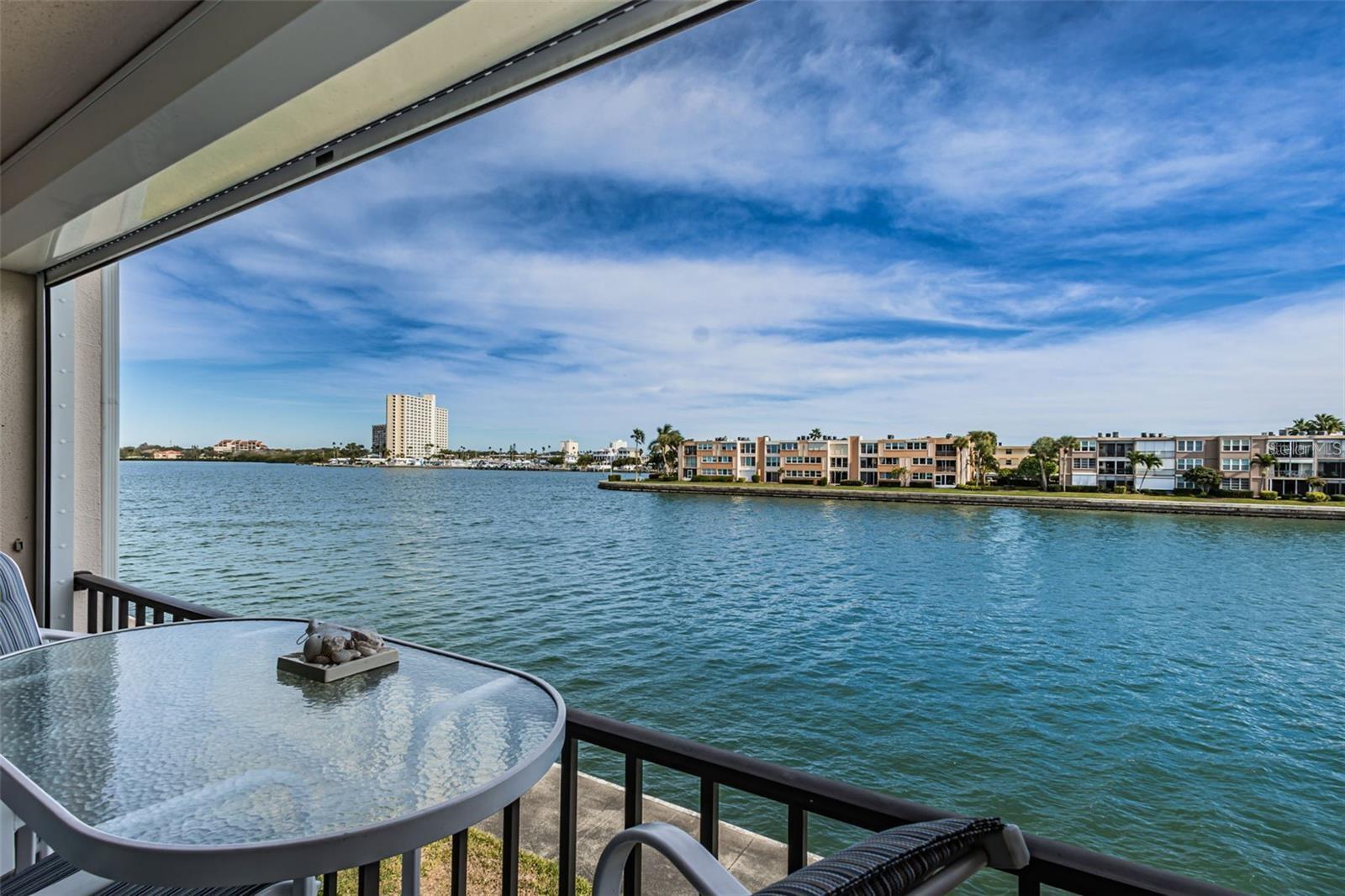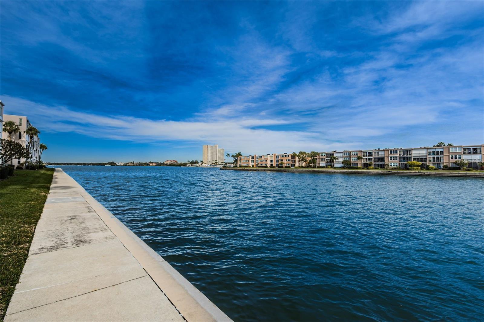 Beautifully renovated Water View condo in the lovely gated community of Bay Island - on the water in South Pasadena. Enjoy your waterfront balcony views and watch the dolphins and manatees swim while you have morning coffee or early evening cocktails. The master bedroom features an en suite master bath with a large walk-in closet. This unit includes a Chef's Kitchen with a convection oven, induction stove top, wine fridge, stainless steel appliances, Dry bar, Granite countertops, and plenty of Hardwood Cabinets with a closet pantry. Porcelain tile floors throughout. An On-Demand Hot Water System. Full-size front loader washer and dryer. Hurricane-rated windows and sliding glass doors. Hurricane shutters. Crown Molding. Bluetooth-enabled ceiling fan in the living room. New Electrical Panel. High-end Plantation Window Treatments throughout and a Storage closet outside the front door. The bathrooms are beautifully renovated. The large guest bedroom runs adjacent to the gorgeous full bathroom for your guests. This over-55 community is pet friendly and has 6 Heated pools, 2 spas, grilling areas with Tikki tables, car wash stations, pickleball, fishing, boat docks, and a recreation center. The clubhouse features cards, crafts, and reading room, billiards, table tennis, men & ladies fitness gym & sauna. There is also a sidewalk that runs 1.5 miles along the seawall through the entire community. Minutes from the beaches and a short distance to downtown St. Pete. Only a bike ride to St Pete Beach.