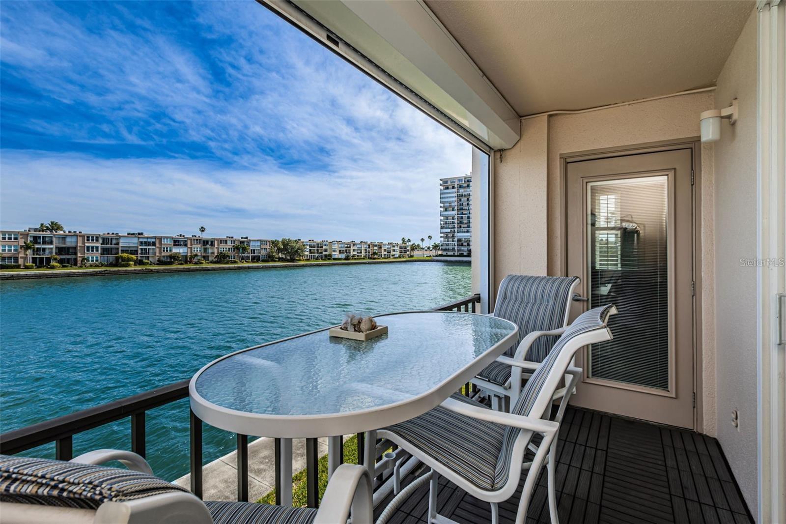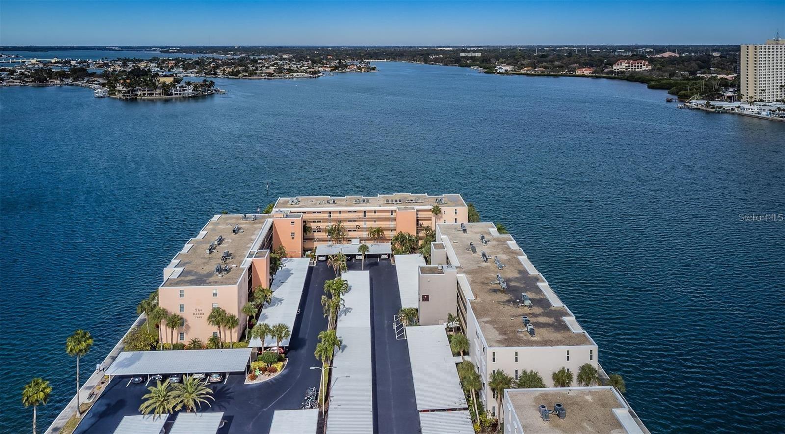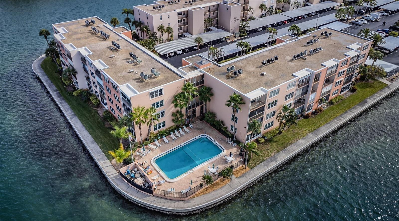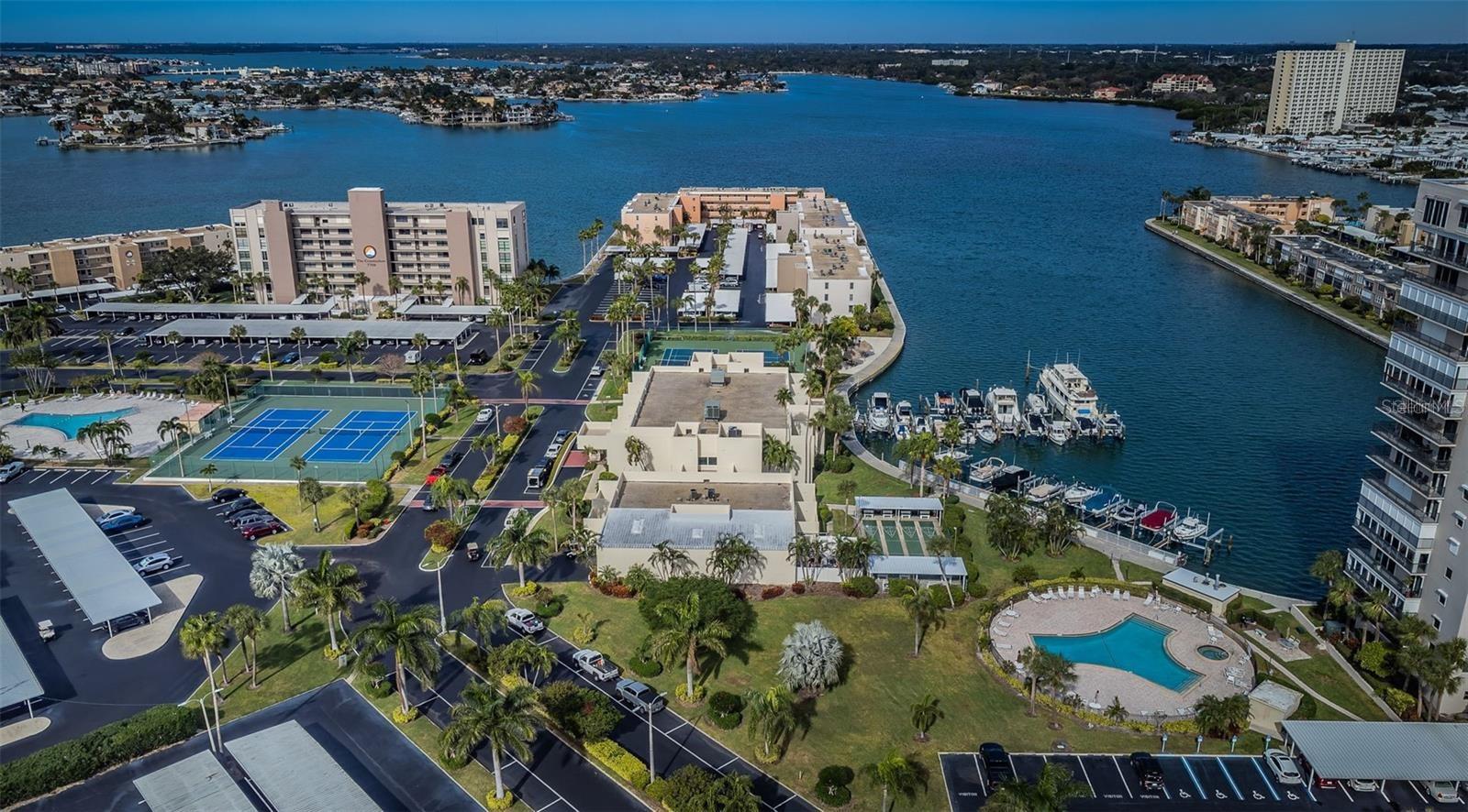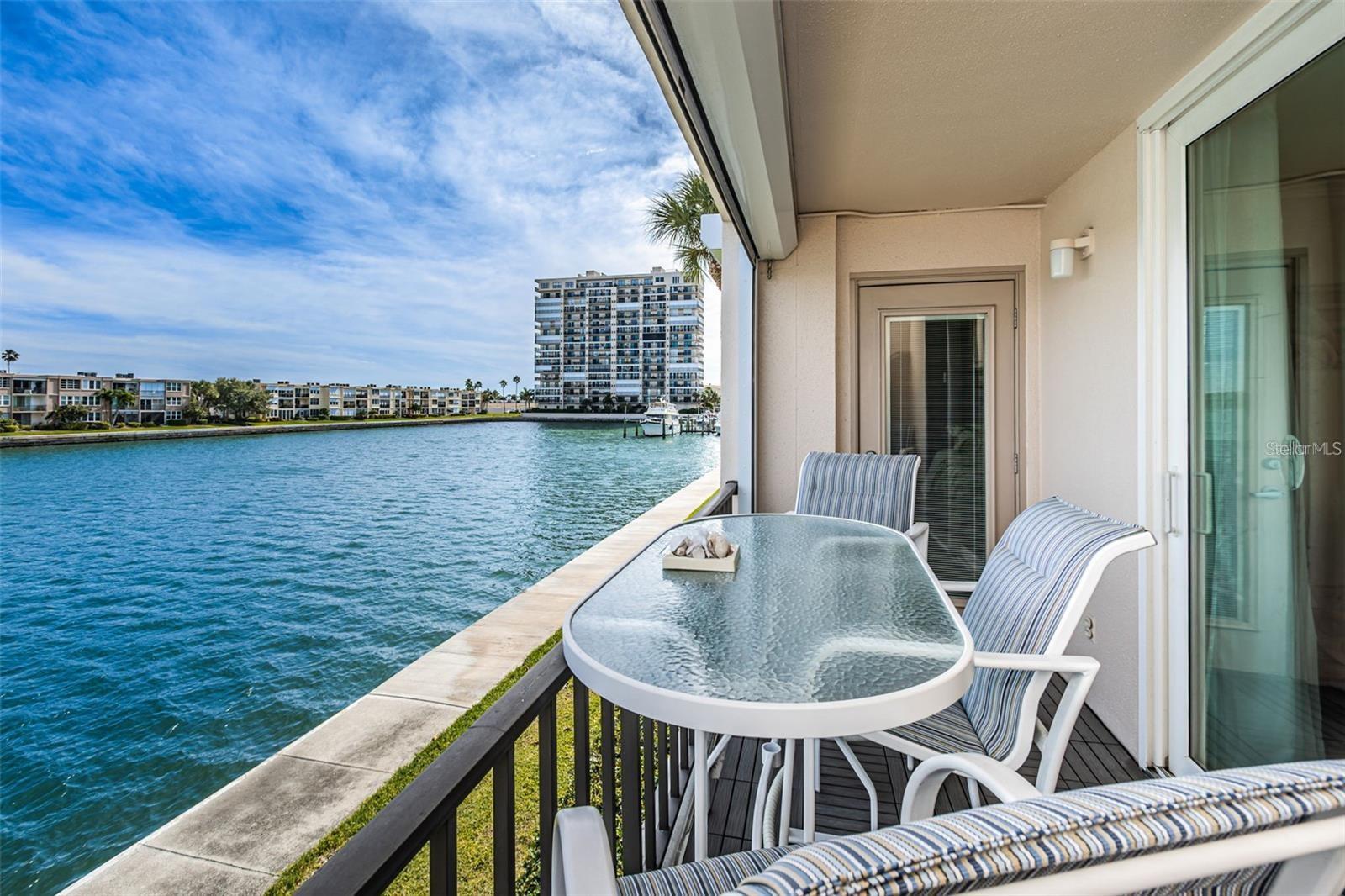 Beautifully renovated Water View condo in the lovely gated community of Bay Island - on the water in South Pasadena. Enjoy your waterfront balcony views and watch the dolphins and manatees swim while you have morning coffee or early evening cocktails. The master bedroom features an en suite master bath with a large walk-in closet. This unit includes a Chef's Kitchen with a convection oven, induction stove top, wine fridge, stainless steel appliances, Dry bar, Granite countertops, and plenty of Hardwood Cabinets with a closet pantry. Porcelain tile floors throughout. An On-Demand Hot Water System. Full-size front loader washer and dryer. Hurricane-rated windows and sliding glass doors. Hurricane shutters. Crown Molding. Bluetooth-enabled ceiling fan in the living room. New Electrical Panel. High-end Plantation Window Treatments throughout and a Storage closet outside the front door. The bathrooms are beautifully renovated. The large guest bedroom runs adjacent to the gorgeous full bathroom for your guests. This over-55 community is pet friendly and has 6 Heated pools, 2 spas, grilling areas with Tikki tables, car wash stations, pickleball, fishing, boat docks, and a recreation center. The clubhouse features cards, crafts, and reading room, billiards, table tennis, men & ladies fitness gym & sauna. There is also a sidewalk that runs 1.5 miles along the seawall through the entire community. Minutes from the beaches and a short distance to downtown St. Pete. Only a bike ride to St Pete Beach.