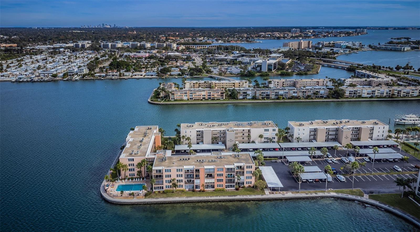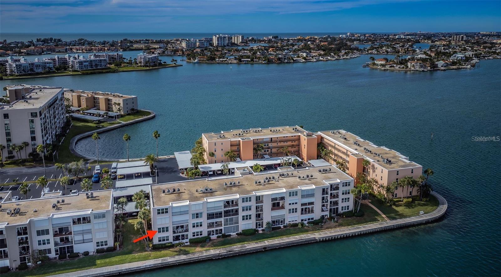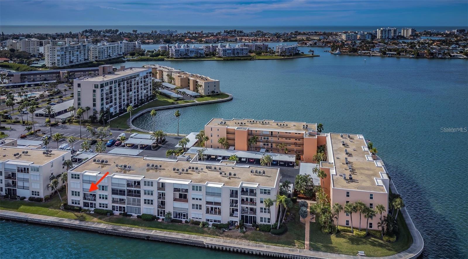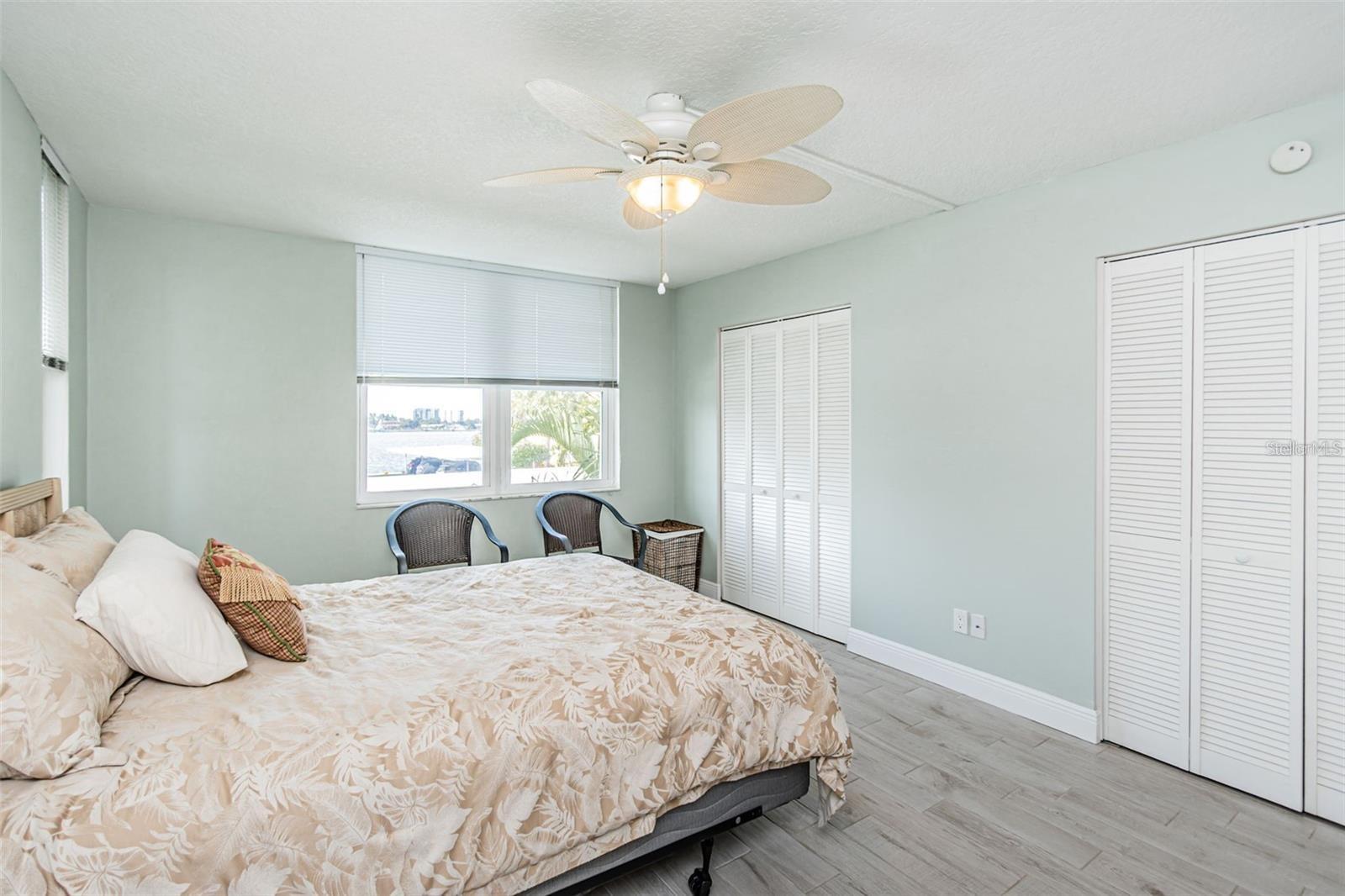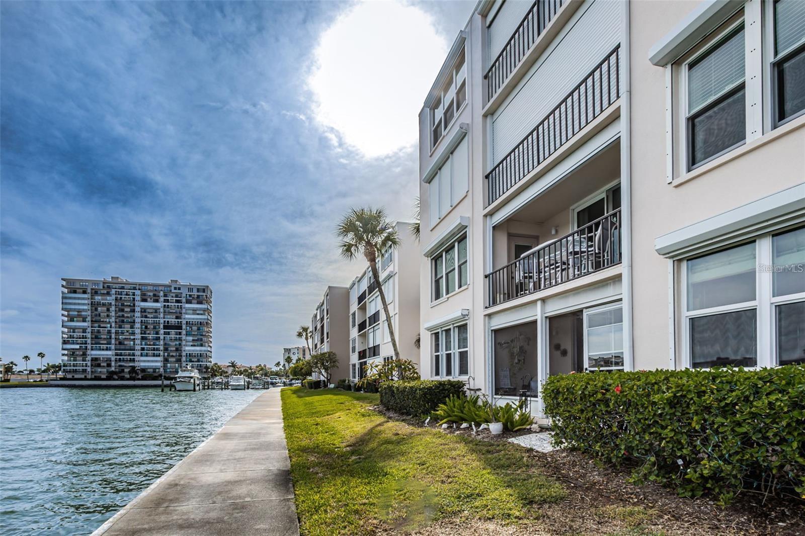 Beautifully renovated Water View condo in the lovely gated community of Bay Island - on the water in South Pasadena. Enjoy your waterfront balcony views and watch the dolphins and manatees swim while you have morning coffee or early evening cocktails. The master bedroom features an en suite master bath with a large walk-in closet. This unit includes a Chef's Kitchen with a convection oven, induction stove top, wine fridge, stainless steel appliances, Dry bar, Granite countertops, and plenty of Hardwood Cabinets with a closet pantry. Porcelain tile floors throughout. An On-Demand Hot Water System. Full-size front loader washer and dryer. Hurricane-rated windows and sliding glass doors. Hurricane shutters. Crown Molding. Bluetooth-enabled ceiling fan in the living room. New Electrical Panel. High-end Plantation Window Treatments throughout and a Storage closet outside the front door. The bathrooms are beautifully renovated. The large guest bedroom runs adjacent to the gorgeous full bathroom for your guests. This over-55 community is pet friendly and has 6 Heated pools, 2 spas, grilling areas with Tikki tables, car wash stations, pickleball, fishing, boat docks, and a recreation center. The clubhouse features cards, crafts, and reading room, billiards, table tennis, men & ladies fitness gym & sauna. There is also a sidewalk that runs 1.5 miles along the seawall through the entire community. Minutes from the beaches and a short distance to downtown St. Pete. Only a bike ride to St Pete Beach.