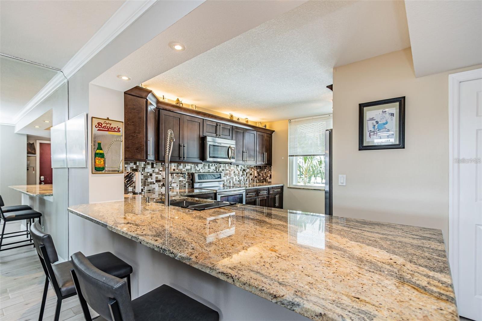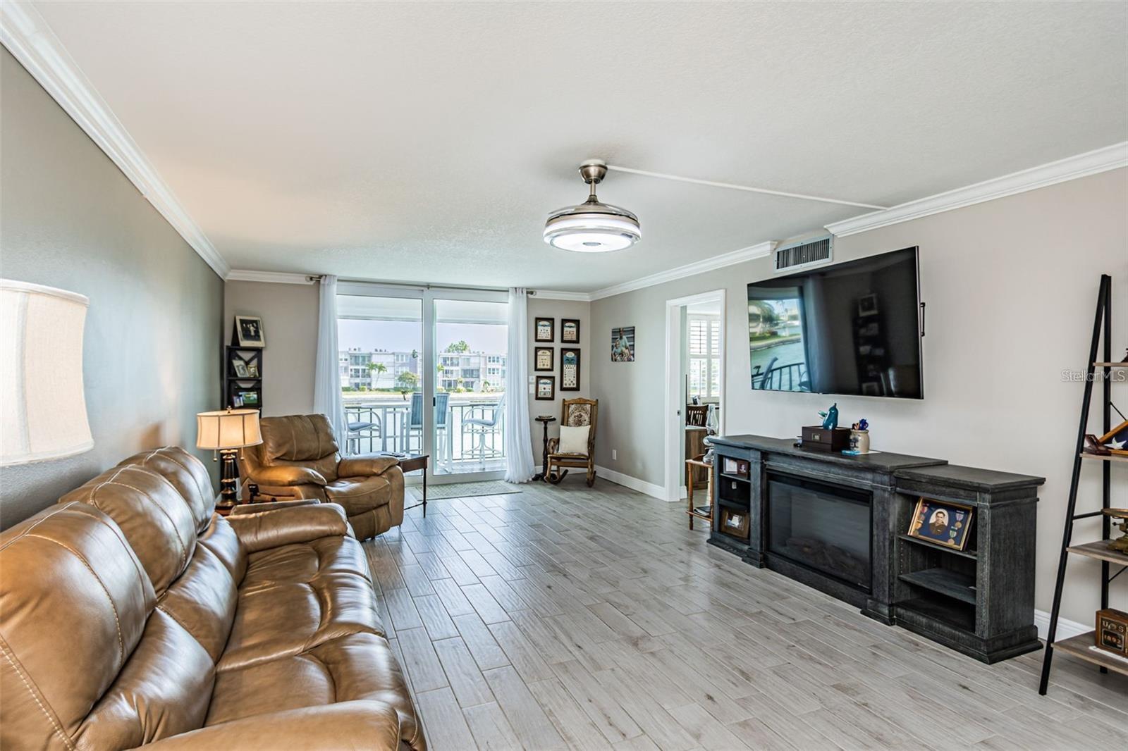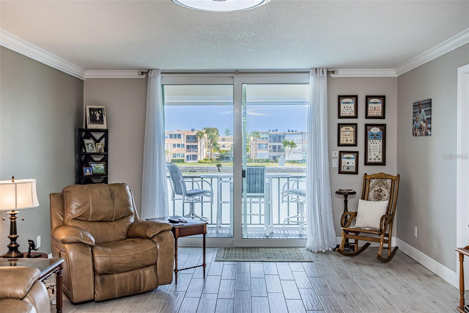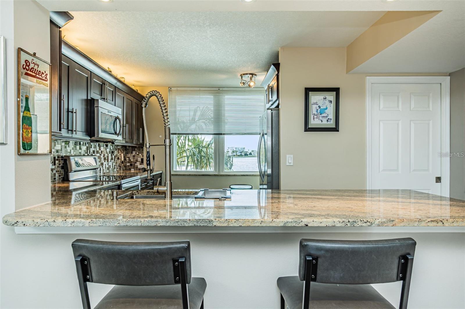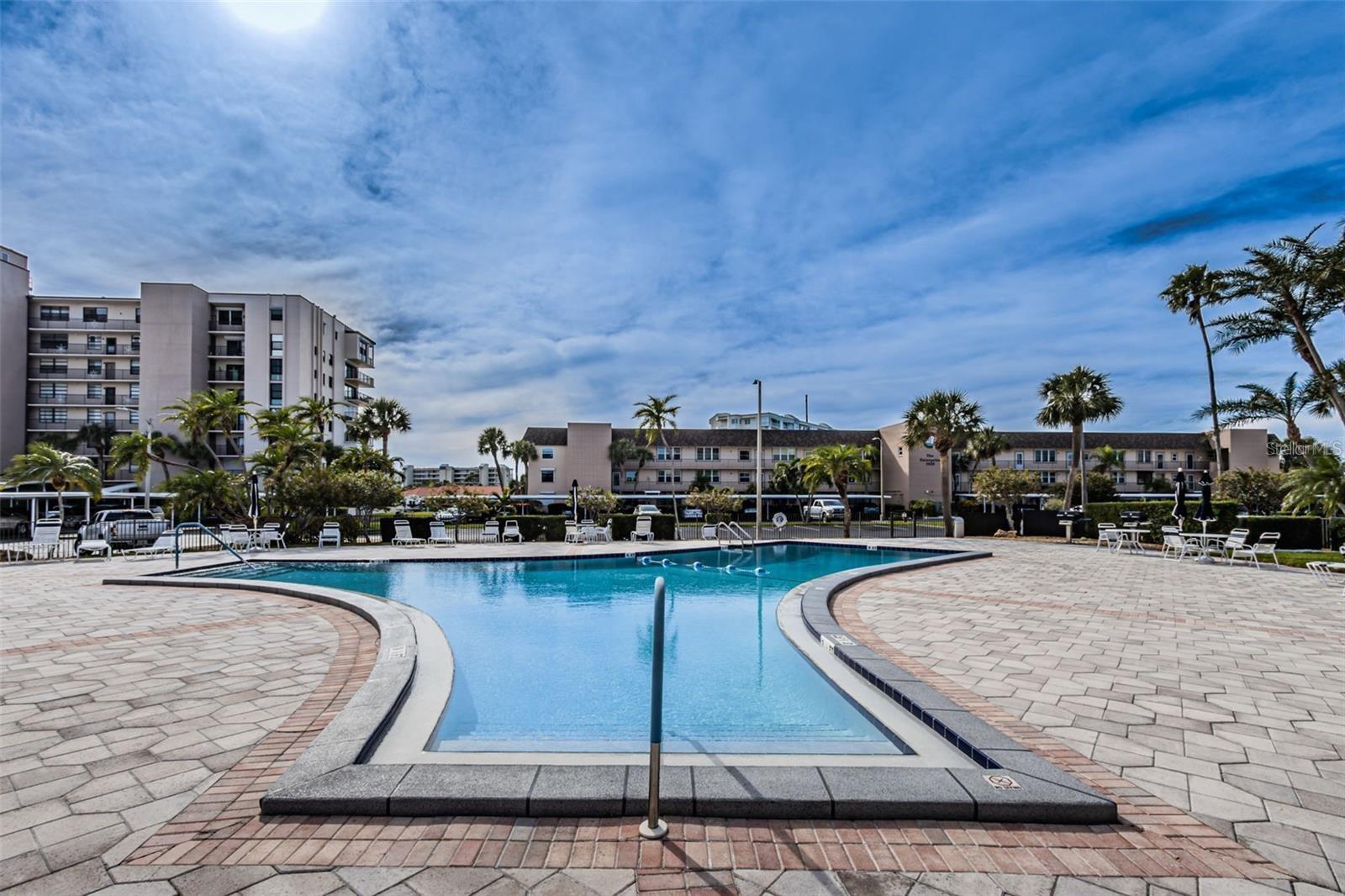 Beautifully renovated Water View condo in the lovely gated community of Bay Island - on the water in South Pasadena. Enjoy your waterfront balcony views and watch the dolphins and manatees swim while you have morning coffee or early evening cocktails. The master bedroom features an en suite master bath with a large walk-in closet. This unit includes a Chef's Kitchen with a convection oven, induction stove top, wine fridge, stainless steel appliances, Dry bar, Granite countertops, and plenty of Hardwood Cabinets with a closet pantry. Porcelain tile floors throughout. An On-Demand Hot Water System. Full-size front loader washer and dryer. Hurricane-rated windows and sliding glass doors. Hurricane shutters. Crown Molding. Bluetooth-enabled ceiling fan in the living room. New Electrical Panel. High-end Plantation Window Treatments throughout and a Storage closet outside the front door. The bathrooms are beautifully renovated. The large guest bedroom runs adjacent to the gorgeous full bathroom for your guests. This over-55 community is pet friendly and has 6 Heated pools, 2 spas, grilling areas with Tikki tables, car wash stations, pickleball, fishing, boat docks, and a recreation center. The clubhouse features cards, crafts, and reading room, billiards, table tennis, men & ladies fitness gym & sauna. There is also a sidewalk that runs 1.5 miles along the seawall through the entire community. Minutes from the beaches and a short distance to downtown St. Pete. Only a bike ride to St Pete Beach.