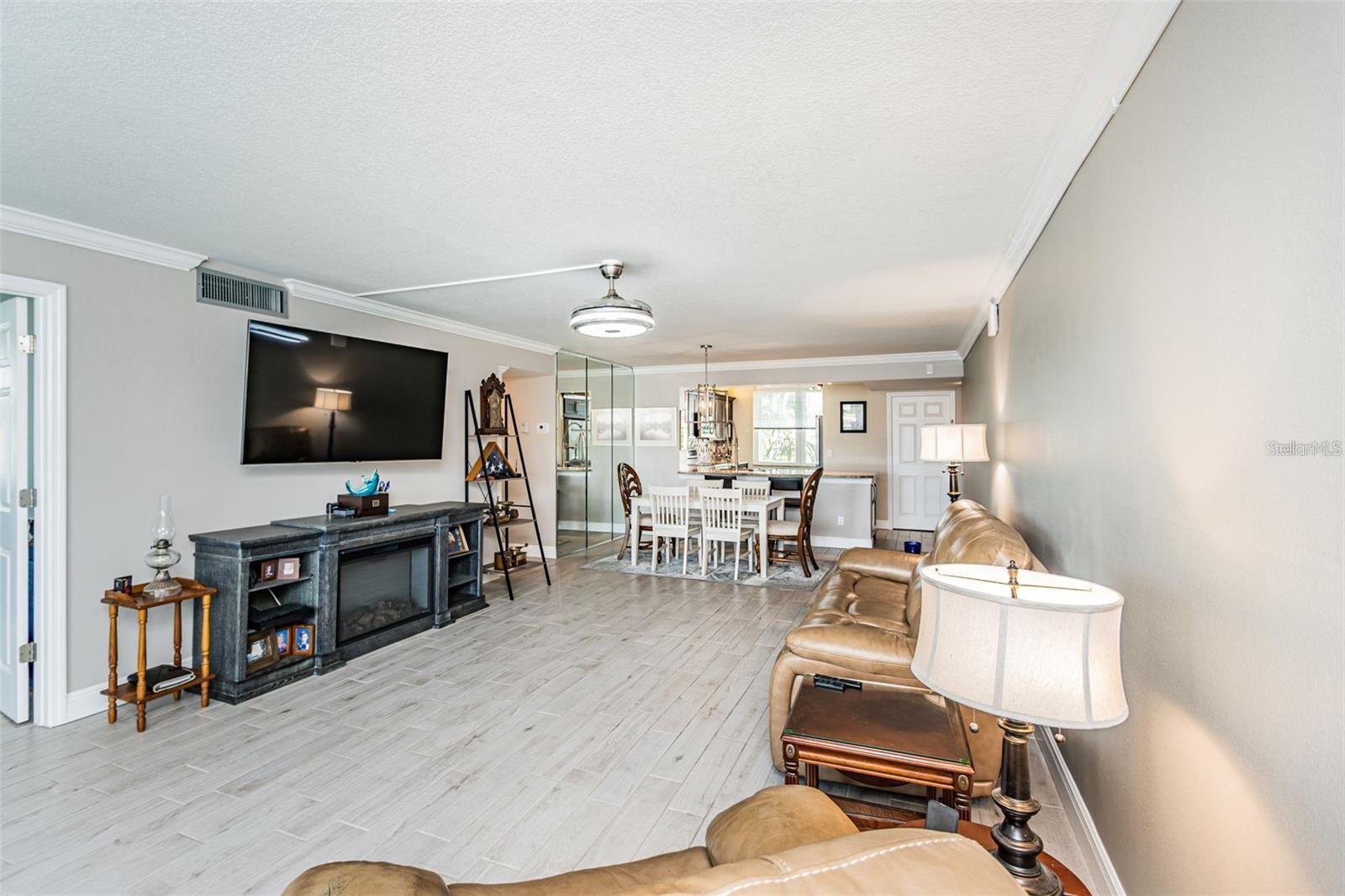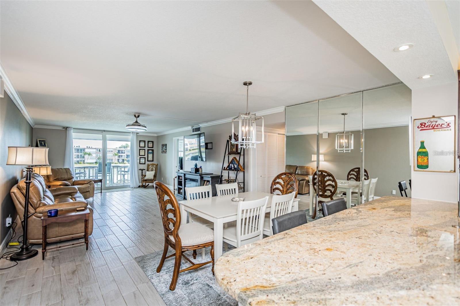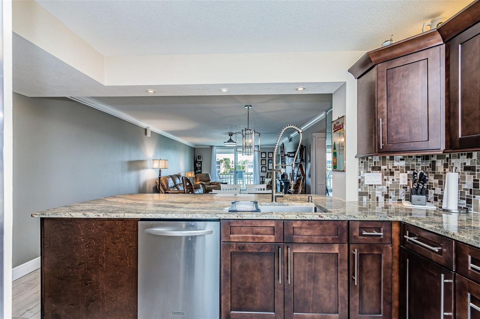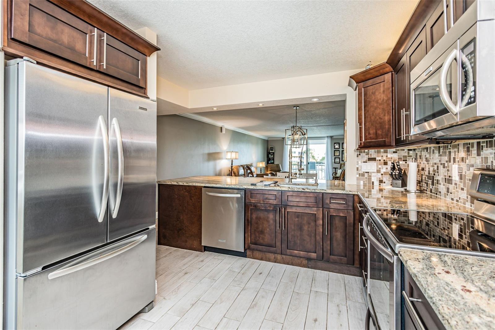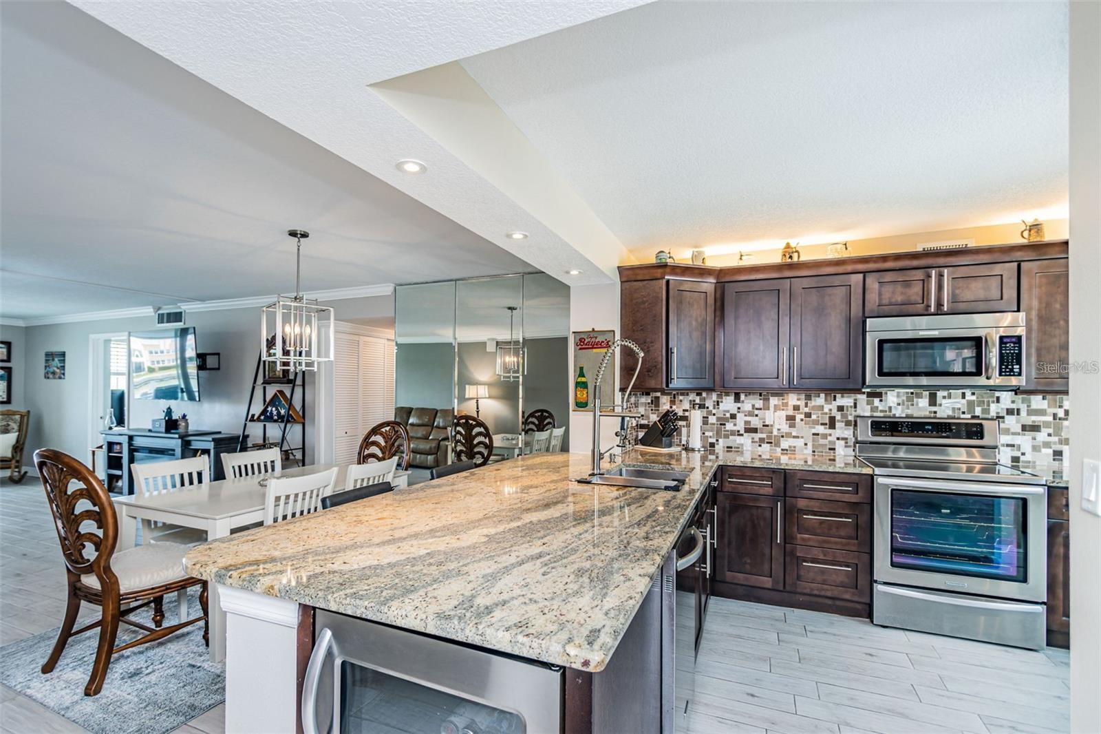 Beautifully renovated Water View condo in the lovely gated community of Bay Island - on the water in South Pasadena. Enjoy your waterfront balcony views and watch the dolphins and manatees swim while you have morning coffee or early evening cocktails. The master bedroom features an en suite master bath with a large walk-in closet. This unit includes a Chef's Kitchen with a convection oven, induction stove top, wine fridge, stainless steel appliances, Dry bar, Granite countertops, and plenty of Hardwood Cabinets with a closet pantry. Porcelain tile floors throughout. An On-Demand Hot Water System. Full-size front loader washer and dryer. Hurricane-rated windows and sliding glass doors. Hurricane shutters. Crown Molding. Bluetooth-enabled ceiling fan in the living room. New Electrical Panel. High-end Plantation Window Treatments throughout and a Storage closet outside the front door. The bathrooms are beautifully renovated. The large guest bedroom runs adjacent to the gorgeous full bathroom for your guests. This over-55 community is pet friendly and has 6 Heated pools, 2 spas, grilling areas with Tikki tables, car wash stations, pickleball, fishing, boat docks, and a recreation center. The clubhouse features cards, crafts, and reading room, billiards, table tennis, men & ladies fitness gym & sauna. There is also a sidewalk that runs 1.5 miles along the seawall through the entire community. Minutes from the beaches and a short distance to downtown St. Pete. Only a bike ride to St Pete Beach.