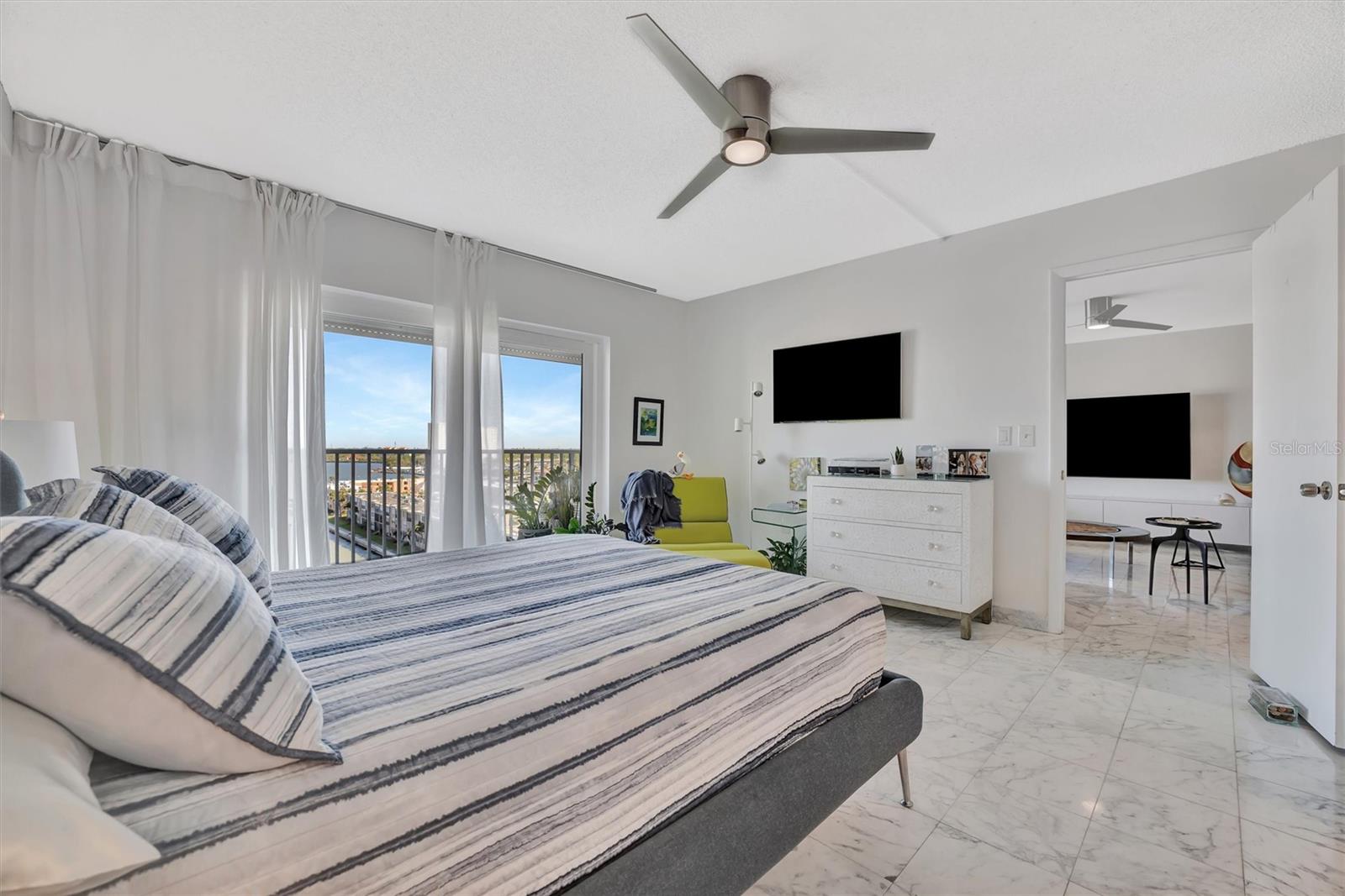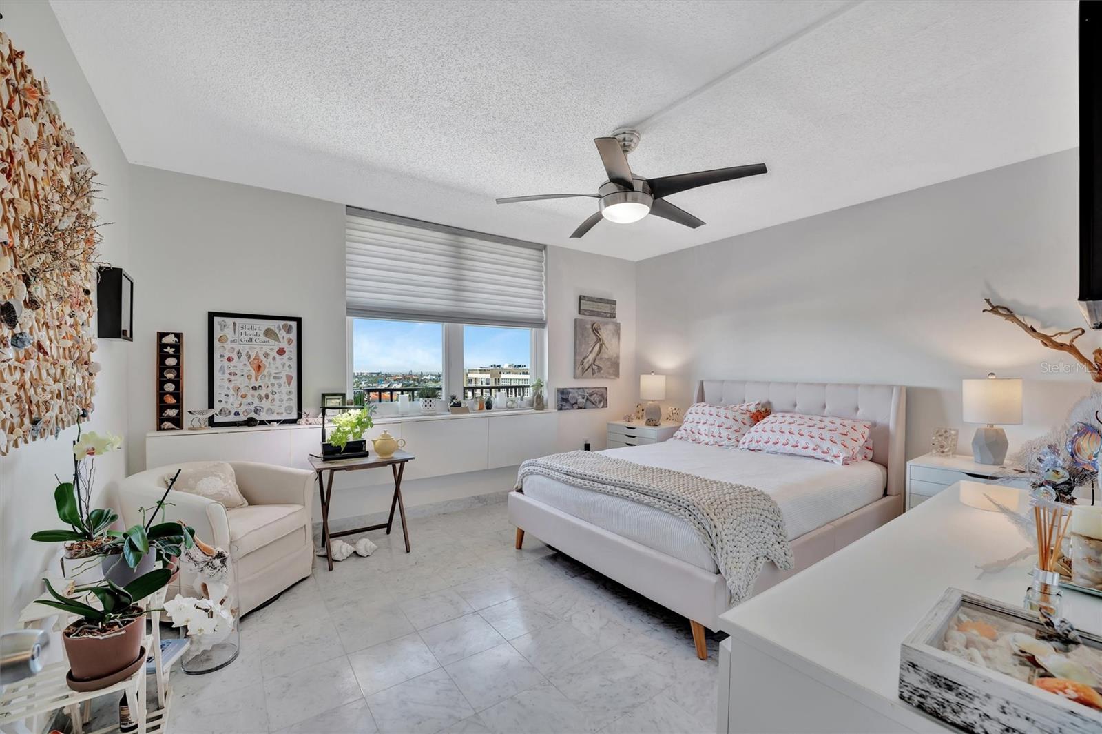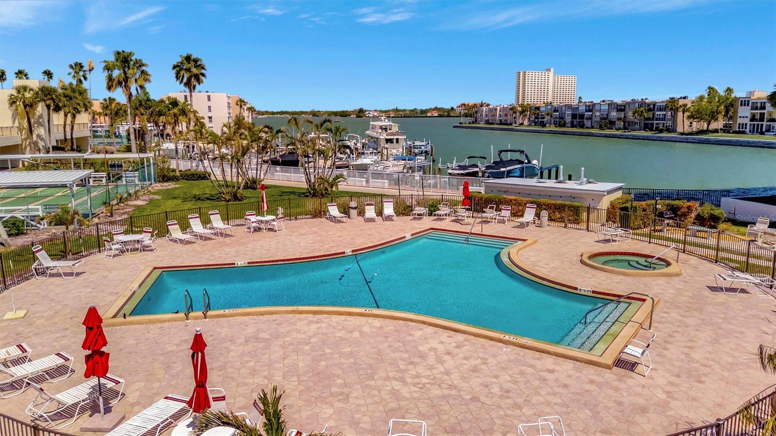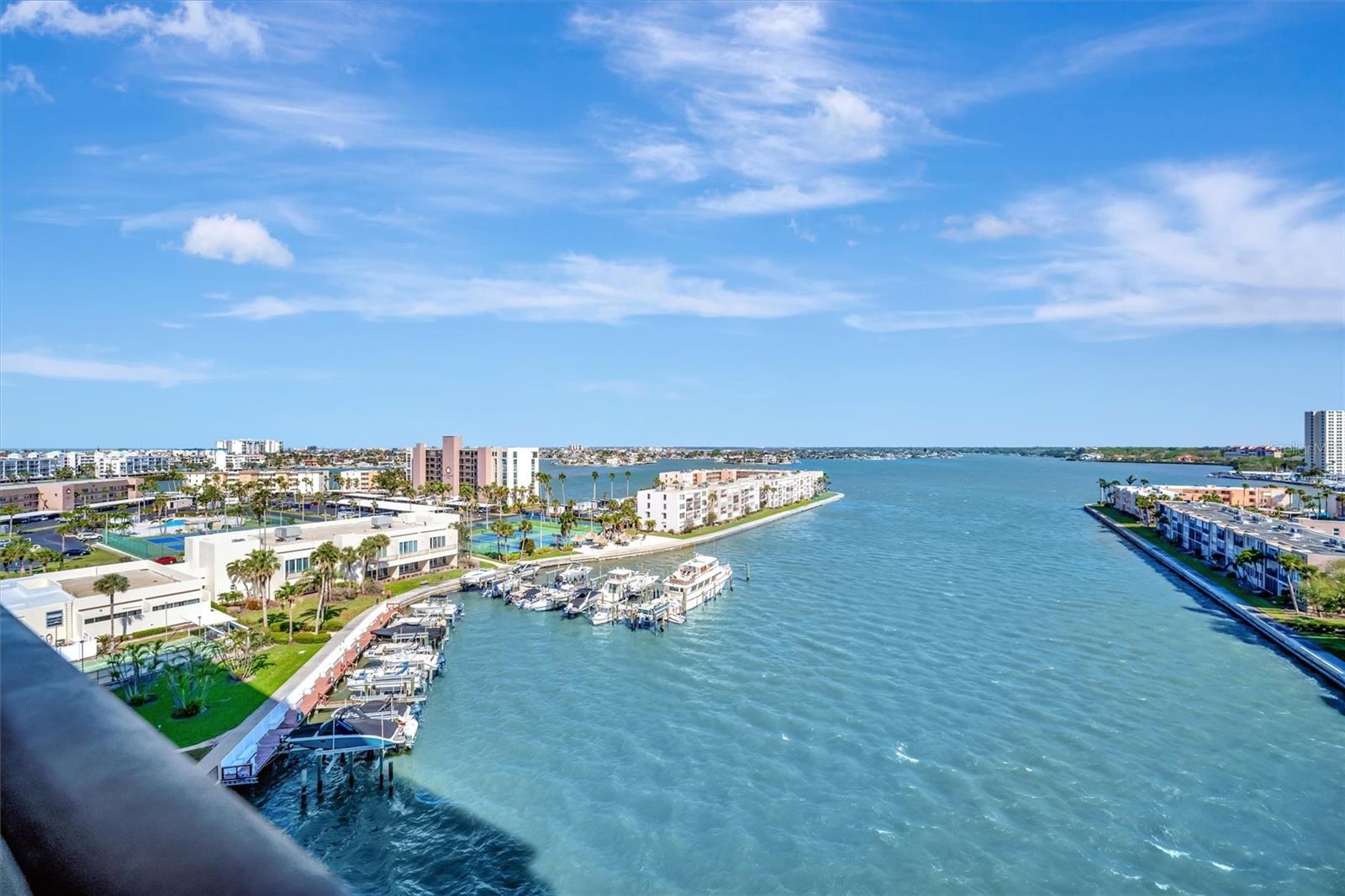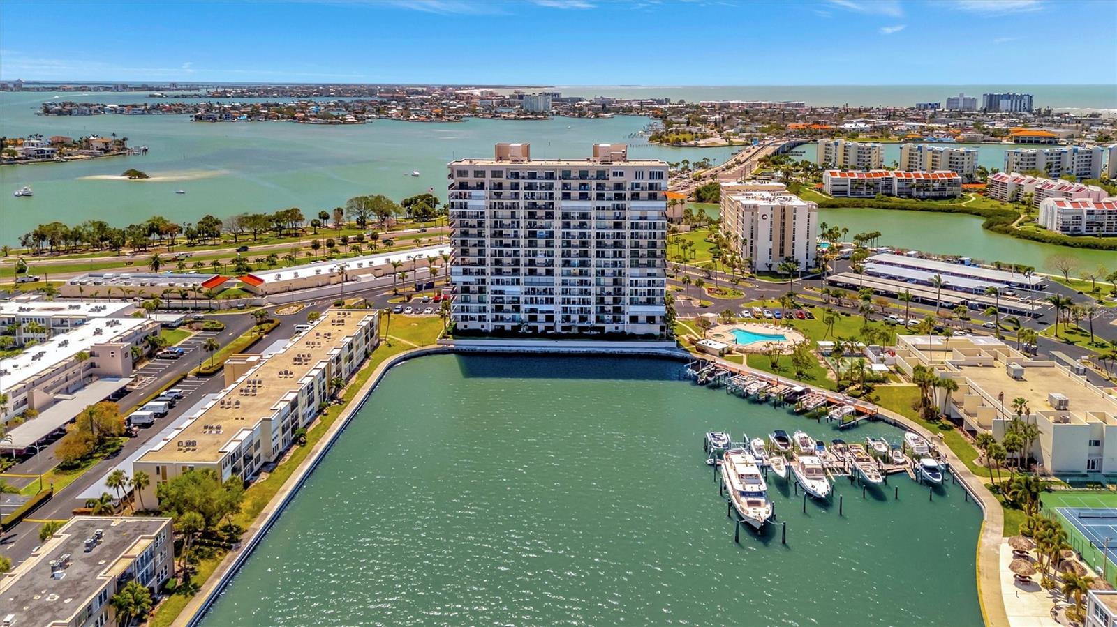 This exquisite two-bedroom, two-bath condominium, located on the ninth floor, boasts spectacular unobstructed waterfront views that can be enjoyed from every window. The contemporary unit features an open floor plan adorned with marble flooring throughout and abundant natural sunlight in every room. The entertainer’s kitchen has been tastefully remodeled, showcasing custom hardwood cabinets with interior pull-outs, granite countertops, newer appliances, a breakfast bar, and an open kitchen island. The spacious master bedroom includes a walk-in closet, equipped with a cherry hardwood closet system, and an updated master bath replete with elegant touches. Additionally, it provides access to a 26-foot covered waterfront balcony. The unit also features a guest bedroom with a walk-in closet and an in-unit stacked washer and dryer. Situated in the highly sought-after Admiral Building, a pet friendly, premier 55+ waterfront community, residents enjoy added conveniences, including storage closets on balconies, an extra hallway closet, a secure storage unit on the first floor, and a designated covered parking space (#903). Bay Island is a gated community with 24-hour security, offering resort-style amenities such as six heated pools, a jacuzzi spa, a full marina with boat slips (subject to a waitlist), tennis and pickleball courts, a waterfront walking trail, outdoor grilling stations, and a newly renovated clubhouse. The clubhouse features a billiards room, card room, gym with a sauna, and hosts a variety of social events organized by a dedicated social director. Additional amenities include his-and-hers gyms, a library with internet access, card rooms, table tennis, and a banquet room complete with a lounge, dance floor, and commercial kitchen. Small pets are welcome in this vibrant 55+ community. With the Milestone and SIRS reports completed and the seller motivated, this move-in-ready unit presents an unparalleled waterfront retreat. Don’t miss this exceptional opportunity! This prime location is merely minutes away from the beach, DTSP, Johns Pass Village, shopping, dining, Palms of Pasadena Hospital, the Tampa International Airport (as well as several private airports) and much more. This stunning condominium epitomizes luxury, convenience, and coastal charm. Schedule your private showing now.