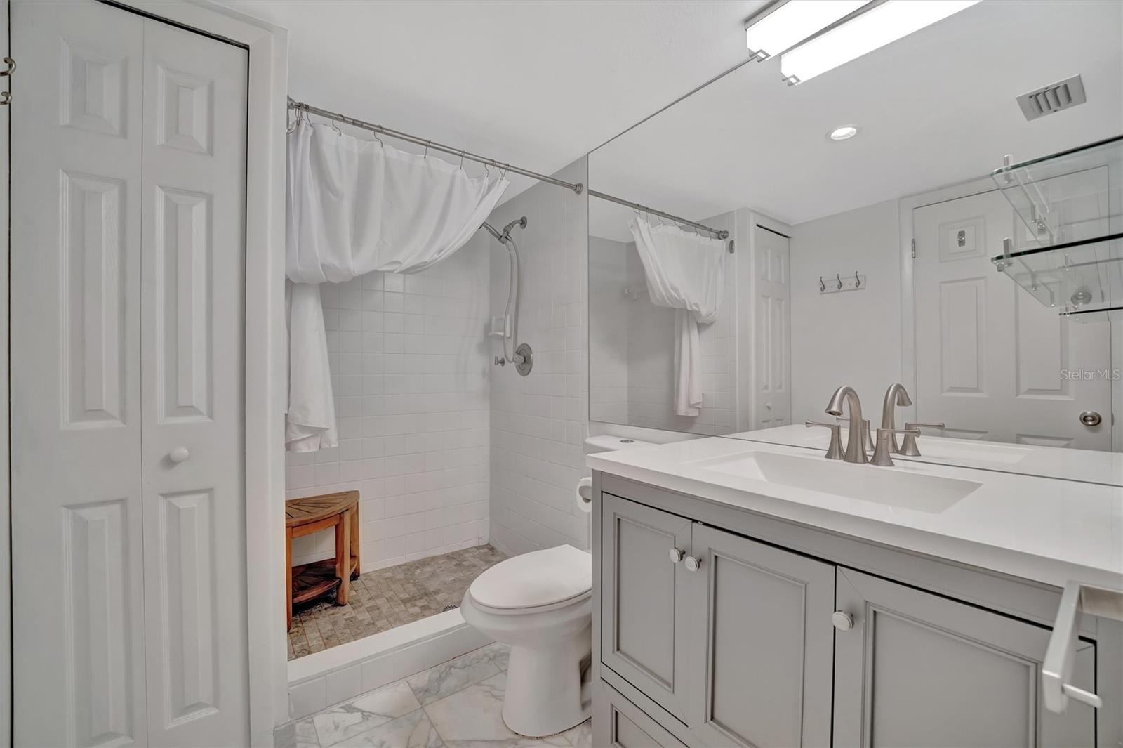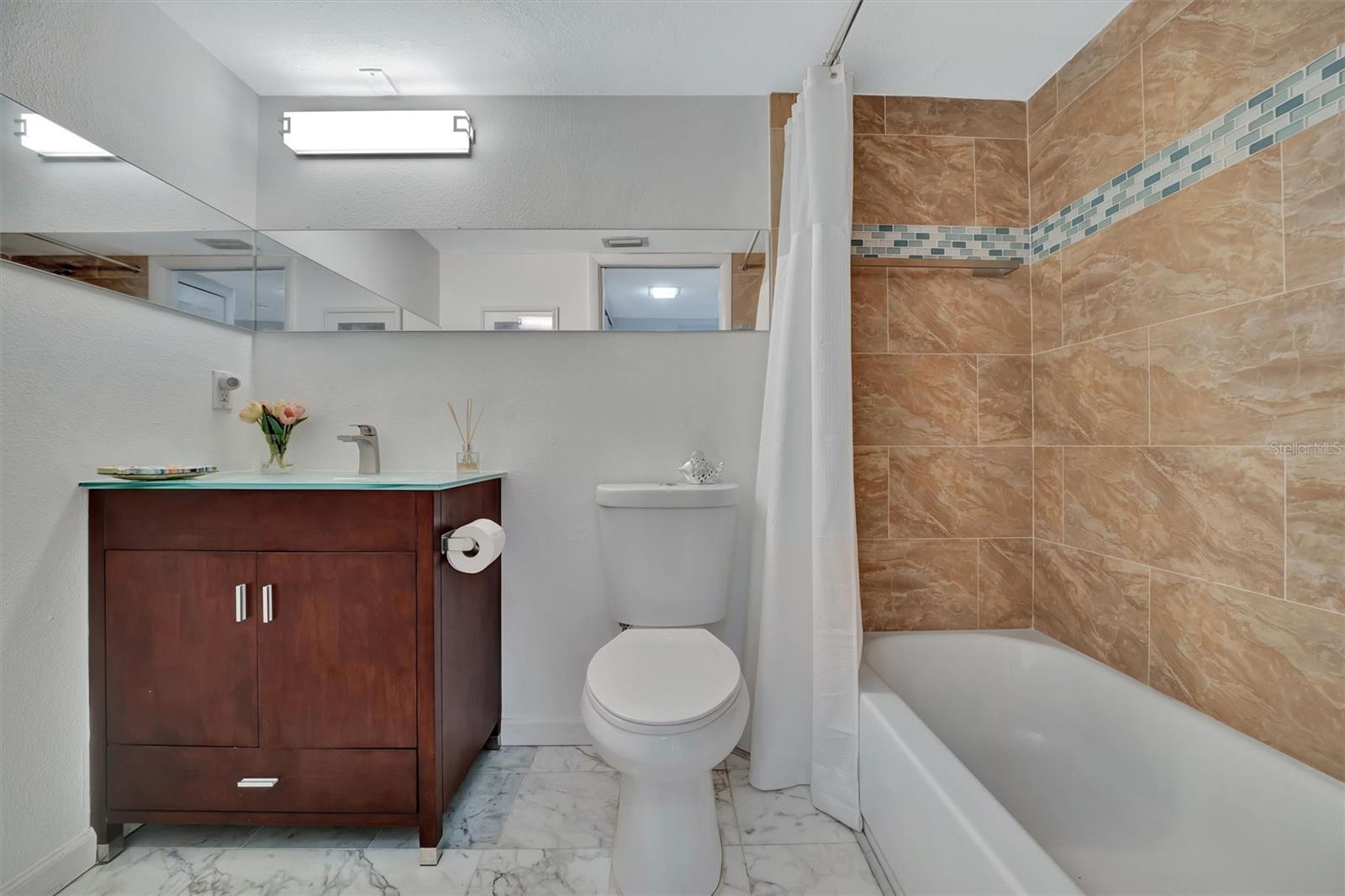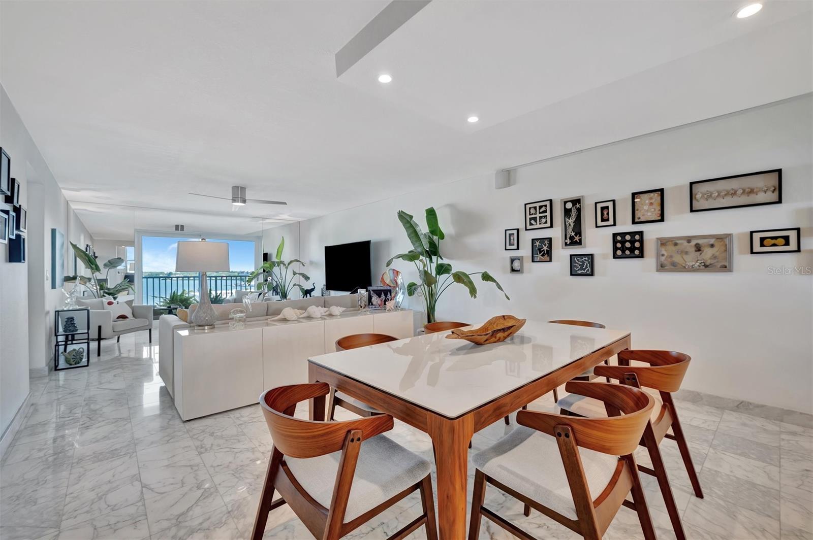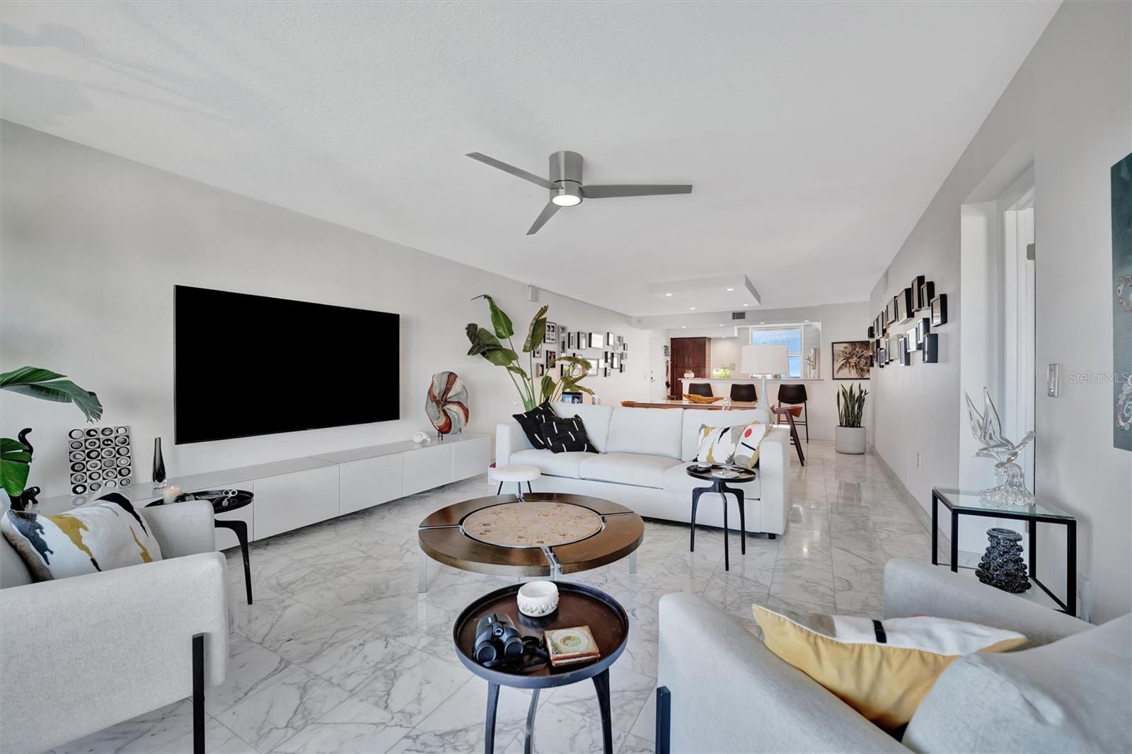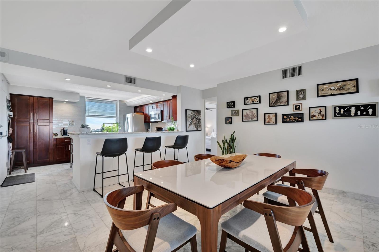This exquisite two-bedroom, two-bath condominium, located on the ninth floor, boasts spectacular unobstructed waterfront views that can be enjoyed from every window. The contemporary unit features an open floor plan adorned with marble flooring throughout and abundant natural sunlight in every room. The entertainer’s kitchen has been tastefully remodeled, showcasing custom hardwood cabinets with interior pull-outs, granite countertops, newer appliances, a breakfast bar, and an open kitchen island. The spacious master bedroom includes a walk-in closet, equipped with a cherry hardwood closet system, and an updated master bath replete with elegant touches. Additionally, it provides access to a 26-foot covered waterfront balcony. The unit also features a guest bedroom with a walk-in closet and an in-unit stacked washer and dryer. Situated in the highly sought-after Admiral Building, a pet friendly, premier 55+ waterfront community, residents enjoy added conveniences, including storage closets on balconies, an extra hallway closet, a secure storage unit on the first floor, and a designated covered parking space (#903). Bay Island is a gated community with 24-hour security, offering resort-style amenities such as six heated pools, a jacuzzi spa, a full marina with boat slips (subject to a waitlist), tennis and pickleball courts, a waterfront walking trail, outdoor grilling stations, and a newly renovated clubhouse. The clubhouse features a billiards room, card room, gym with a sauna, and hosts a variety of social events organized by a dedicated social director. Additional amenities include his-and-hers gyms, a library with internet access, card rooms, table tennis, and a banquet room complete with a lounge, dance floor, and commercial kitchen. Small pets are welcome in this vibrant 55+ community. With the Milestone and SIRS reports completed and the seller motivated, this move-in-ready unit presents an unparalleled waterfront retreat. Don’t miss this exceptional opportunity! This prime location is merely minutes away from the beach, DTSP, Johns Pass Village, shopping, dining, Palms of Pasadena Hospital, the Tampa International Airport (as well as several private airports) and much more. This stunning condominium epitomizes luxury, convenience, and coastal charm. Schedule your private showing now.