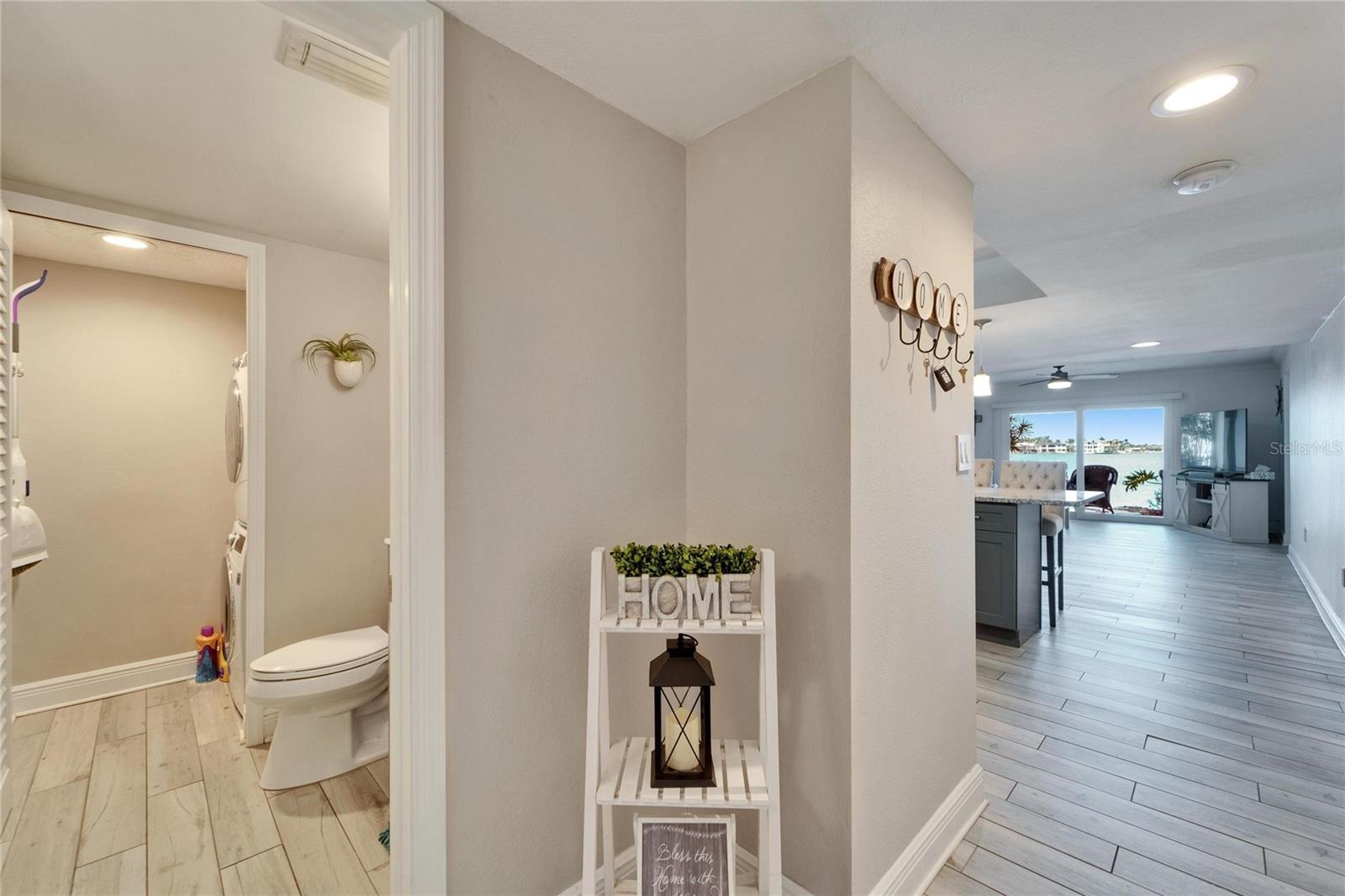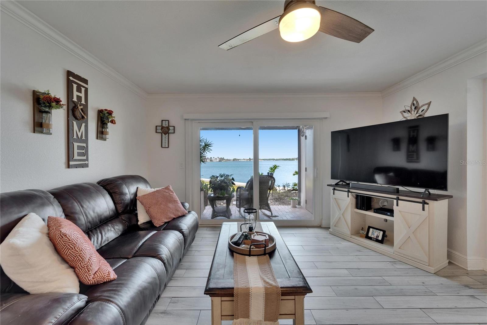 Experience the ultimate waterfront lifestyle in this stunning, ground-floor retreat 2nd to the end. Wake up to breathtaking views through impact-rated windows and sliding glass doors, and relax on your covered lanai, where dolphins and manatees are frequent visitors. This completely renovated unit features luxury porcelain tile, a chef's kitchen with granite countertops and LG stainless steel appliances, and a primary suite with a custom marble and tile shower. Enjoy the convenience of a newer AC unit, in-unit laundry, and assigned covered parking. Bay Island offers an unparalleled resort experience with six heated pools, tennis and pickleball courts, a fitness center, and a scenic 1.5-mile waterfront walkway. Plus, you're just minutes from beaches, downtown St. Petersburg, and major sports venues. (55+ Community)