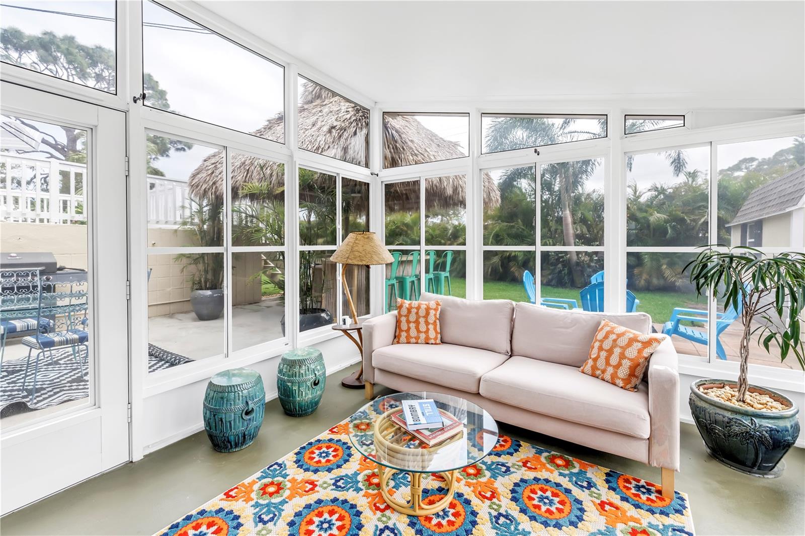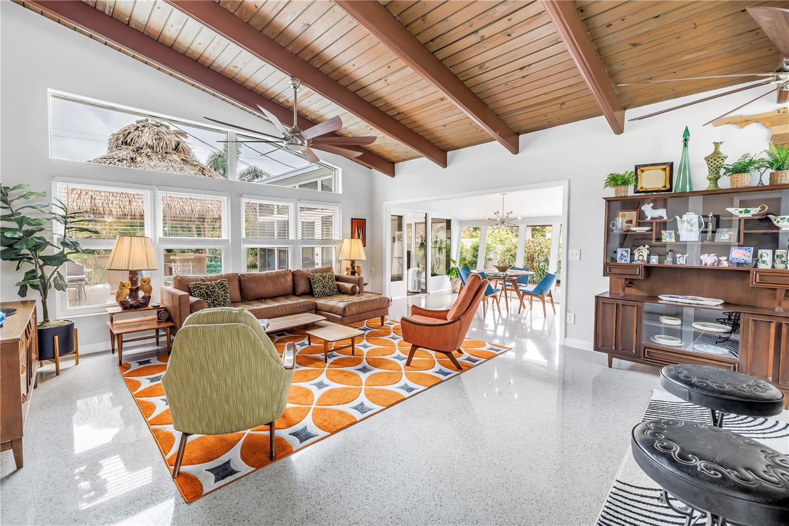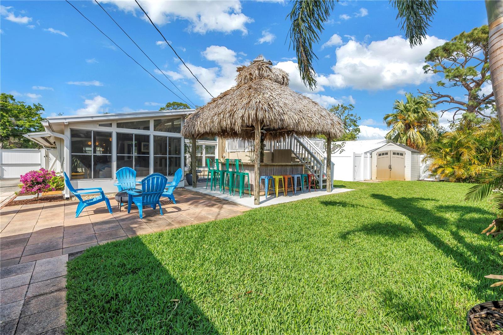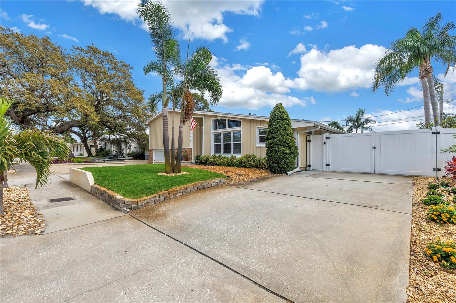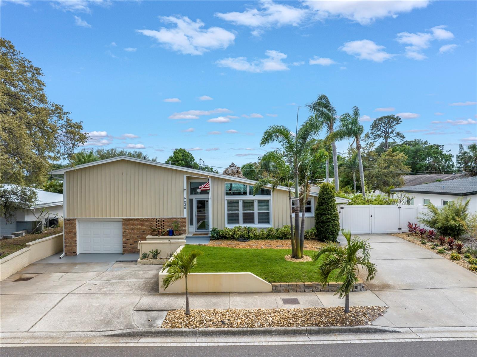 Located within the Charming Neighborhood of Pasadena Golf Club Estates, This Move-in-Ready, Tri-Level, Mid-Century Home is Full of Upgrades & Improvements to Impress the Most Discerning Homeowner. Upon Entering this Beautiful Property, You are Greeted by the Tongue & Groove Vaulted Ceilings, Restored Terrazzo & Hardwood Floors and Remodeled Kitchen with Antique Wood Grey Cabinets, Granite Countertops with Full Height Backsplash, Stainless Steel Appliances & Soft-Close Drawers. A Custom Built, Key West Style Tiki Bar with New, Palm Thatch Roof is Centrally Positioned in the Private Backyard Which Offers Fresh Landscaping Improvements (Mature Sod, Full Coverage Irrigation System on Well & Timer, Areca Palms Along Rear Property and Many Other Native Species) and a Private Sun Deck. The Spacious Living Space Offers an Open Floor Plan that Pours in Natural Light from All Angles, and Seamlessly Connects the Dining Area, Kitchen & Sun Porch Spaces. The Three (3) Bedrooms and Main Bathroom (with Timeless 50's Finishes Complimented with Contemporary Updates) are Located just a Few Steps Up Off of the Living Room, with All Bedrooms Offering Vaulted Ceilings and Restored Hardwood Flooring. Generous Closets & Storage Nooks Throughout, Including a Spacious Closet in the Primary Bedroom, Large Linen Closet in Main Bathroom and Overflow Storage on the Lower Level Attached to the Mud/Laundry Room Area with Built-In Cabinets. The Second Bathroom is Located a Few Steps Down Off of the Living Space, and Includes a Walk-In Shower with Eclectic Tile & Contemporary Updates. Additional Upgrades & Features Include: Complete Interior Rewire with New Panel (2021), New Main Roof, Shed Roof & Sealed Metal Roof Over Sun Porch (2021), Fresh Interior & Exterior Painting, Almost All Newer Duct Work, Refreshed Insulation, Many Newer Impact Windows, White Vinyl Fencing in Select Areas with Double Gate Entry for Boat/Trailer/RV Storage, Two (2) Spacious Storage Sheds, Functioning Wall Mounted Vacuum in Garage and a "Safe" Room. Two Separate Parking Areas Plus a One Car Garage Can Accommodate 4+ Cars, In Addition to the Boat/Trailer/RV Space. This Home is Truly One-of-a-Kind, and Offers a Perfect Balance of Location (Walkable to Three Grocery Stores & Three Blocks to the Sunrunner!), Mid-Century Charm, Contemporary Updates and Privacy!