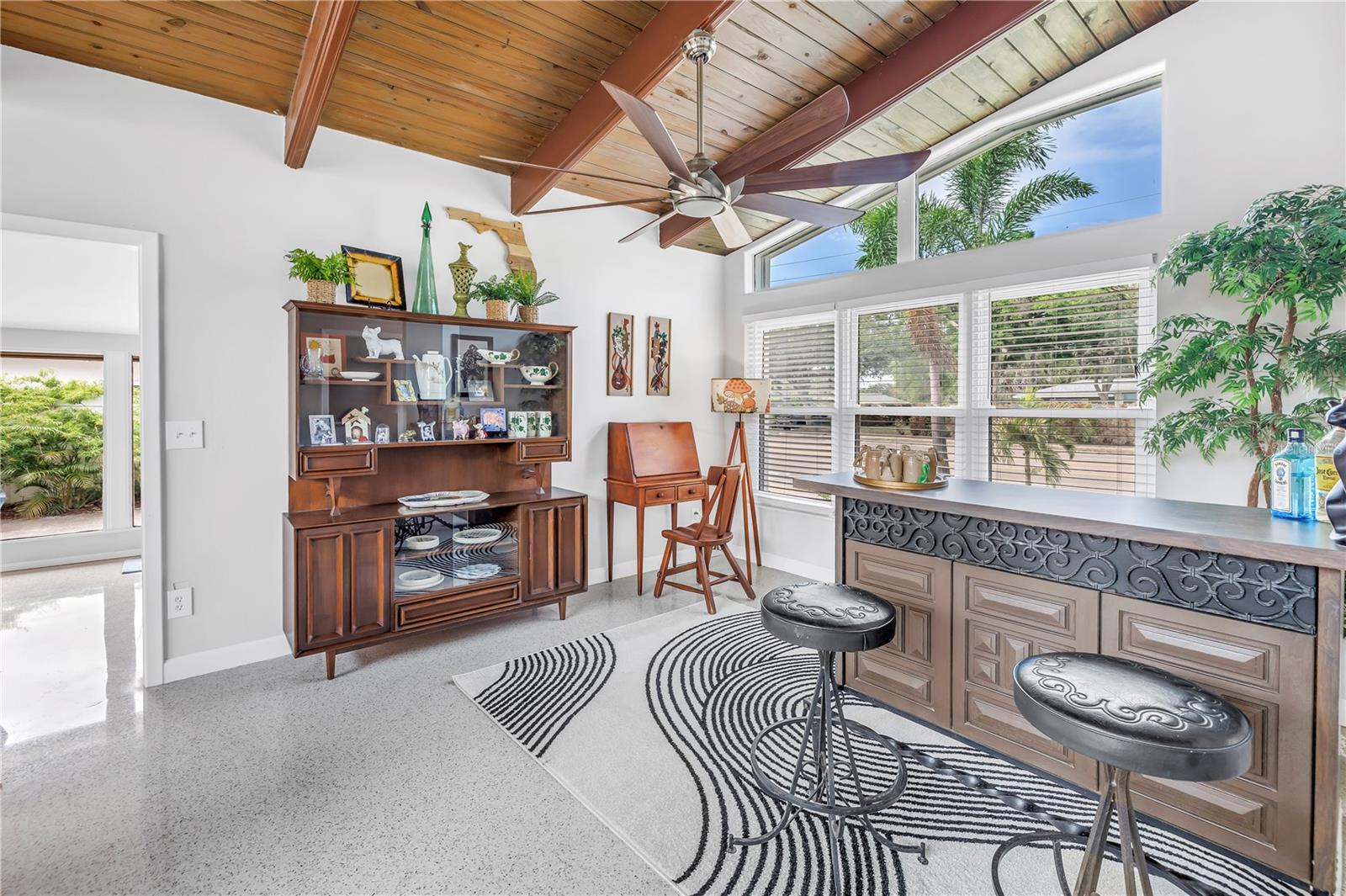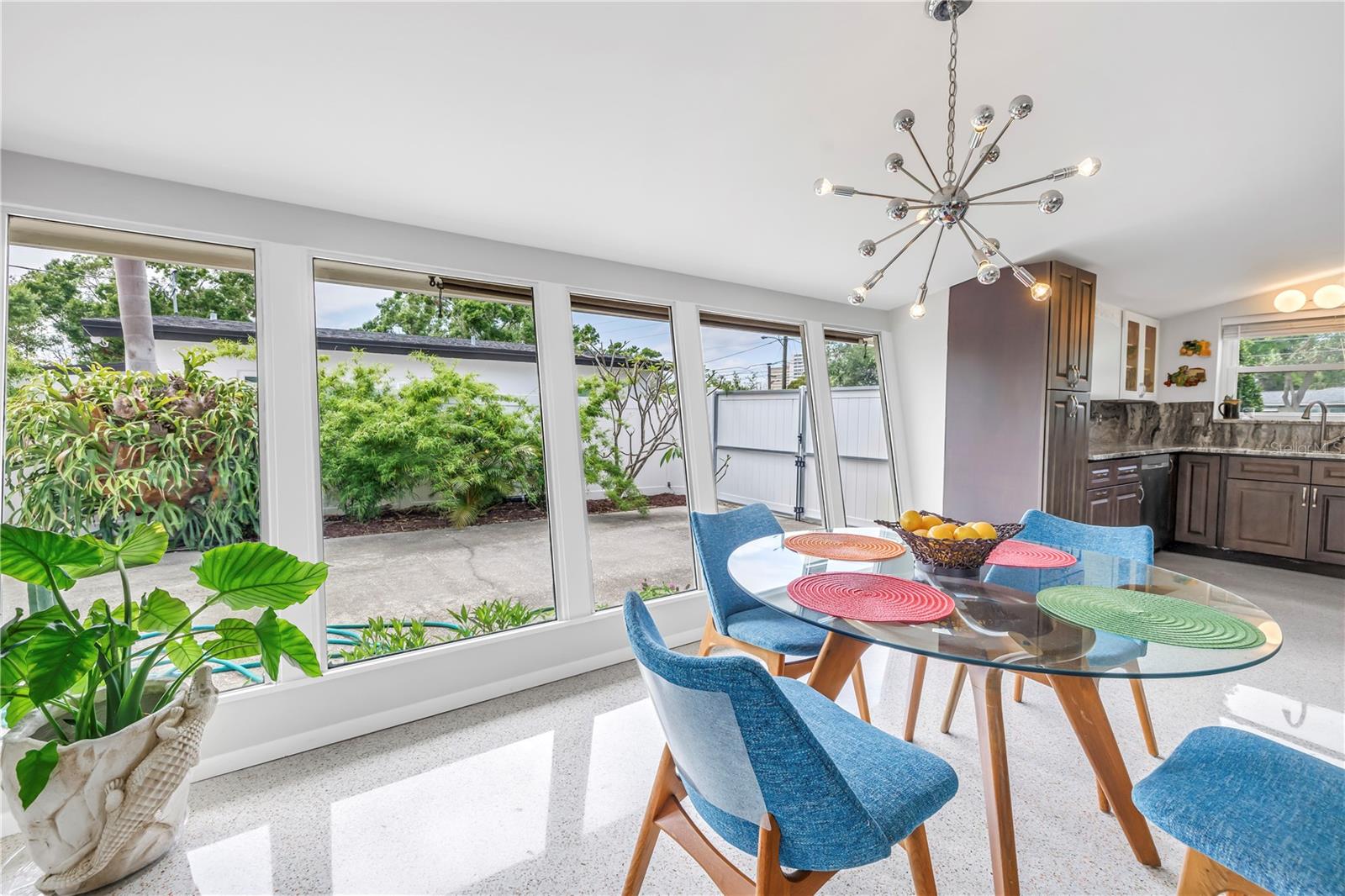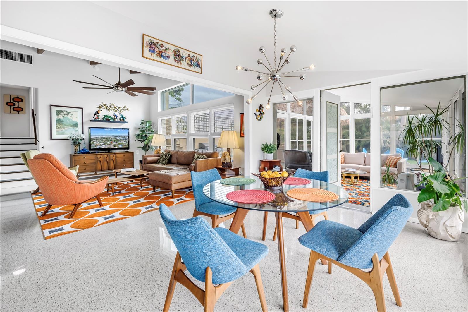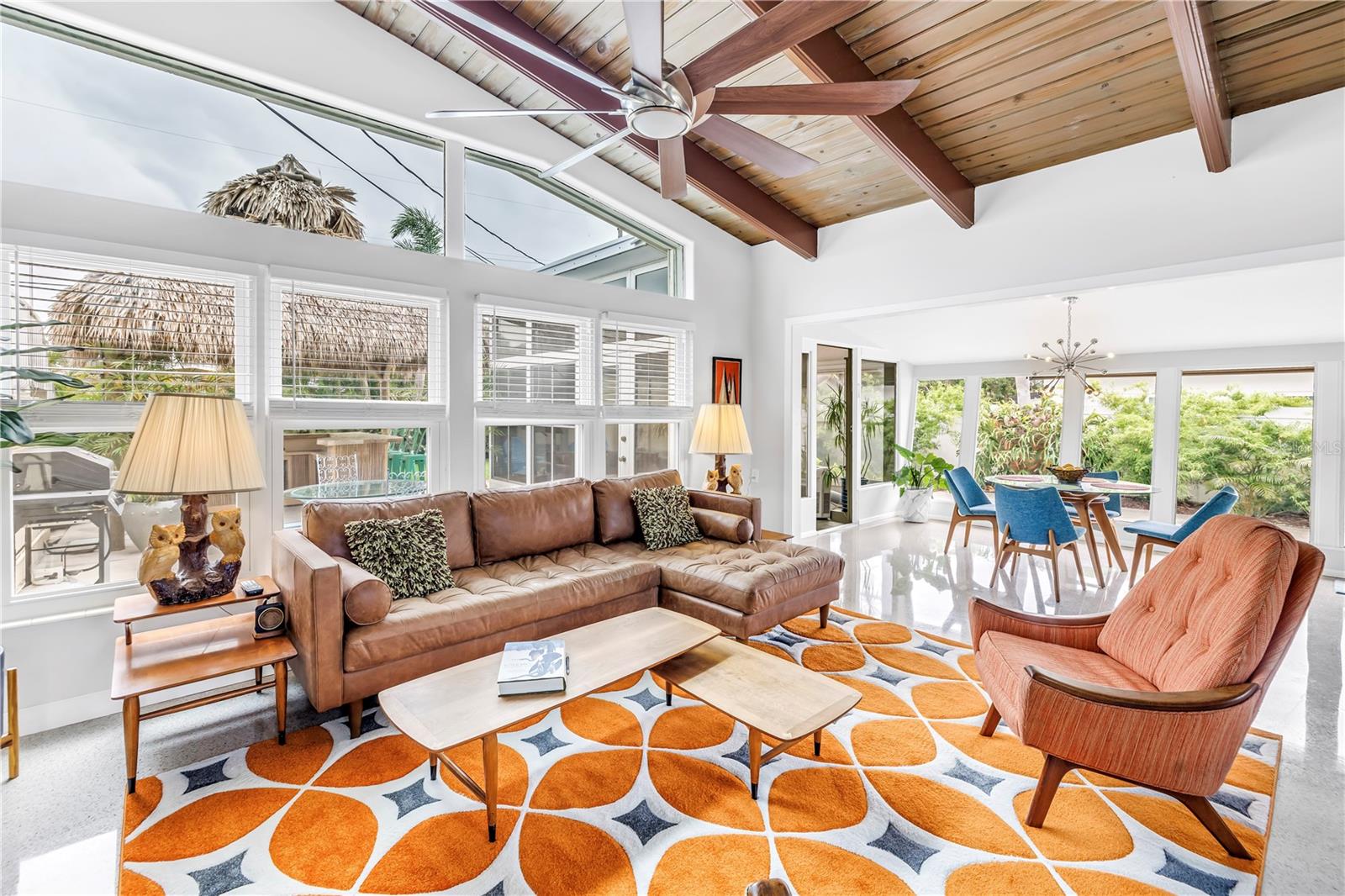 Located within the Charming Neighborhood of Pasadena Golf Club Estates, This Move-in-Ready, Tri-Level, Mid-Century Home is Full of Upgrades & Improvements to Impress the Most Discerning Homeowner. Upon Entering this Beautiful Property, You are Greeted by the Tongue & Groove Vaulted Ceilings, Restored Terrazzo & Hardwood Floors and Remodeled Kitchen with Antique Wood Grey Cabinets, Granite Countertops with Full Height Backsplash, Stainless Steel Appliances & Soft-Close Drawers. A Custom Built, Key West Style Tiki Bar with New, Palm Thatch Roof is Centrally Positioned in the Private Backyard Which Offers Fresh Landscaping Improvements (Mature Sod, Full Coverage Irrigation System on Well & Timer, Areca Palms Along Rear Property and Many Other Native Species) and a Private Sun Deck. The Spacious Living Space Offers an Open Floor Plan that Pours in Natural Light from All Angles, and Seamlessly Connects the Dining Area, Kitchen & Sun Porch Spaces. The Three (3) Bedrooms and Main Bathroom (with Timeless 50's Finishes Complimented with Contemporary Updates) are Located just a Few Steps Up Off of the Living Room, with All Bedrooms Offering Vaulted Ceilings and Restored Hardwood Flooring. Generous Closets & Storage Nooks Throughout, Including a Spacious Closet in the Primary Bedroom, Large Linen Closet in Main Bathroom and Overflow Storage on the Lower Level Attached to the Mud/Laundry Room Area with Built-In Cabinets. The Second Bathroom is Located a Few Steps Down Off of the Living Space, and Includes a Walk-In Shower with Eclectic Tile & Contemporary Updates. Additional Upgrades & Features Include: Complete Interior Rewire with New Panel (2021), New Main Roof, Shed Roof & Sealed Metal Roof Over Sun Porch (2021), Fresh Interior & Exterior Painting, Almost All Newer Duct Work, Refreshed Insulation, Many Newer Impact Windows, White Vinyl Fencing in Select Areas with Double Gate Entry for Boat/Trailer/RV Storage, Two (2) Spacious Storage Sheds, Functioning Wall Mounted Vacuum in Garage and a "Safe" Room. Two Separate Parking Areas Plus a One Car Garage Can Accommodate 4+ Cars, In Addition to the Boat/Trailer/RV Space. This Home is Truly One-of-a-Kind, and Offers a Perfect Balance of Location (Walkable to Three Grocery Stores & Three Blocks to the Sunrunner!), Mid-Century Charm, Contemporary Updates and Privacy!