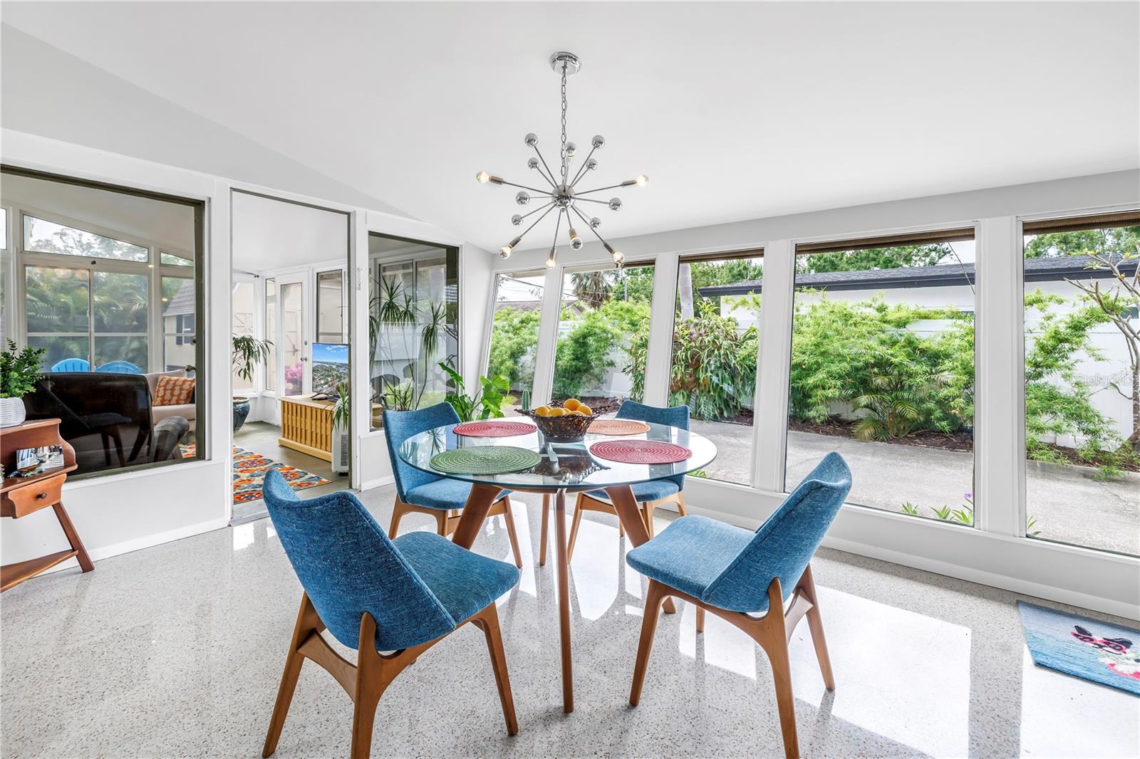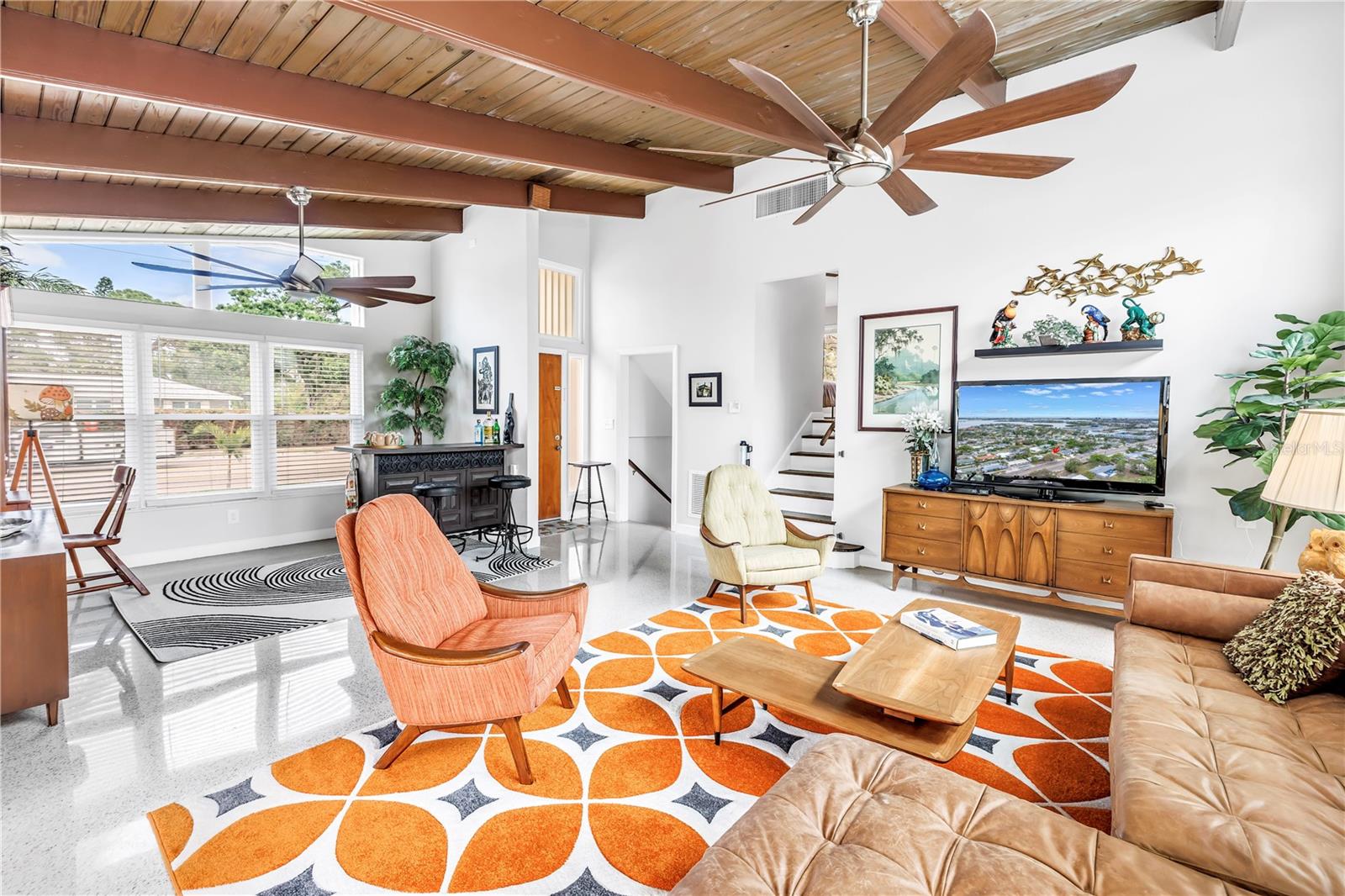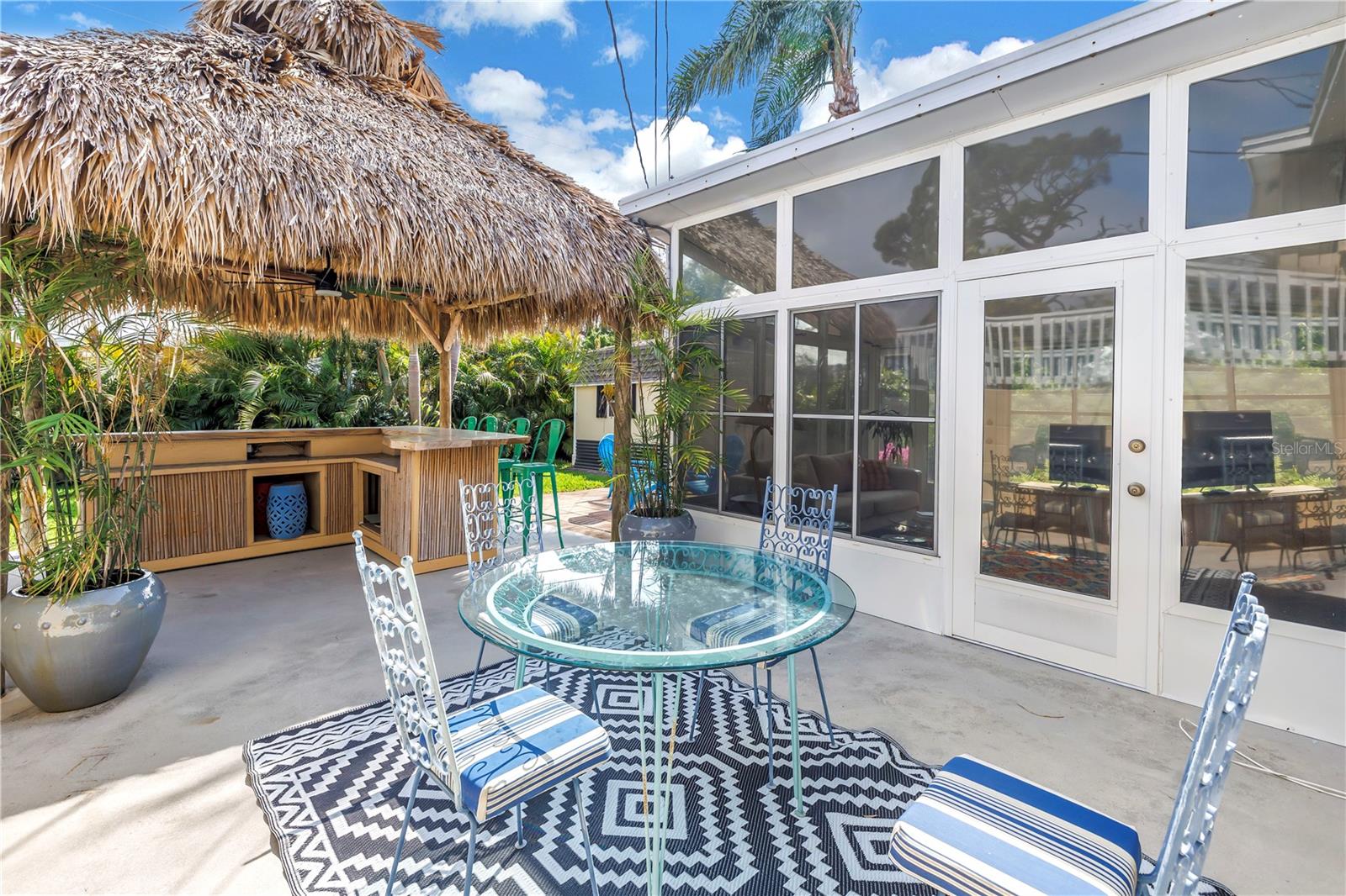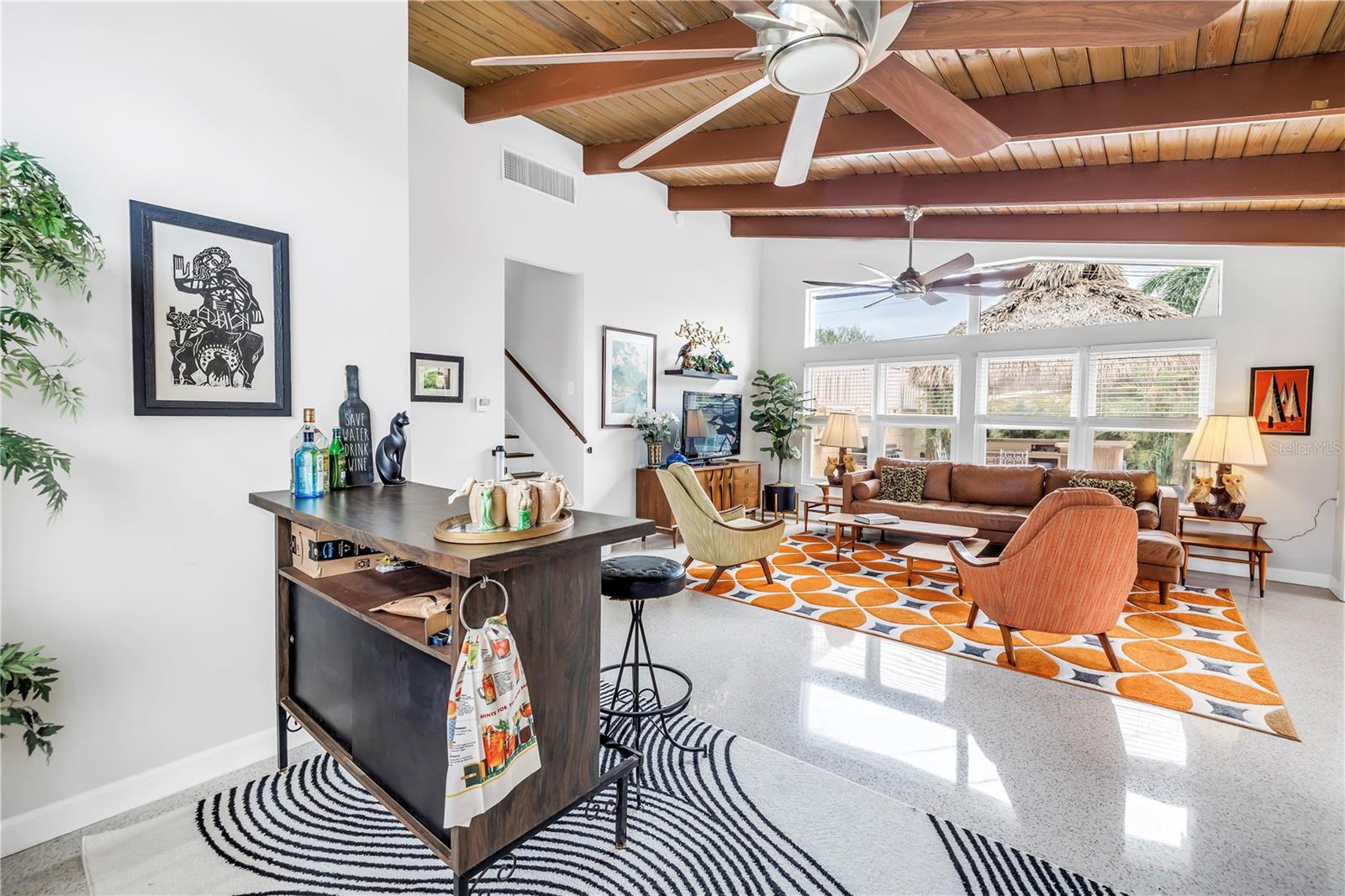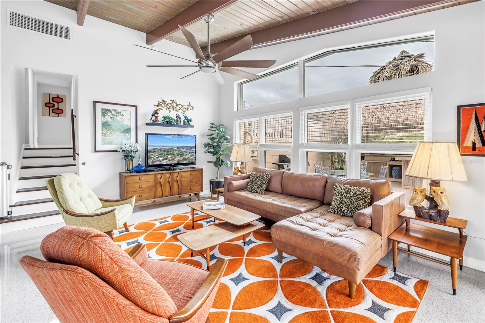 Located within the Charming Neighborhood of Pasadena Golf Club Estates, This Move-in-Ready, Tri-Level, Mid-Century Home is Full of Upgrades & Improvements to Impress the Most Discerning Homeowner. Upon Entering this Beautiful Property, You are Greeted by the Tongue & Groove Vaulted Ceilings, Restored Terrazzo & Hardwood Floors and Remodeled Kitchen with Antique Wood Grey Cabinets, Granite Countertops with Full Height Backsplash, Stainless Steel Appliances & Soft-Close Drawers. A Custom Built, Key West Style Tiki Bar with New, Palm Thatch Roof is Centrally Positioned in the Private Backyard Which Offers Fresh Landscaping Improvements (Mature Sod, Full Coverage Irrigation System on Well & Timer, Areca Palms Along Rear Property and Many Other Native Species) and a Private Sun Deck. The Spacious Living Space Offers an Open Floor Plan that Pours in Natural Light from All Angles, and Seamlessly Connects the Dining Area, Kitchen & Sun Porch Spaces. The Three (3) Bedrooms and Main Bathroom (with Timeless 50's Finishes Complimented with Contemporary Updates) are Located just a Few Steps Up Off of the Living Room, with All Bedrooms Offering Vaulted Ceilings and Restored Hardwood Flooring. Generous Closets & Storage Nooks Throughout, Including a Spacious Closet in the Primary Bedroom, Large Linen Closet in Main Bathroom and Overflow Storage on the Lower Level Attached to the Mud/Laundry Room Area with Built-In Cabinets. The Second Bathroom is Located a Few Steps Down Off of the Living Space, and Includes a Walk-In Shower with Eclectic Tile & Contemporary Updates. Additional Upgrades & Features Include: Complete Interior Rewire with New Panel (2021), New Main Roof, Shed Roof & Sealed Metal Roof Over Sun Porch (2021), Fresh Interior & Exterior Painting, Almost All Newer Duct Work, Refreshed Insulation, Many Newer Impact Windows, White Vinyl Fencing in Select Areas with Double Gate Entry for Boat/Trailer/RV Storage, Two (2) Spacious Storage Sheds, Functioning Wall Mounted Vacuum in Garage and a "Safe" Room. Two Separate Parking Areas Plus a One Car Garage Can Accommodate 4+ Cars, In Addition to the Boat/Trailer/RV Space. This Home is Truly One-of-a-Kind, and Offers a Perfect Balance of Location (Walkable to Three Grocery Stores & Three Blocks to the Sunrunner!), Mid-Century Charm, Contemporary Updates and Privacy!