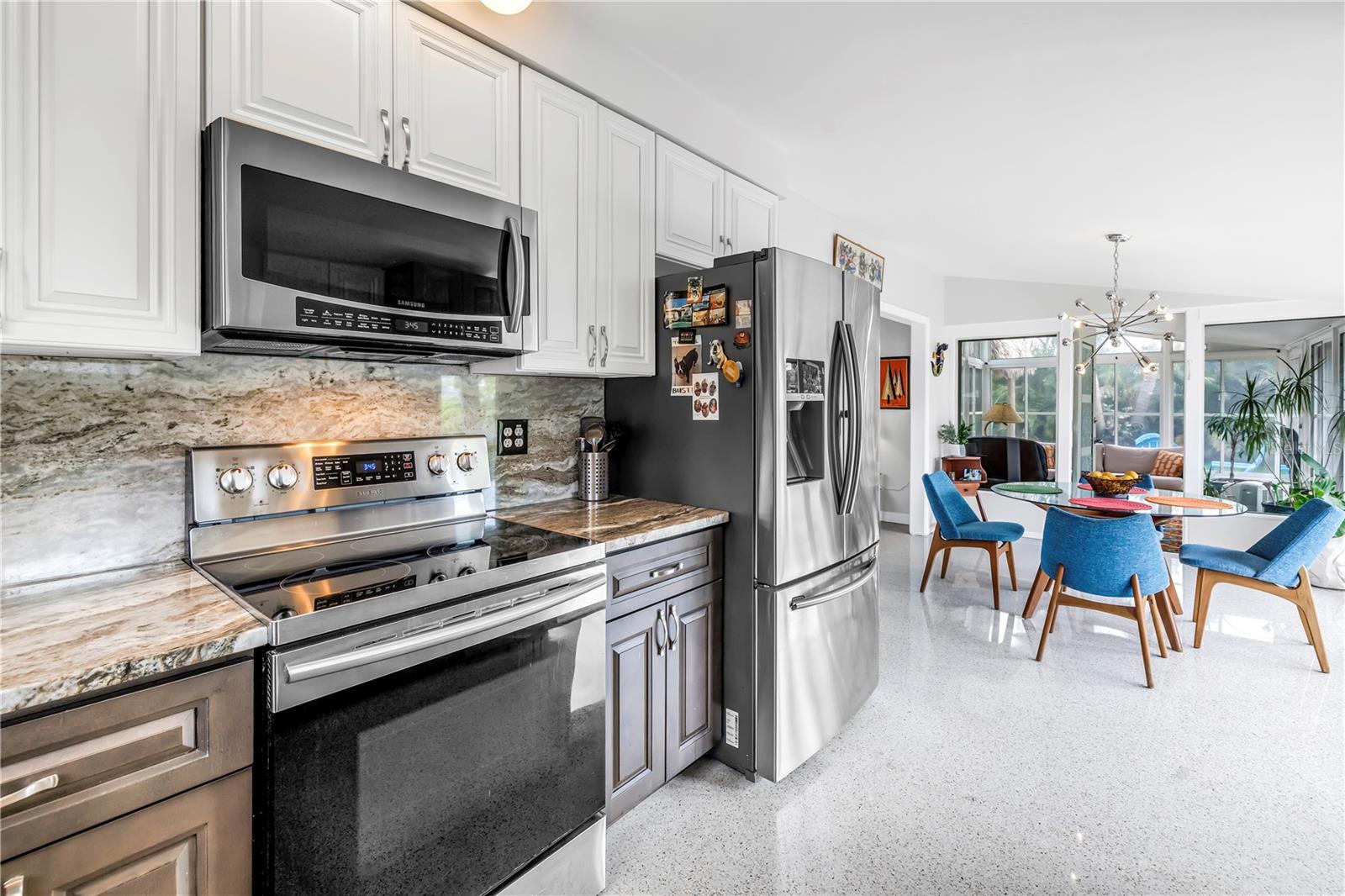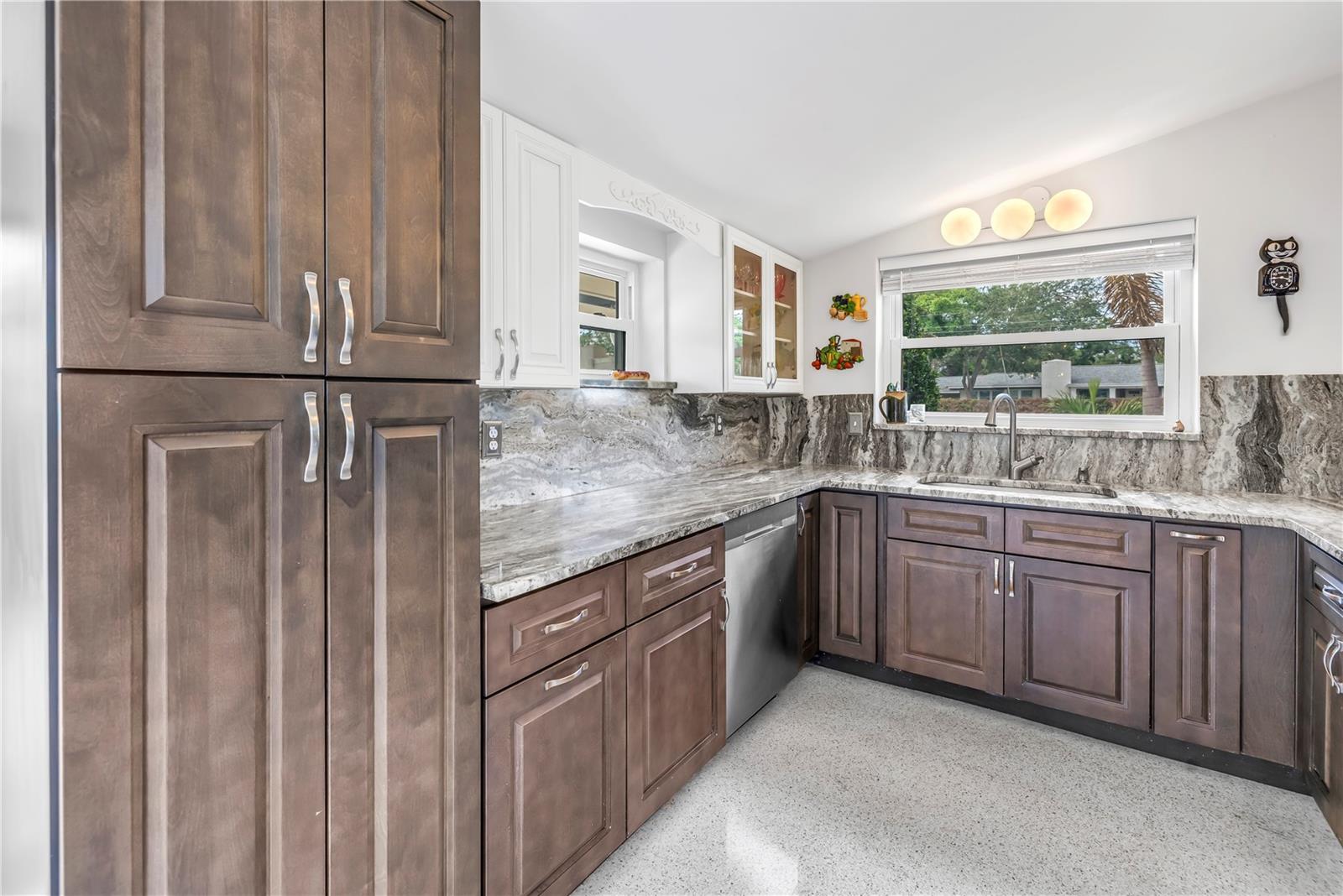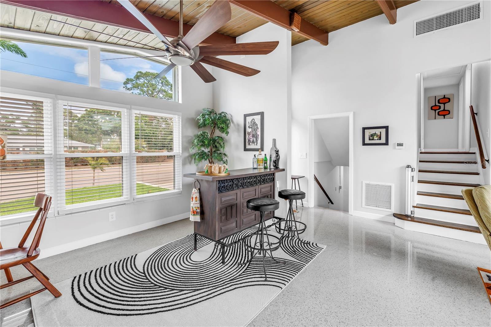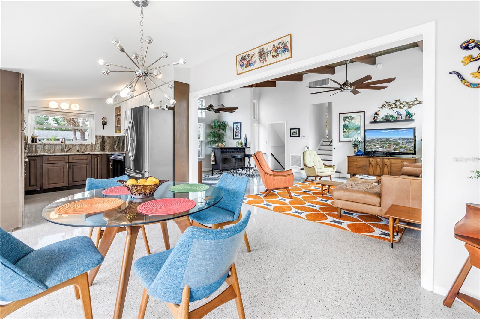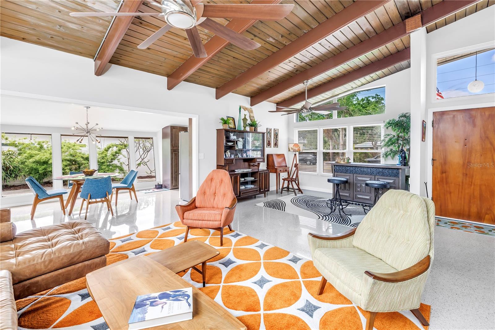 Located within the Charming Neighborhood of Pasadena Golf Club Estates, This Move-in-Ready, Tri-Level, Mid-Century Home is Full of Upgrades & Improvements to Impress the Most Discerning Homeowner. Upon Entering this Beautiful Property, You are Greeted by the Tongue & Groove Vaulted Ceilings, Restored Terrazzo & Hardwood Floors and Remodeled Kitchen with Antique Wood Grey Cabinets, Granite Countertops with Full Height Backsplash, Stainless Steel Appliances & Soft-Close Drawers. A Custom Built, Key West Style Tiki Bar with New, Palm Thatch Roof is Centrally Positioned in the Private Backyard Which Offers Fresh Landscaping Improvements (Mature Sod, Full Coverage Irrigation System on Well & Timer, Areca Palms Along Rear Property and Many Other Native Species) and a Private Sun Deck. The Spacious Living Space Offers an Open Floor Plan that Pours in Natural Light from All Angles, and Seamlessly Connects the Dining Area, Kitchen & Sun Porch Spaces. The Three (3) Bedrooms and Main Bathroom (with Timeless 50's Finishes Complimented with Contemporary Updates) are Located just a Few Steps Up Off of the Living Room, with All Bedrooms Offering Vaulted Ceilings and Restored Hardwood Flooring. Generous Closets & Storage Nooks Throughout, Including a Spacious Closet in the Primary Bedroom, Large Linen Closet in Main Bathroom and Overflow Storage on the Lower Level Attached to the Mud/Laundry Room Area with Built-In Cabinets. The Second Bathroom is Located a Few Steps Down Off of the Living Space, and Includes a Walk-In Shower with Eclectic Tile & Contemporary Updates. Additional Upgrades & Features Include: Complete Interior Rewire with New Panel (2021), New Main Roof, Shed Roof & Sealed Metal Roof Over Sun Porch (2021), Fresh Interior & Exterior Painting, Almost All Newer Duct Work, Refreshed Insulation, Many Newer Impact Windows, White Vinyl Fencing in Select Areas with Double Gate Entry for Boat/Trailer/RV Storage, Two (2) Spacious Storage Sheds, Functioning Wall Mounted Vacuum in Garage and a "Safe" Room. Two Separate Parking Areas Plus a One Car Garage Can Accommodate 4+ Cars, In Addition to the Boat/Trailer/RV Space. This Home is Truly One-of-a-Kind, and Offers a Perfect Balance of Location (Walkable to Three Grocery Stores & Three Blocks to the Sunrunner!), Mid-Century Charm, Contemporary Updates and Privacy!