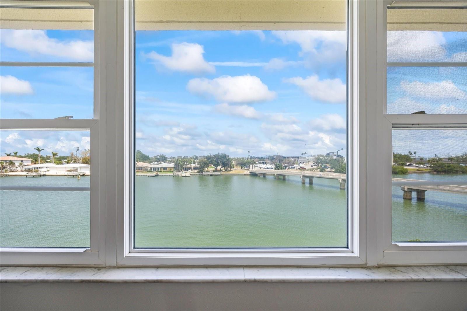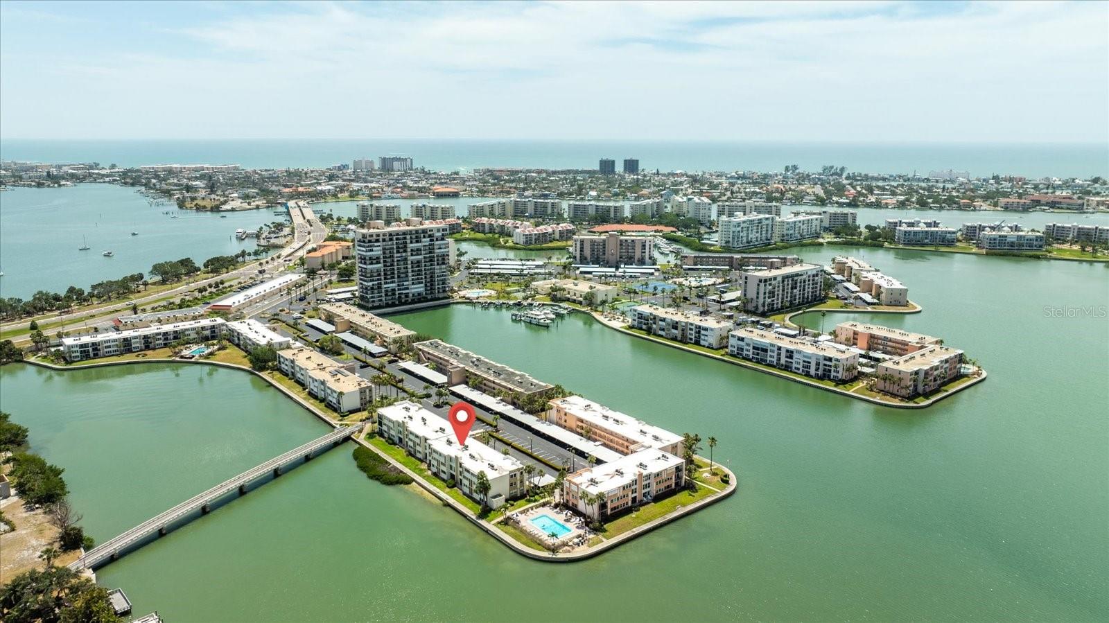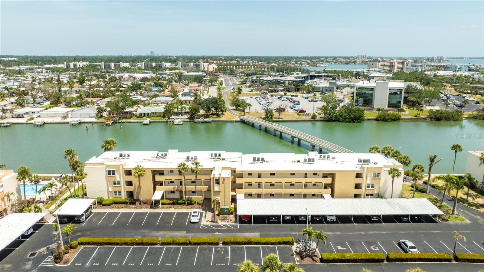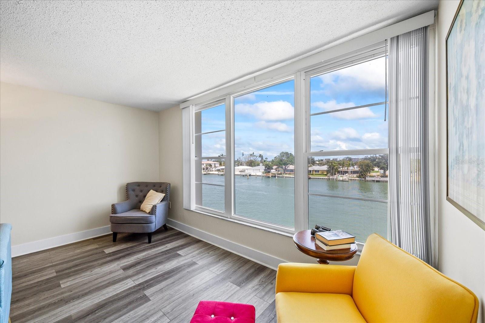 This third floor condo sits in a 55+ gated community with 24 hour guard. There are beautiful water views from both the living room and primary bedroom. Recent updates include vinyl flooring, baseboards, bathroom vanities and paint. The A/C was replaced in 2018 and there are newer hurricane impact windows. The amenities include pools, clubhouse, pickleball courts and tennis courts. There are plenty of community amenities such as six swimming pools, hot tubs, pickleball courts, four lighted tennis courts, shuffleboard courts, fitness room, BBQ areas and a mile and a half walkable seawall around the perimeter of the complex. Close to shopping, dining and St. Pete Beach.