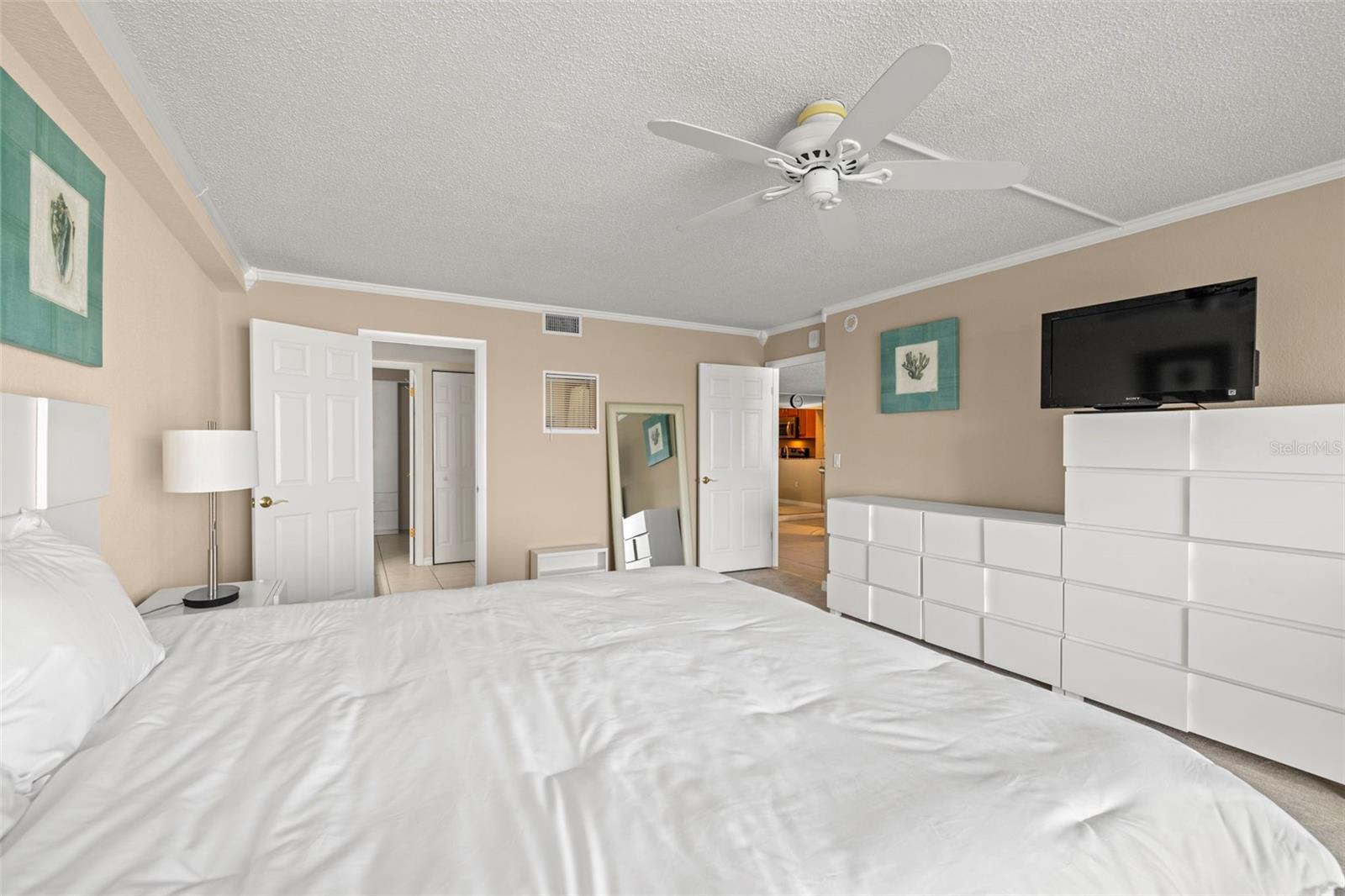 Imagine waking up each morning to the shimmering waters of Boca Ciega Bay, sunlight dancing across the waves just beyond your private 28-foot balcony. Welcome to life at Bay Island’s popular Admiral Building—a gated 55+ community where the lifestyle is as vibrant as the view. This beautifully renovated 1-bedroom, 1.5-bath condo spans 1,120 square feet of bright, inviting living space. As you step inside, you're greeted by cool porcelain tile underfoot and the elegant touch of crown molding throughout. The open-concept layout flows effortlessly, guiding you from a warm and welcoming area to a thoughtfully designed kitchen with granite countertops, rich wood cabinetry, a pantry, and sleek stainless steel appliances. The water is always in view, whether you're whipping up a meal or simply enjoying a sunset cocktail. The generously sized primary suite is your private retreat, featuring a spacious walk-in closet and a beautifully updated en-suite bath with modern finishes. Convenience meets comfort with an in-unit washer and dryer, your own covered carport, and additional storage space on the balcony—everything designed for a hassle-free lifestyle. But the magic of Bay Island extends beyond your front door. This is a community that lives like a resort. Spend your days floating in one of six heated swimming pools, unwinding in the spa, or staying active with tennis, pickleball, and shuffleboard. The state-of-the-art fitness center helps keep wellness top of mind, while the clubhouse, ballroom, and billiards room foster connection and community. Take a peaceful stroll along the 1.5-mile waterfront seawall or dock your boat just steps from home in the community marina. For the social butterfly, there’s no shortage of events, library gatherings, or just friendly chats at the pool. And when adventure calls, you're just one mile from the pristine sands of St. Pete Beach and Treasure Island. Tyrone Mall is only two miles away for shopping and dining, and I-275 is a short drive for easy travel throughout the region. This unbeatable location places you just minutes from Downtown St. Petersburg as well as the charm of Madeira Beach John’s Pass Village. Enjoy effortless access to top-tier shopping, waterfront dining, and everyday conveniences like Palms of Pasadena Hospital. Sports enthusiasts will love being close to the Rowdies and Tampa Bay Rays stadiums, while culture seekers can explore the iconic St. Pete Pier—all less than 8 miles from your doorstep Security and serenity go hand in hand with 24-hour gated access, a locked lobby with video surveillance, and the exclusive Admiral Building perks, like sharing an elevator with just two other units and access to a private leisure room. Conveniently located just 30 minutes from both Tampa International Airport (TPA) and St. Pete–Clearwater International Airport (PIE), making travel a breeze. Small pets are welcome, so your furry companions can enjoy the Florida lifestyle too. The Milestone Inspection Report and Structural Integrity Reserve Study have been completed, with no substantial structural repairs required, offering added peace of mind for future owners. Unit can be rented monthly up to 3 times a year. Here, you're not just buying a home, you're stepping into a lifestyle. One filled with ease, beauty, and a sense of community that truly feels like home. Your waterfront paradise isn’t a dream. It’s real. And it’s waiting for you on Sun Island.