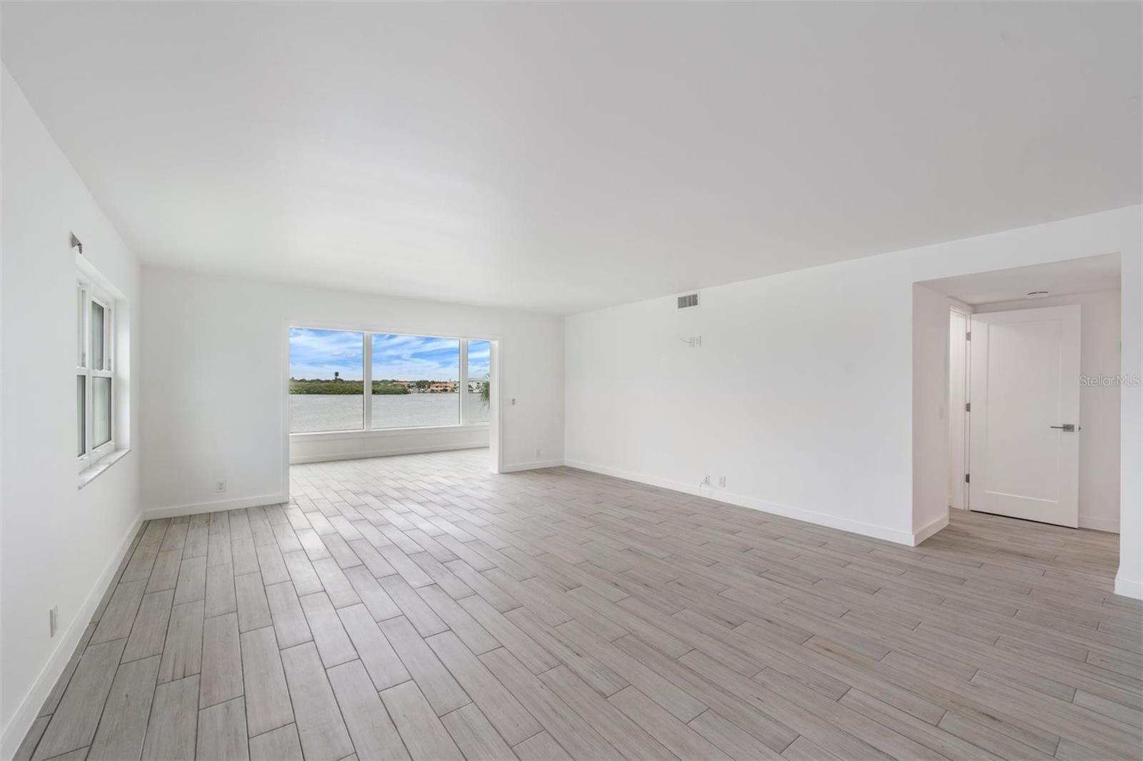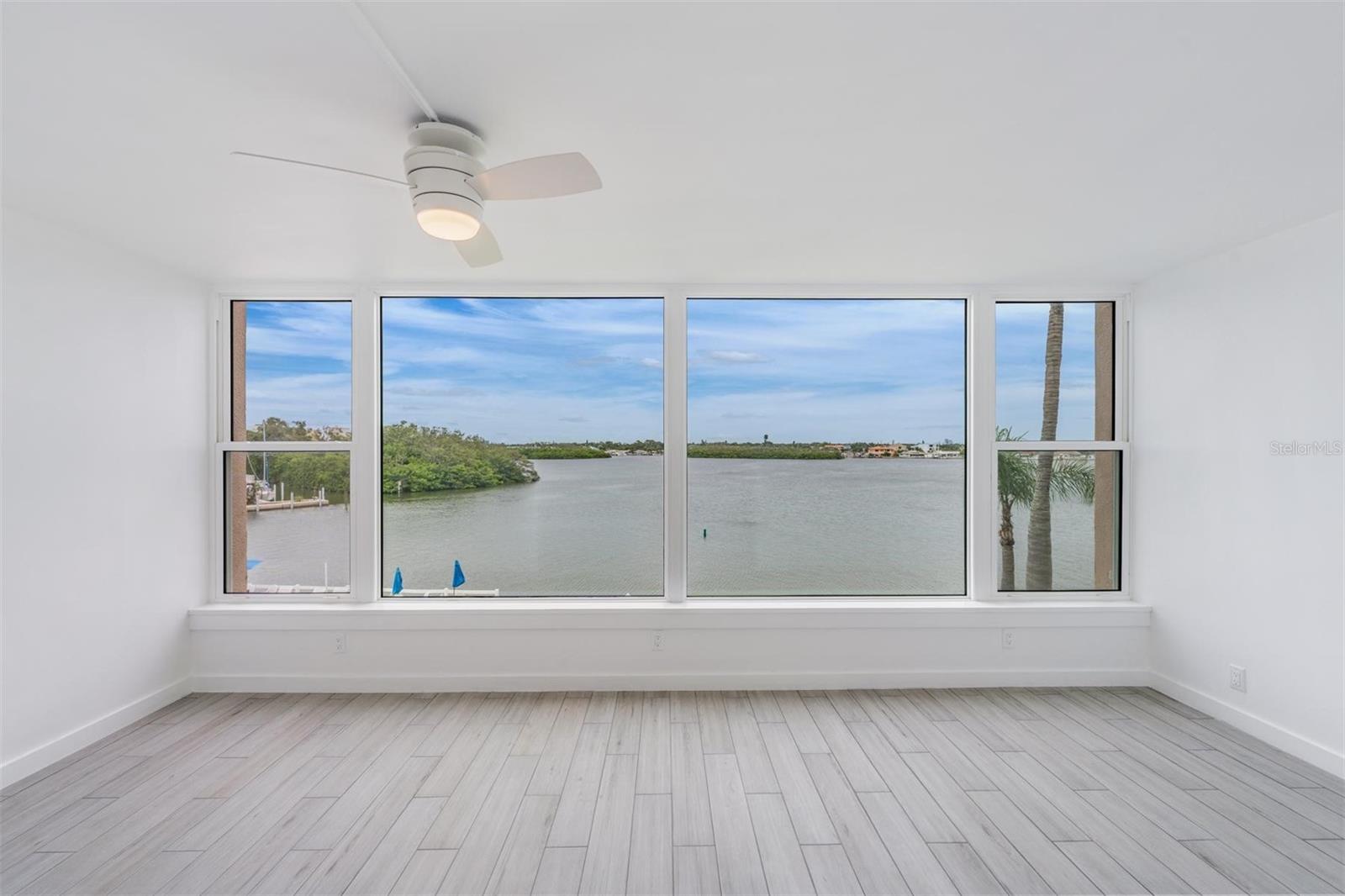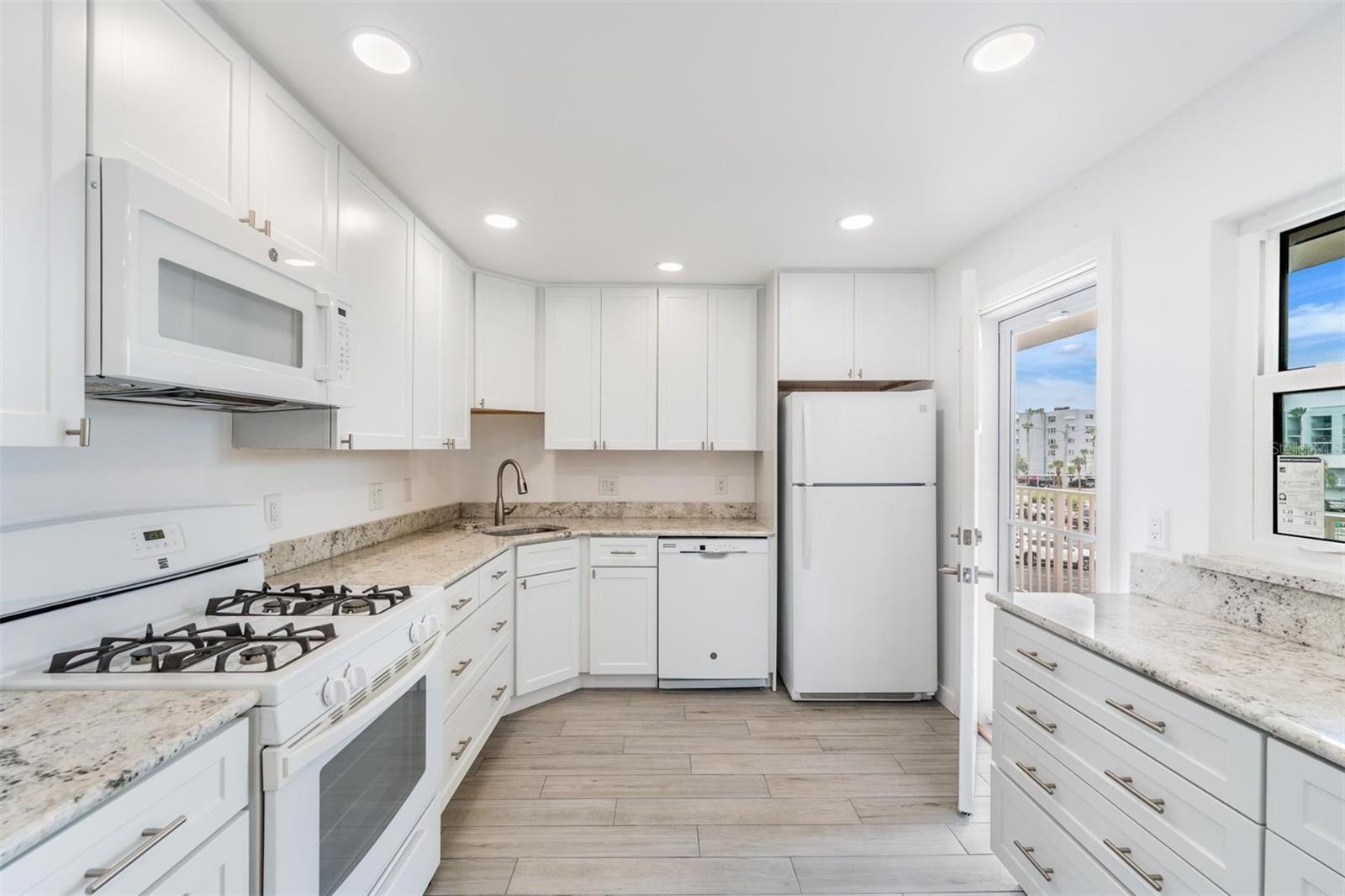 One or more photo(s) has been virtually staged. Experience the ultimate in Florida living with this beautifully renovated 2-bedroom, 2-bathroom end unit condo at Shore Crest. Perfectly situated with unobstructed views of the Boca Ciega Bay. Enjoy daily sightings of dolphins, manatees, seabirds, and an abundance of marine life right outside your window. This light-filled, tile floored residence features an open floor plan with neutral colors throughout, creating a bright and inviting atmosphere. The contemporary finishes make this home truly move-in ready. The kitchen is pristine with an abundance of solid hardwood cabinets with dovetailed drawers. No bending and reaching required as most of the lower cabinets have full pull-out drawers. A separate pantry provides added storage. The gas stove makes cooking a dream and the granite countertops gleam in the generous overhead lighting. The bar allows for easy conversation while cooking and is great for entertaining. The main bedroom is enormous with views of the bay. The on-suite bathroom features dual vanities (no sharing!) a custom walk-in shower with glass doors and a large closet. The entry door to the bath is oversized allowing for ease of aging in place. The second bedroom is on the other side of the unit, providing privacy. Each bedroom has a ceiling fan and two generously sized closets. The hall bath also has a walk-in shower with custom glass door. This spacious unit also features a rarely found in-unit laundry room with a full-sized washer and dryer. Directly outside of the unit is a separate storage room as an added bonus! The new windows throughout the unit are Miami-Dade rated against hurricanes and many include hurricane shutters. The building features a new roof (2025), newer plumbing and all the electrical in the unit has been replaced (2021). The condo fee includes Spectrum high speed internet and cable TV with a huge number of channels. Natural gas and water are also included in the condo dues. The dues also include a private dock for sitting and/or fishing, 2 heated swimming pools, library, shuffleboard, a clubhouse, and all the exterior and ground maintenance. There is an active kayaking group in the community and room to store your kayak on the outside kayak rack. Shore Crest is minutes from St. Pete Beach restaurants, hospitals, shopping and our top-rated beaches!