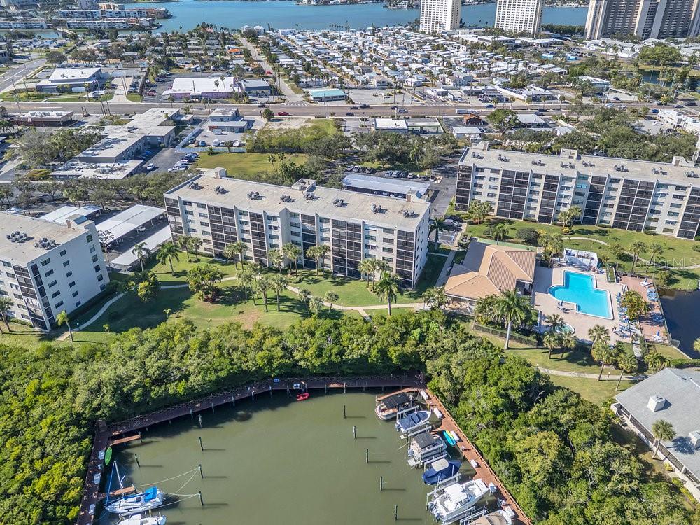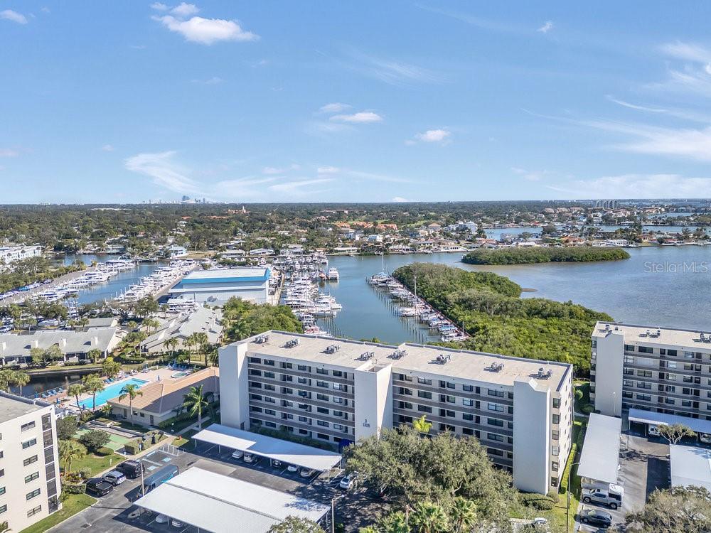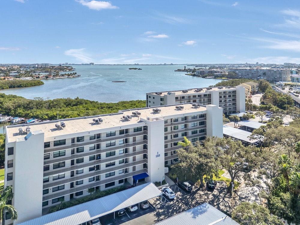 RARE OPPORTUNITY FOR ALL AGES TO ACQUIRE A PIECE OF PARADISE IN A 3RD FLOOR CORNER UNIT SOAKED WITH NATURAL LIGHT, SET IN THE GATED WATERFRONT RESORT-LIKE COMMUNITY OF PASADENA COVE, CHECKING ALL THE BOXES FOR OPTIMAL FLORIDA LIVING! Marvel at the breathtaking sunrises that greet each day while enjoying the refreshing breezes on your screened-in BALCONY and catching sunsets on the opposite side of the home from you kitchen and guest bedroom. The thoughtfully designed split floor plan enhances privacy; the spacious primary suite includes an ensuite step-in shower and a custom organized walk in closet, while the guest bathroom boasts a tub. The unit features tile and wood flooring throughout, a full-size WASHER/DRYER in your private laundry room, a pantry, generous closet space with an extra storage locker in the building, COVERED CARPORT SPACE #390, with options for bike, boat, and trailer storage as well. Additional amenities include a heated pool and spa, shuffleboard, pond with relaxing fountain, renovated clubhouse that hosts social gatherings along with a fitness center, billiards room, and a private marina where you can rent or buy DEEP WATER BOAT SLIPS when available. As you stroll through the meticulously kept grounds you will be amazed at the nearby amenities outside the complex with everything you could need, AND just minutes away from pristine Gulf Beaches and a short ride to Tampa International Airport and vibrant downtown Gulfport and St. Pete. PETS ARE WELCOME, 90 day rentals allowed, low HOA fee covers just about everything including building insurance, water, trash, sewer, cable tv and internet, and for peace of mind THE MILESTONE INSPECTION HAS ALREADY BEEN COMPLETED WITH THE REPORT AVAILABLE AND NO ASSESSMENTS. For immediate enjoyment this home could also come turn key furnished with the right offer, don't let this one get away, make your appointment to see this property today.