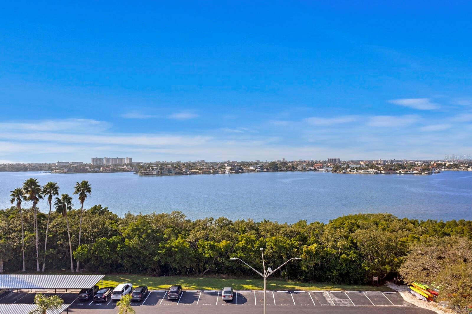 AMAZING WATERFRONT VIEWS! Experience true Florida coastal living at Chateau Towers in this 8th-floor corner-unit condo offering 2 bedrooms and 2 bathrooms with sweeping, unobstructed views of Boca Ciega Bay and stunning Gulf of Mexico sunsets. Enjoy morning coffee or evening cocktails from your private waterfront balcony, where vibrant skies and tranquil bay views create the perfect backdrop. Dedicated, covered parking space just steps from the main entrance. Inside, the open-concept floor plan is ideal for entertaining and ready for your personal design vision. Major updates include a NEW A/C system and water heater (2024), providing peace of mind. The laundry closet is conveniently located near the kitchen for everyday ease. Chateau Towers also has a public laundry room on the first floor of the building. The primary en-suite retreat is tucked privately at the rear of the residence, featuring serene waterfront views and a spacious walk-in closet. A separate guest bedroom and full bathroom at the front of the unit offer added privacy for visitors or a home office setup. Chateau Towers delivers resort-style amenities, including a waterfront heated pool, hot tub, fitness center, sauna, and steam room. Residents also enjoy outdoor grilling areas, bike storage (if available, for a small fee), kayak storage with direct bay access, a party room with kitchen, library, and an expansive recreation room featuring billiards, ping pong, and shuffleboard. Launch your kayak directly into the bay and paddle alongside dolphins and manatees. Ideally located just steps from Bay View Park and public tennis courts, and only 5 minutes from the beautiful sands of award-winning St. Pete Beach. Convenient access to Publix, Walmart, popular restaurants, including the local favorite Ted Peters, and just 20 minutes to vibrant Downtown St. Petersburg. This is a rare opportunity to own a waterfront condo in South Pasadena with unbeatable views, amenities, and location—coastal living at its finest.