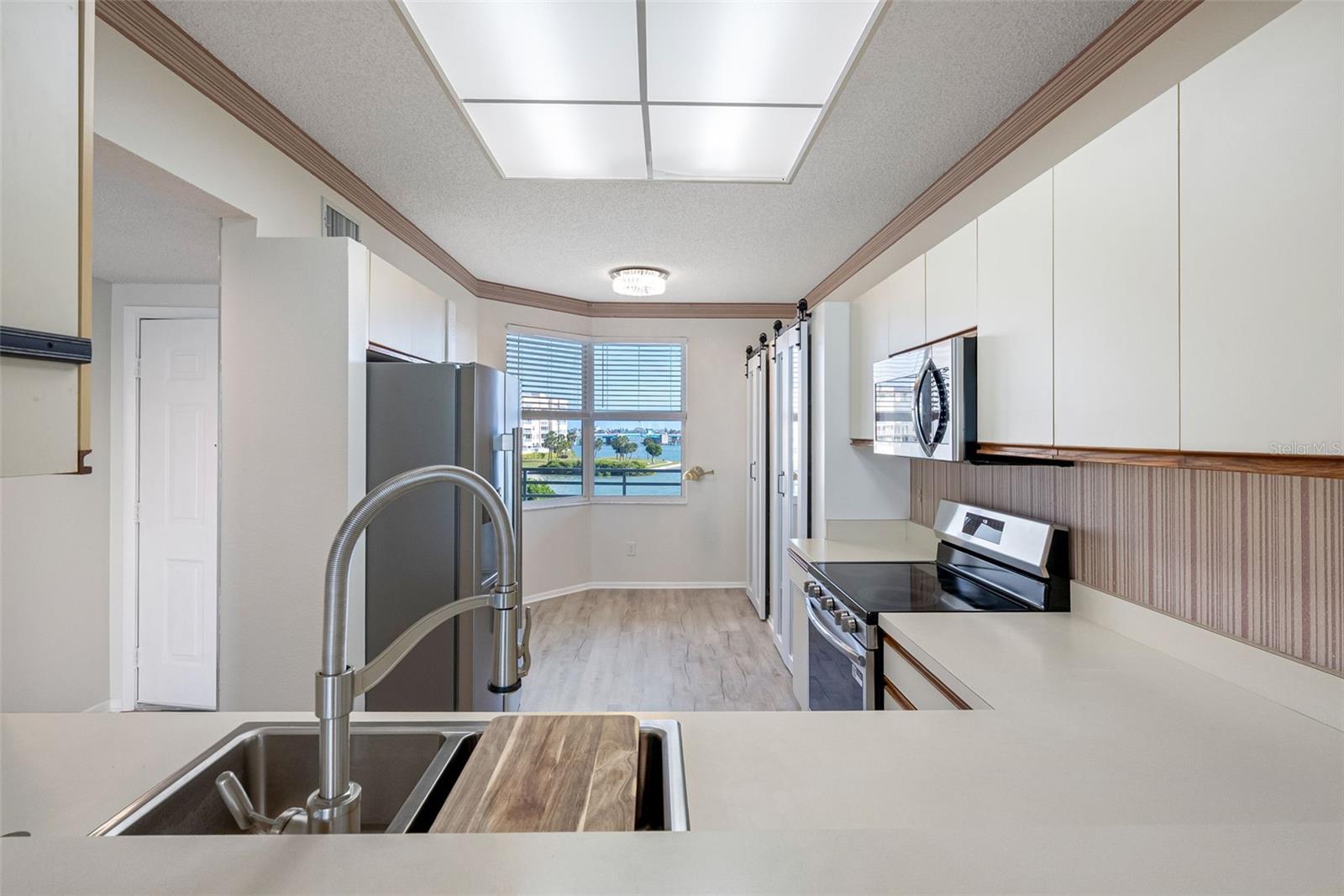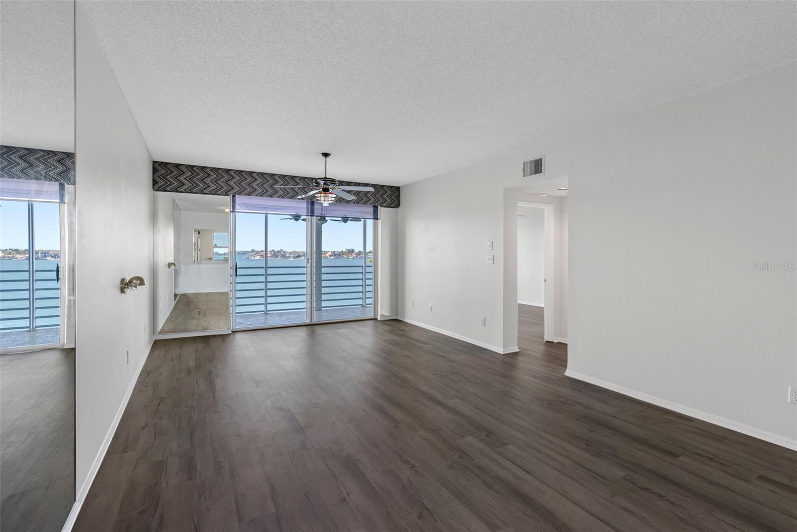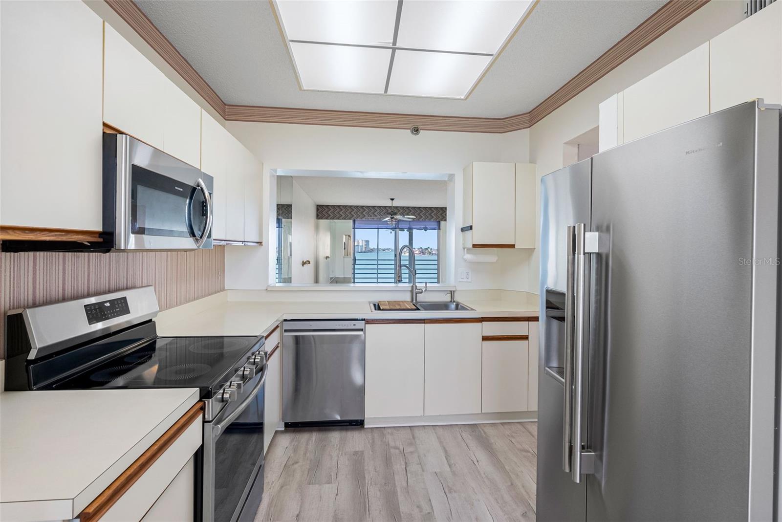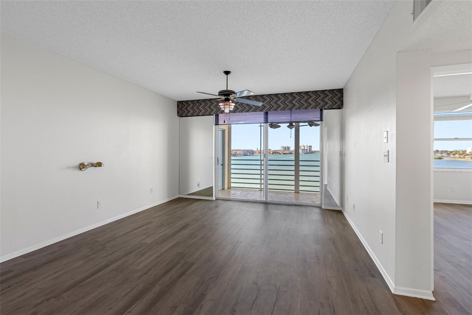 One or more photo(s) has been virtually staged. Experience BEAUTIFUL SWEEPING north and south panoramic water views of the Intracoastal Waterway from both the front and back of this exceptional 1BR, 2BA condo in the sought-after gated community of HarbourSide. You will enjoy gorgeous sunsets 365 days a year. The fabulous Intracoastal Waterway is right off your balcony filled with dolphins, manatees, pelicans and other marine life. An evening sunset, a glass of wine and you have arrived in paradise. This 980 sq. ft. unit with 9-foot ceilings has been freshly painted and new luxury vinyl plank flooring installed throughout along with new bifold doors. The kitchen has new stainless appliances, and a new washer/dryer inside the unit. The balcony has Gemstone flooring. No water intrusion in this condo with hurricane shutter protection. The HVAC and water heater are both new in 2019. The Windwards Association has passed the Milestone Inspection and the SIRS - no assessments pending or planned. It all comes down to location, location, location, and 7922 Sailboat Key #304 has the ultimate location. There is interior storage off the balcony and exterior storage near the 3rd floor elevator. This condo includes an assigned covered parking space #45 and additional guest parking in the front of the building. HarbourSide buildings are constructed of solid steel reinforced concrete which makes the units very quiet and the structure very strong. HarbourSide is a pet friendly, 24 hour guard-gated private island community with fabulous amenities including beautifully landscaped grounds, a marina with 87 deeded slips, kayak storage, 5 tennis courts with pickle ball, 6 pools, shuffleboard, saunas and a hot tub, a 1.5 mile waterside walking path, his/hers fitness centers, a country club style clubhouse with an active social agenda, 3 car wash stations with vacuum and air, electric charging stations, a short bike ride to the beach and much more. HarbourSide is close to shopping, dining, medical facilities, entertainment venues, the revitalized downtown St Petersburg, world class Gulf beaches, major sport venues, international airports and Disney World. Close to everything, yet a world away! This is resort style living at its finest!! HarbourSide is an all-ages community.