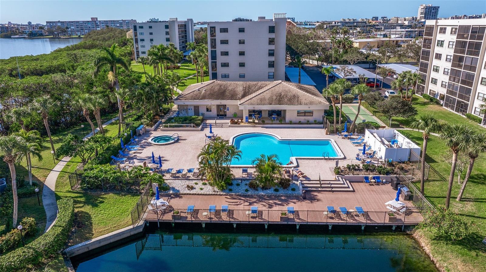 This stunning top-floor residence at Pasadena Cove offers breathtaking water views, capturing the serene beauty of Boca Ciega Bay. Nestled in the gated waterfront community of Pasadena Cove, in the heart of South Pasadena, this pet-friendly condo delivers convenient coastal lifestyle. Bathed in natural light thanks to its prime south-east facing orientation, the home feels bright, airy, and inviting throughout the day - without the intensity of direct western sun. The split-bedroom layout ensures maximum privacy, with a spacious primary featuring an en-suite bathroom, oversized walk-in closet and walk-in shower. The secondary bedroom offers its own full bath with a shower/tub combo and generous closet space. The galley-style kitchen is both functional and stylish, boasting Corian countertops, tile flooring, plus Whirlpool appliances including a range and refrigerator. The open living room flows seamlessly to a screened balcony - perfect for morning coffee or evening relaxation - complete with hurricane-rated windows (updated 2020 on the eastern side) and roll-down shutters on the sliding doors. Recent upgrades provide peace of mind: HVAC (2022), water heater (2025), and a newer roof (2023) for the building. The Milestone Inspection and SIRS have been completed with no assessments. Additional highlights include in-unit washer/dryer, an oversized storage closet on the 4th floor, bike storage, assigned carport parking spot, and furnishings included for effortless move-in. Pasadena Cove's amenities elevate everyday living: a heated community pool and spa, shuffleboard, billiards, a clubhouse with fitness center, and a private marina offering boat slips for purchase or lease. The gated, waterfront setting includes visitor boat slips, RV/boat trailer parking (additional fee), and direct access to the bay. Location is unbeatable, just steps from Publix, Winn-Dixie, Walmart Neighborhood Market, pharmacies, restaurants, golf courses, beaches, and fitness options. The nearby SunRunner bus stop provides easy, car-free access to vibrant Downtown St. Petersburg or the pristine beaches of St. Pete Beach, Treasure Island, and beyond. The Pinellas Trail is minutes away for outdoor enthusiasts, and both St. Pete/Clearwater and Tampa International Airports are only about a 30 minute drive. Schedule your private showing today.