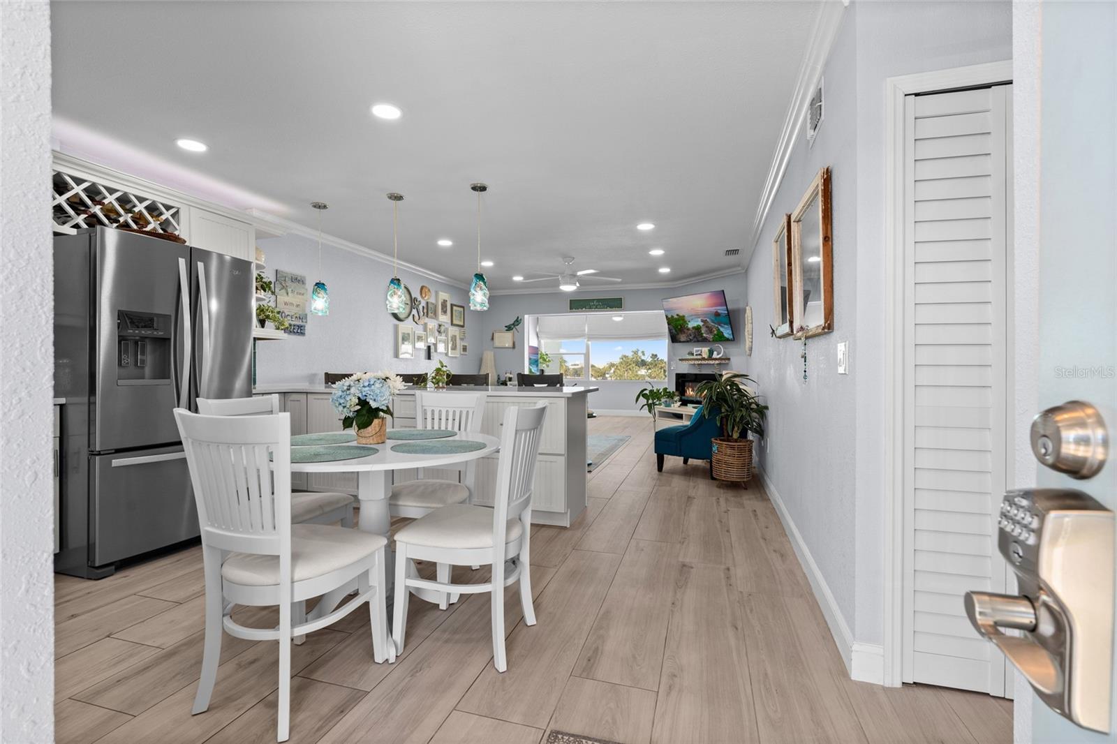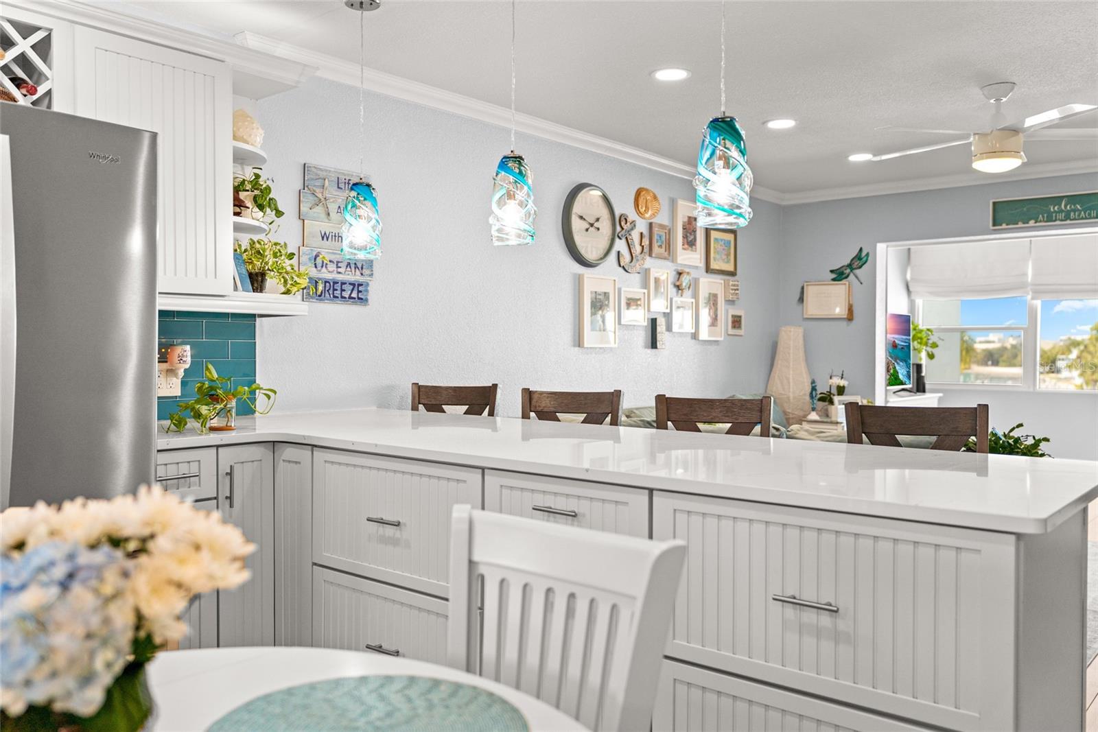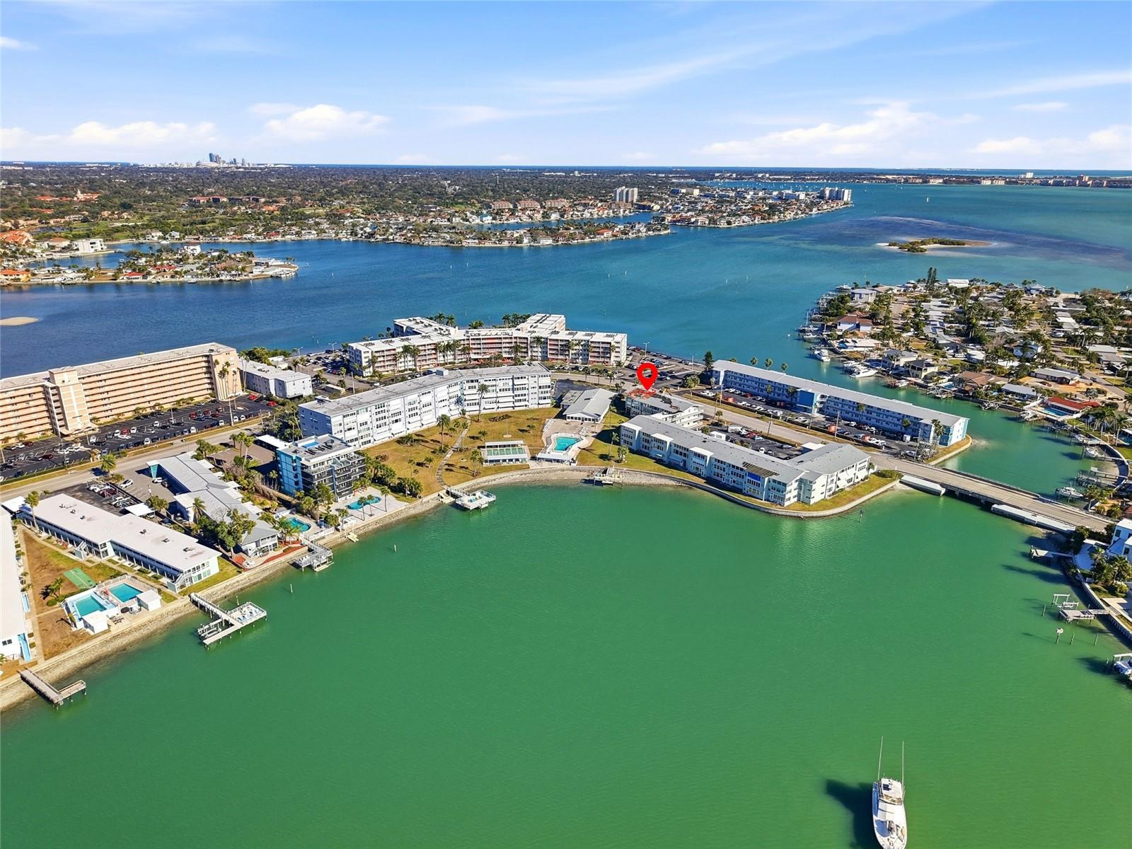Top-floor waterfront living in this beautifully renovated 55+ residence featuring breathtaking water views from all sides. This light-filled condo offers an open, airy layout with newer impact rated hurricane windows and complete renovation. Major updates include plumbing, electrical, and roof, providing peace of mind. The interior showcases coastal inspired finishes, updated tile flooring, designer lighting, and a thoughtfully redesigned kitchen with gas cooking and modern upgrades. Enjoy elevator access and resort-style community amenities including a waterfront pool, shuffelboard courts, a pier to take in the sunsets, fishing, paddleboarding or kayaking along the intracoastal waters. The community also affers a clubhouse and small gym. Ideally located near beaches, downtown St Pete, dining, entertainment, interstate access, and the TampaBay Rays Stadium. Move-in ready and one of the most desirable units within the community.