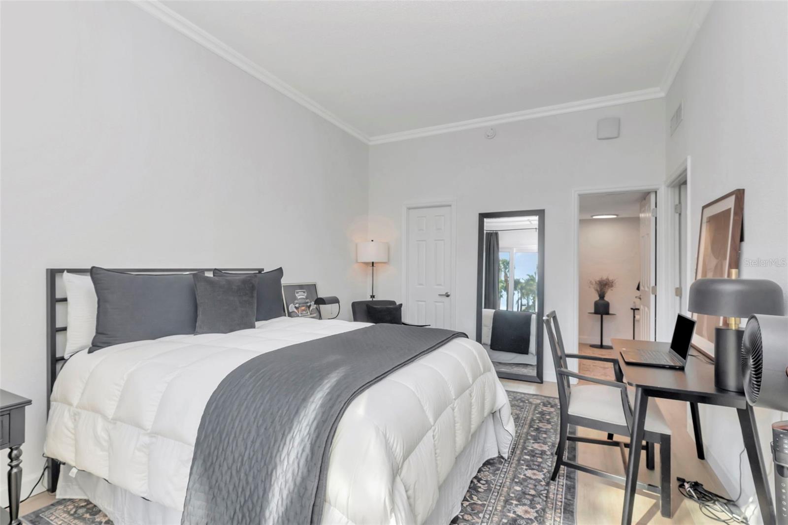 Rare 10-foot ceilings set this beautifully updated two-bedroom, two-bath condo apart from the rest of the Ambassador building at Bay Island — a feature not found on other levels and one that, combined with the extensive upgrades throughout the home, creates a bright, open space with a modern feel rarely found in this community. These distinctive features make this residence stand out among other units currently available in Bay Island. The completely renovated kitchen features white shaker cabinets, crown molding, tray ceiling, recessed lighting, gorgeous quartz countertops, and brand-new matching stainless steel appliances. Both bathrooms have been thoughtfully remodeled with contemporary finishes and clean design. The open layout connects the kitchen, dining, and living areas, creating a comfortable space that works equally well for everyday living or entertaining guests. The home also includes luxury vinyl plank flooring and hurricane-impact windows and doors. A versatile den/office provides valuable additional living space that can easily serve as a home office, den, sitting room, or even a comfortable space to unwind at the end of the day. Filled with natural light, this inviting area adds flexibility to the home and is a feature you won’t find in most condos in the building. Residents of the Ambassador building enjoy access to two shared balconies, offering inviting spaces to relax and take in the waterfront setting and coastal breezes. Bay Island residents enjoy a wide array of resort-style amenities, including multiple swimming pools, tennis courts, a fitness center, clubhouse, marina, and a scenic waterfront walking path. The location places you close to award-winning Gulf beaches, excellent dining options, shopping, medical services, and the entertainment and nightlife of St. Petersburg. The condominium association fee covers almost everything, including 24-hour guarded gate entry, cable and internet, water, sewer, trash, flood insurance, and exterior maintenance, providing a convenient and low-maintenance lifestyle. If you’ve been looking for a move-in-ready condo with unique features and a welcoming waterfront community, this Bay Island residence may be exactly what you’ve been waiting for.