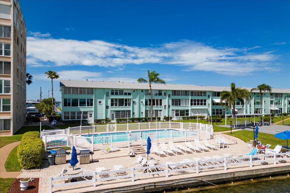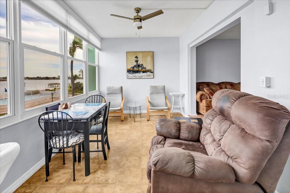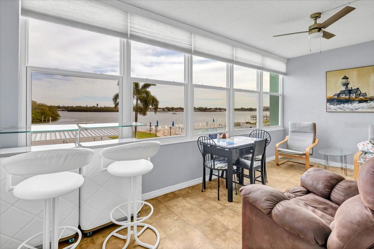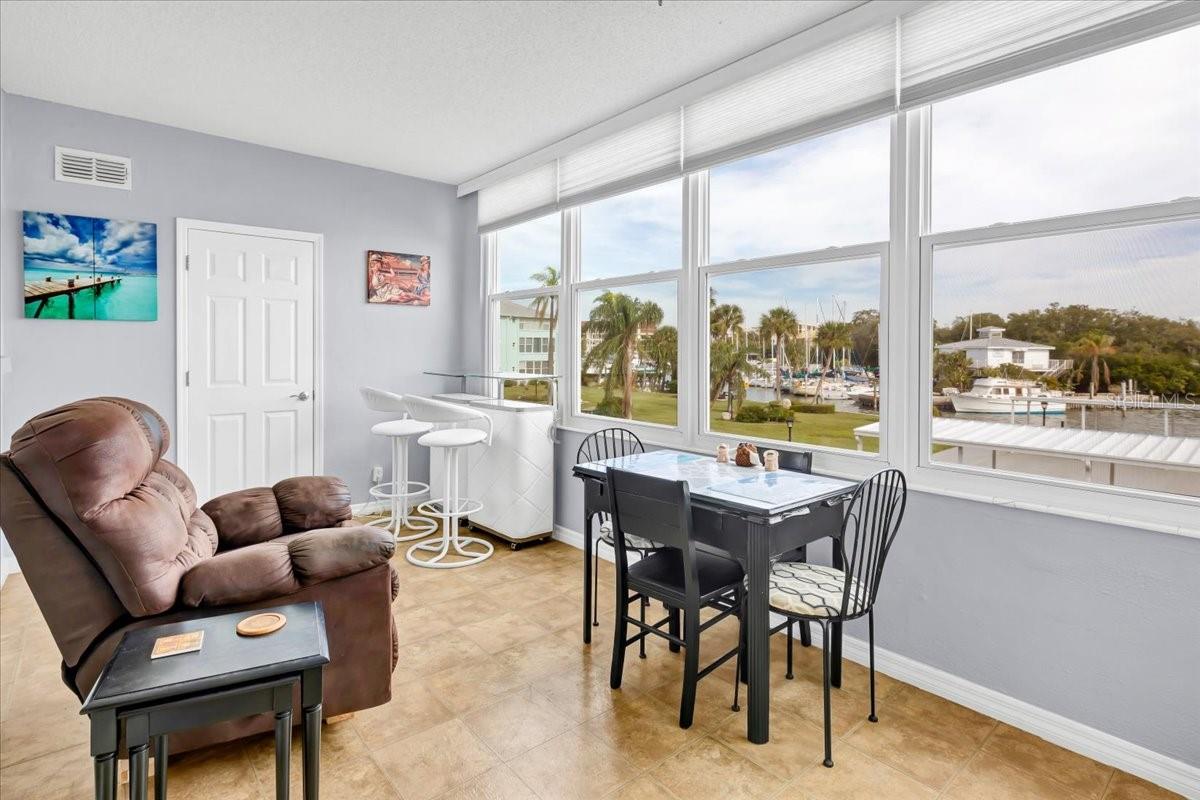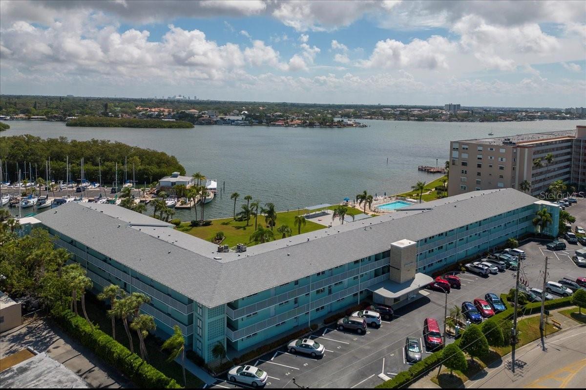 Enjoy waterfront living at Shore View in South Pasadena! This 2nd floor 2 bedroom 1 bath condo unit features an open floor plan with living room/dining area combo that leads to a bright sunroom with beautiful water views of Boca Ciega Bay. Recently new hurricane impact windows, electrical panel (and updated wiring), AC system, kitchen appliances, ceiling fans, bathroom remodel and new interior paint throughout. Shore View is a 55+ well maintained community that was recently renovated with a new roof, rain gutters, railings, exterior paint and some new under-building plumbing. There is a designated parking spot for each unit as well as guest parking, and a laundry room on each floor. The Shore View Association has completed both the Milestone and SIRS Inspections, and the HOA amenities include cable, internet, gas and water, 2 heated pools, and clubhouse with fitness center, pool/ping-pong tables and shuffleboard. Shore View is close to the beach, many restaurants, retail shops and a short drive to vibrant downtown St Pete. Motivated Seller. Make an appointment today!