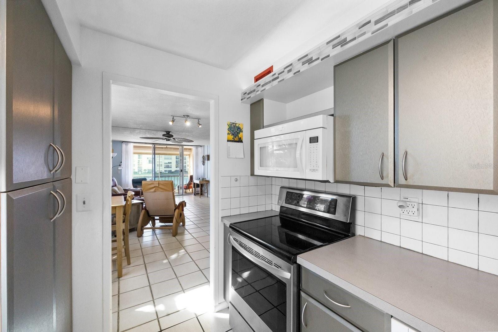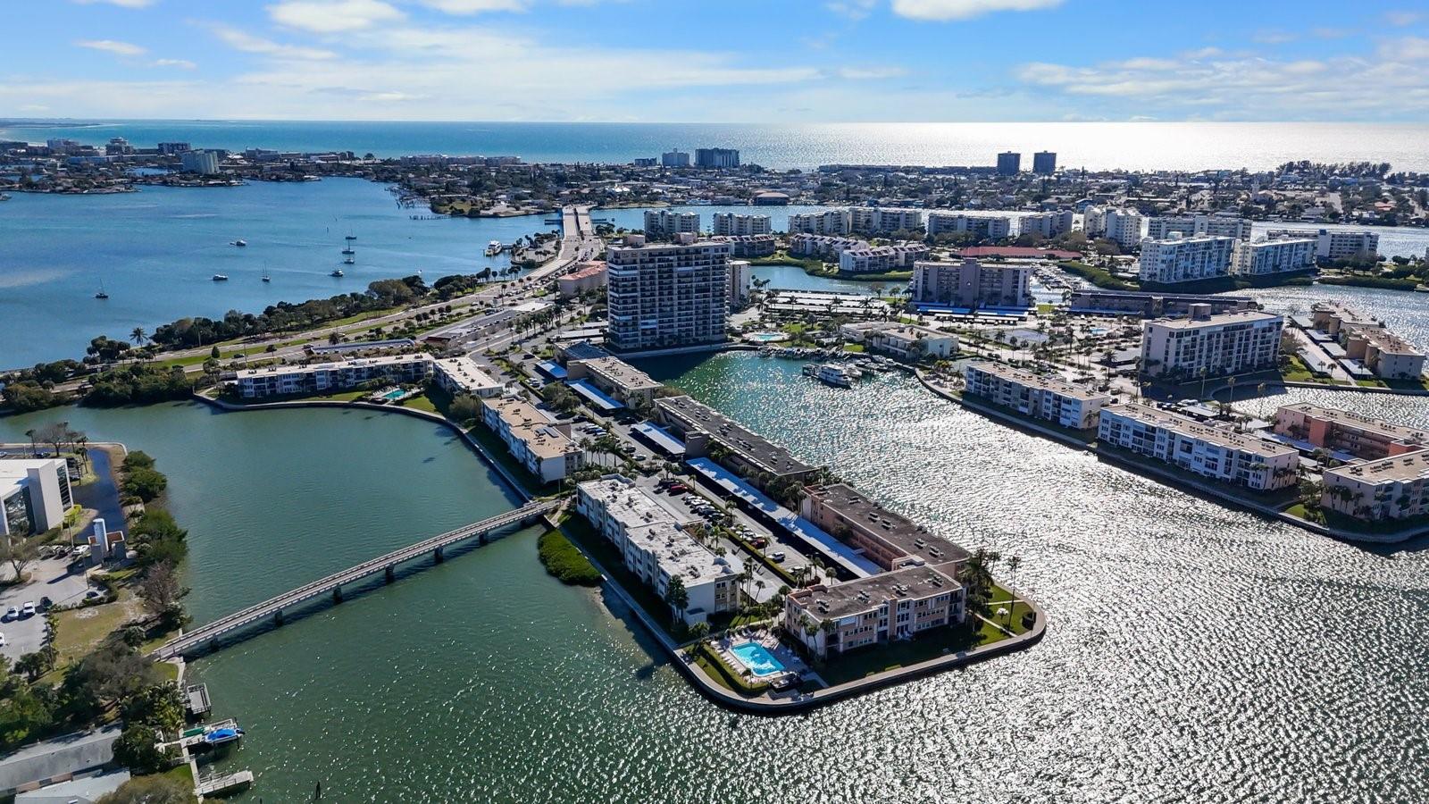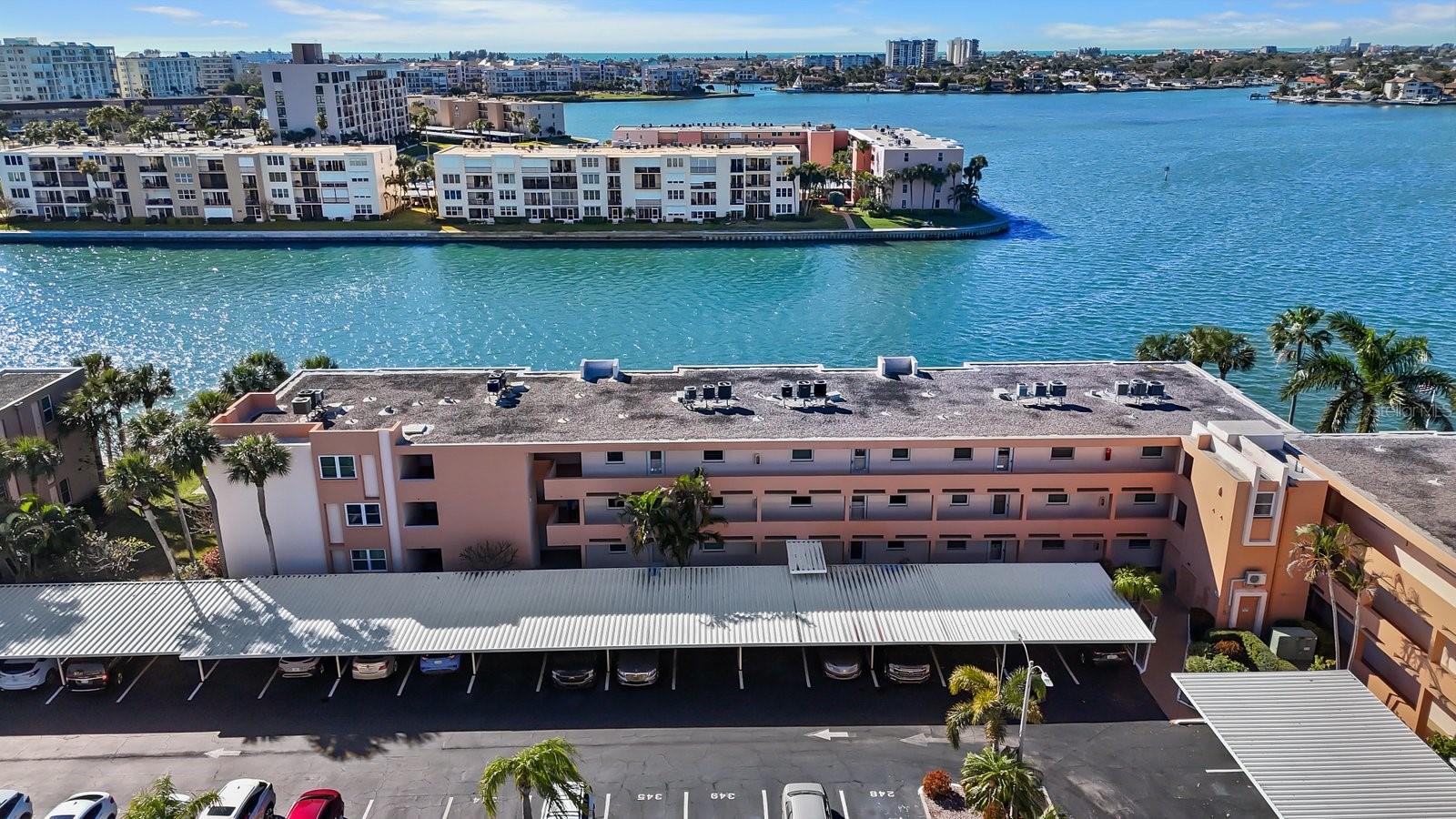 PRICE IMPROVEMENT! NO STORM DAMAGE AND HIGH AND DRY! CORNER UNIT WITH WATER VIEWS! Owners Ready to Sell! Waterfront living awaits you in this 2 bed, 2 bath condo in the beautiful Bay Island 55+ Resort Like Waterfront Community! This corner unit comes with amazing Views! The master bedroom has a walk-in closet, and the master bathroom was updated in 2020 and has a walk-in shower. This condo has In-Unit washer and dryer---only available to End Units. Hi-impact windows installed in 2020, plus exterior Shutter on the Balcony. Breathtaking Views of the Dolphins and Manatees in the water and Sunsets from above from your private Balcony. Included is an assigned carport parking spot with ample guest parking and storage cabinet on 2nd Floor. Yes, there is elevator access in the building. Semi private courtyard with a barbecue area, as well as multiple Lounging areas and Grills located throught the Community. The outstanding amenities available at Bay Island include 24-hour security gate, 6 swimming pools, 2 hot tub spas, a spacious clubhouse, 2 tennis & pickleball Courts, shuffleboard courts, Billiard Room, Ping Pong, Card Room and a 1.6 Mile Walking Path around the perimeter. ROOF ON THIS BUILDING REPLACED JUNE 2024- All Roof expenses Paid by Owner. The MILESTONE Inspection is complete. The HOA fee covers security, cable TV, internet, sewer, trash, water, and much more! 30-Day Rentals Allowed.