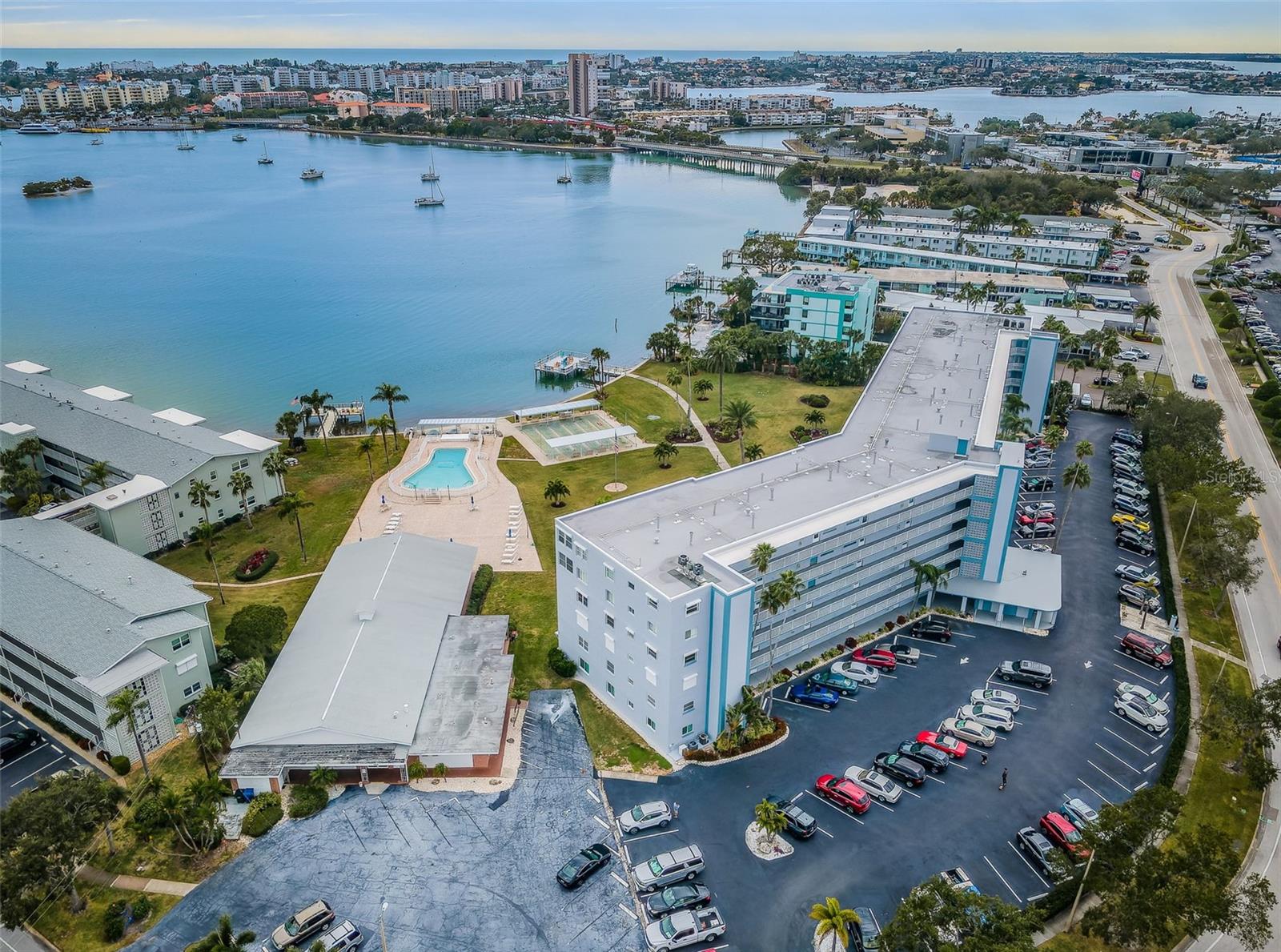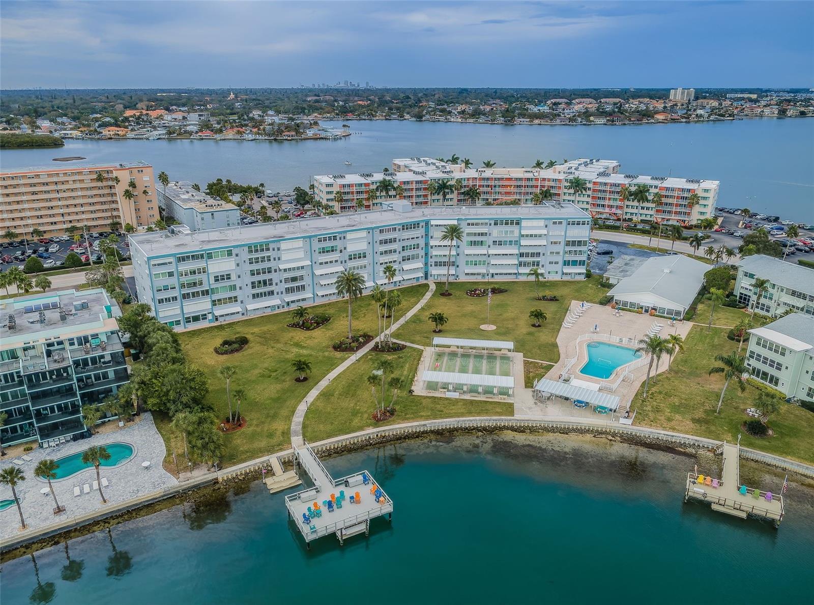Water Views ... EVERY Window .... Awesome Sunsets ....! Welcome to this 2 Bed 2 FULL Bath recently updated with quality and meticulously maintained in the Waterfront Shore Tower Building in South Pasadena. Just a bicycle ride from St Pete Beach. Your tropical paradise offers water views from every window and a peaceful tropical place to call Home.! From the moment you open the front door you know you are Home. The private front door entry leads to a welcoming foyer and expansive open entertaining floorplan with awesome Water Views. The tour begins with a beautifully appointed and oversized kitchen with gorgeous granite countertops, custom cabinets, stainless steel appliances, decorator lighting, abundance of cabinets, a pantry and a breakfast bar....perfect for any Gourmet Chef. The popular and most requested Open floorplan includes spacious dining & living areas with new wood-like plank flooring, and touches of custom decor compliment the home throughout...! The spacious open living and dining areas offers the perfect floorplan is perfect for entertaining and opens to the oversized Floridaroom/Den/Office/Familyroom with Million Dollar Water Views. The updated wall to wall windows guarantee you won't miss a sunrise or sunset over the waters of the Boca Ciega Bay. You can enter the spacious Master Suite from the Floridaroom or the main hallway. Position your master bedroom furniture to enjoy the peaceful and serene Waterviews ...! The Master Suite includes a private ensuite bathroom with glass door shower, updated vanity and decor lighting. is The master suite is large enough for all of your furniture and offers a wall to wall closet. The spacious condo includes a split bedroom floorplan, perfect for over night guests. Watch out .... they may not want to leave. The extra large guest bedroom is privately located at the front of the condo and the end of the hallway and on the other side of the main bathroom. The Guest bedroom is spacious and includes a large closet and Water views...! The main bath offers a tub and shower combination, updated vanity and decor lighting. The list of updates is long; updated AC, updated windows, updated electric service panel. Additional storage room for residents for your Beach chairs and coolers. And a spacious Laundry Center makes it easy to do your chores. The monthly condo fee includes WiFi, Internet, Gas for Cooking, Heating and Hot water, water, sewer and trash. The Community Clubhouse offers activities, a heated waterfront pool overlooking the Bay, shuffleboard, billiard and ping-pong tables, and a fitness room. Shore Towers is conveniently located; minutes to Beaches, Downtown St Petersburg, neighborhood Publix, local shopping, restaurants. Shore Towers is a well-maintained, resort-style 55+ community. Enjoy relaxing and watching the dolphins and manatees play in the Bay, or swim in the heated waterfront Bayfront pool, fish from the pier, enjoy a game of shuffleboard or meet with friends at the clubhouse. There is a waterside patio with BBQ grills, picnic tables. Convenient location near bus / trolley stop, restaurants, shops, medical facility and of course the sandy Beaches. Shore Towers has a newer building water heater, roof, freshly painted, walkways, and newer railings. Milestone was completed and the Reserve Study completed .... No special assessments. Call today for a private viewing or Facetime Realtime Viewing. True Paradise ....!