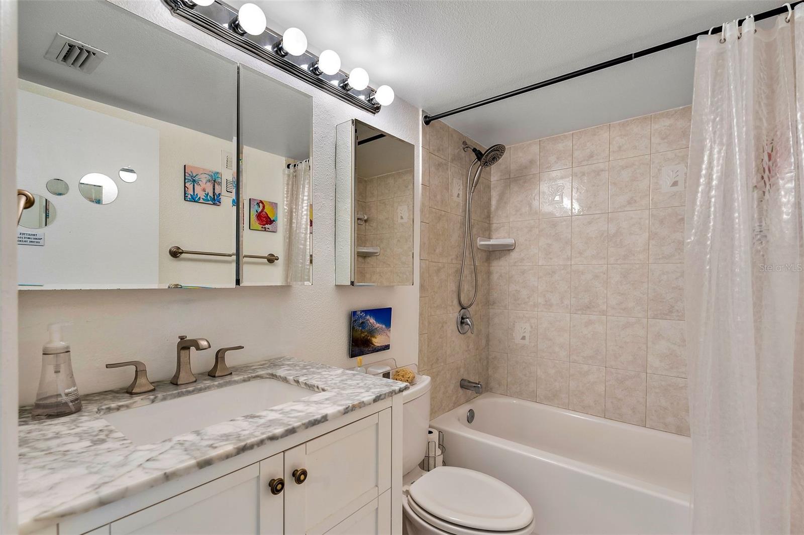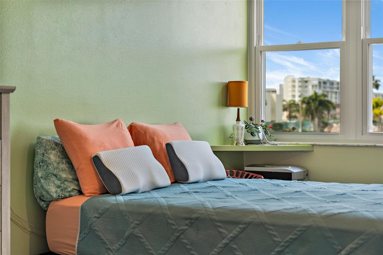 Stunning sunsets from your primary bedroom are yours in this beautifully updated 1/1- 2nd floor condo - twinkling lights from the passing boats at night and dolphins/manatees at play during the day. Upon entry of your new island getaway, you are greeted with an open concept living area, luxury vinyl tile, kitchen with granite countertops, crisp white contemporary cabinets, and sleek stainless appliances. So many updates in the last 2 years: New hurricane impact windows, New HVAC, and refrigerator, just to name a few. The primary bedroom includes two closets, plenty of room for the largest of furniture and a bank of windows for the super water views and natural light. This lovely unit is completely updated throughout with new flooring, designer blinds, and ceiling fans. Storm safety includes hurricane impact windows which will give you peace of mind. Unit Extras - an assigned parking Space #258 and storage closet. Bay Islands is a resort like - gated 55+ waterfront community located in South Pasadena on the shores of Boca Ciega Bay and the Intracoastal Waterway. Amenities are top-notch --- from the 24-hr security, six pools, tennis and pickle ball courts, clubhouse with both male and female gyms, each with a sauna; billiards; ping-pong; card room; library; and community room. There is also a large waterfront BBQ & Tiki Hut picnic area, shuffleboard courts and a 1.5-mile walking path & marina. Just minutes to the #1 Rated Trip Advisor – St. Pete Beach, with its restaurants and shopping on Corey Ave, 15 minutes to vibrant Downtown St. Pete and 40 minutes to St. Pete/Clearwater and Tampa International airports.