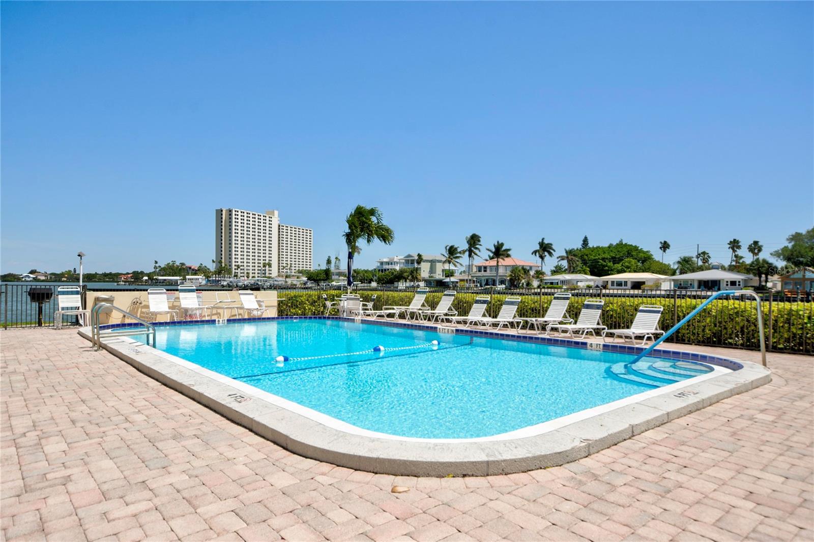 Enjoy beautiful water views from this renovated first floor condo. New luxury vinyl plank flooring throughout. Kitchen with newer wood cabinets, stainless steel appliances and new granite counter tops. Both bathrooms have been updated. Freshly painted interior. Inside laundry. Screened in porch to enjoy the water views and sea breeze. Hurricane shutters for safety during hurricane season. Furniture optional. This is a 55+ complex. The condo is fully furnished. Lots of fringe benefits including, shuffleboard, tennis, pickle ball, fitness center, large clubhouse, billiards and much more. There is a waterfront walking path for enjoying the views and getting exercise while watching the sea life all around the complex. St Pete Beach (Sunset capital of Florida) is just minutes away. Many restaurants, shopping, and grocery stores nearby. Gulf Blvd. has many great shops and beach bars for entertainment. Gulfport is also a short drive for shopping and waterfront restaurants. This area has all the wonderful places close by to enjoy your resort style, Florida living! Bay Island is guard gated, 24 hours for your safety. Come see it to believe it!!