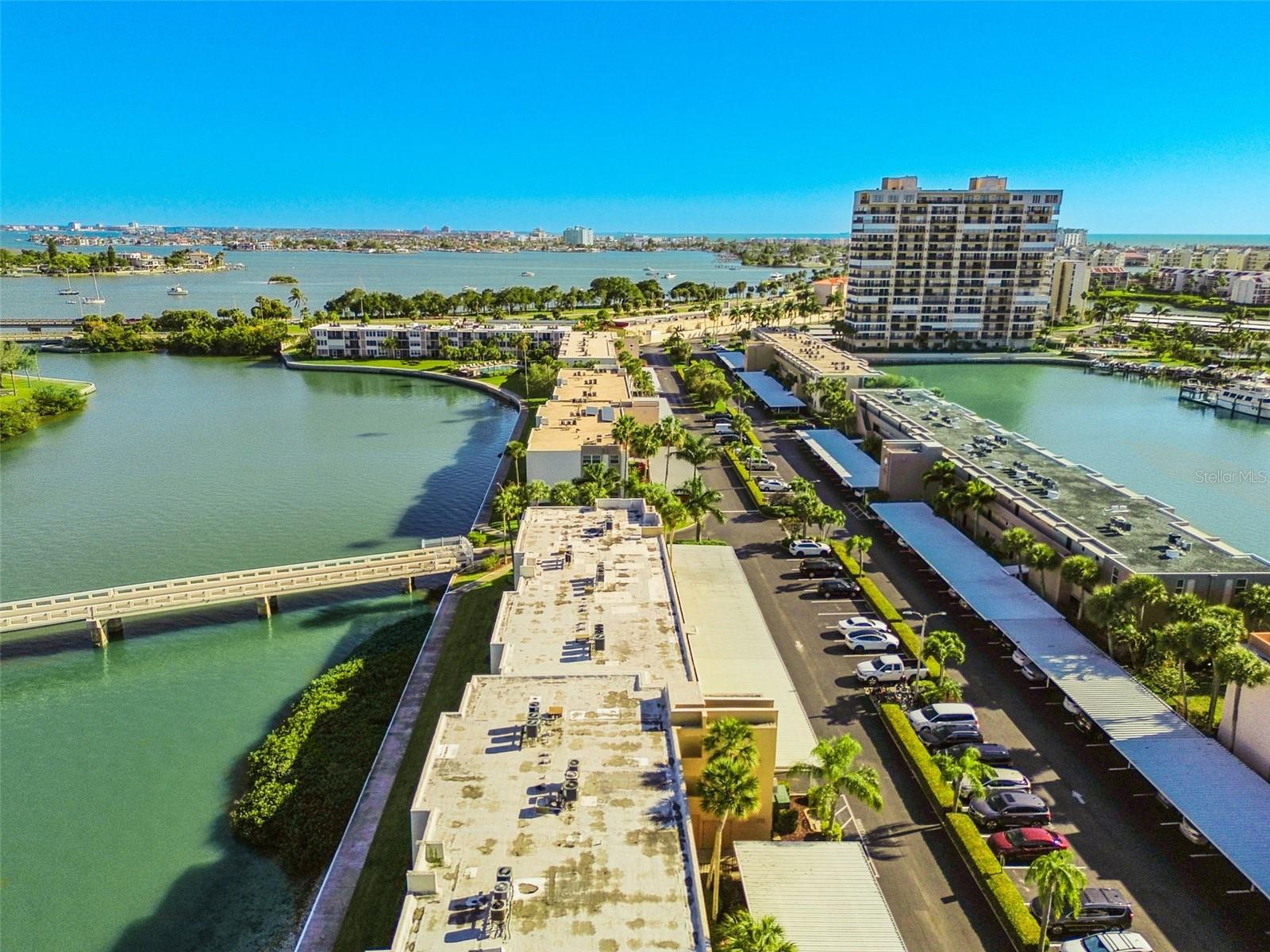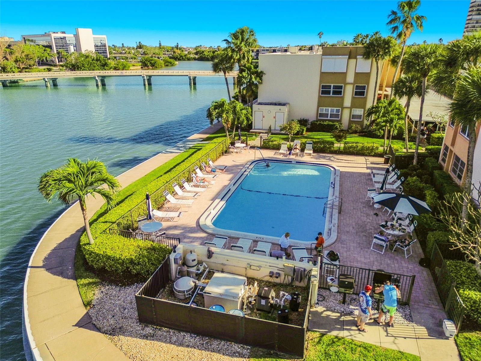 Welcome to your dream waterfront condo in the vibrant 55 and over community of South Pasadena! This stunning 2-bedroom, 2-bathroom unit offers not only panoramic water views but also a lifestyle enriched with social activities and top-notch amenities. As you step into this meticulously maintained condo, you'll be greeted by the serene vistas of Boca Ciega Bay and the Intracoastal Waterway, where sightings of manatees and playful dolphins are a daily delight. Hurricane impact windows ensure both safety and uninterrupted enjoyment of these breathtaking scenes. Embrace the community spirit with a plethora of activities including card games, bingo, and trivia nights. The clubhouse is the hub of social interaction, boasting amenities such as gyms with saunas, billiards, ping-pong, card room, library, and a spacious community room for gatherings. Outdoors, indulge in the Florida lifestyle with six pools, tennis and pickleball courts, shuffleboard courts, and a 1.5-mile walking path winding through lush landscapes. A large waterfront BBQ & Tiki Hut picnic area invites you to savor dining while basking in the coastal breeze. Inside the condo, enjoy modern comforts with upgraded bathrooms and a kitchen featuring granite countertops. The HVAC was replaced in 2021, ensuring efficient climate control year-round. Covered carport parking provides added convenience. With new roofs being installed on all buildings, this condo promises not only an active, convenient lifestyle but also peace of mind in a well-maintained community. Conveniently located just minutes away from the renowned St. Pete Beach and its vibrant Corey Ave with its array of restaurants and shops, this condo offers easy access to all the area has to offer. Downtown St. Pete's cultural attractions are a short 15-minute drive, while St. Pete/Clearwater and Tampa International airports are just 40 minutes away. Don't miss your chance to experience the best of waterfront living in South Pasadena – schedule your viewing today!