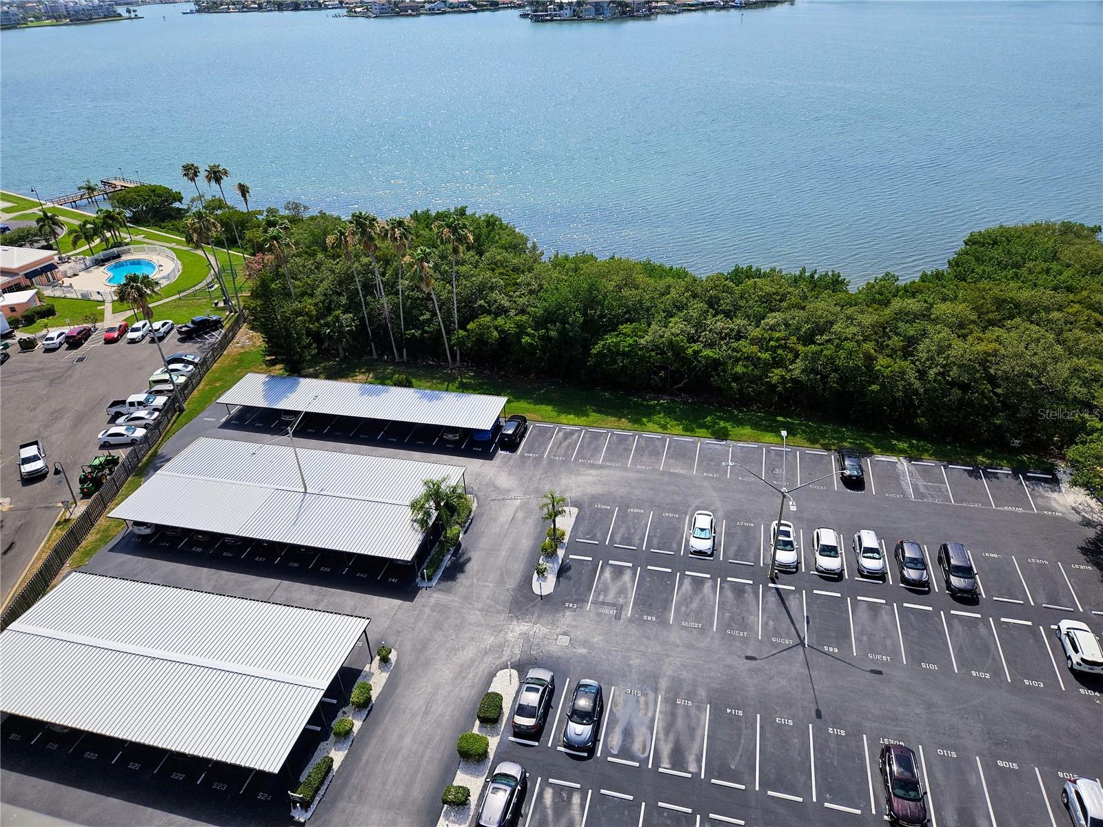 Wow! Don't miss this rare opportunity to purchase this beautiful Top 16th Floor Corner Penthouse in this South Pasadena luxury high rise. This is thought of as the premier unit in this secured lobby complex with its many amenities. Two bedroom, two bath unit features an open floorplan that has been nicely updated with new luxury vinyl flooring throughout, new interior paint, an updated Kitchen and spacious bright rooms. The large Great Room that has an open view to the Kitchen has sliding doors to your private balcony with stunning water views of the Gulf beach, Intracoastal Waterway and the Bay as well as a great view of trendy downtown St Pete. Hurricane Shutters already installed for your protection. The spacious Master Bedroom has an ensuite Bathroom and large walk-in closet. There is a second Guest Bedroom and second Bath. There is a convenient washer/dryer for your own use in the updated Kitchen. The locked lobby entrance offers privacy and security and there is an onsite management office to assist you. Enjoy the many amenities in the complex beginning with the Clubhouse area on the main floor with its event space, game room, fitness area, full Kitchen and both steam and sauna. Step out onto the large sunbathing patio and heated inground pool and spa. The unit comes with a covered carport parking space, and there is a Home Warranty Plan included. HOA Buyer application, interview and approval. Units can be leased after one year ownership on an annual basis. Sorry no pets.