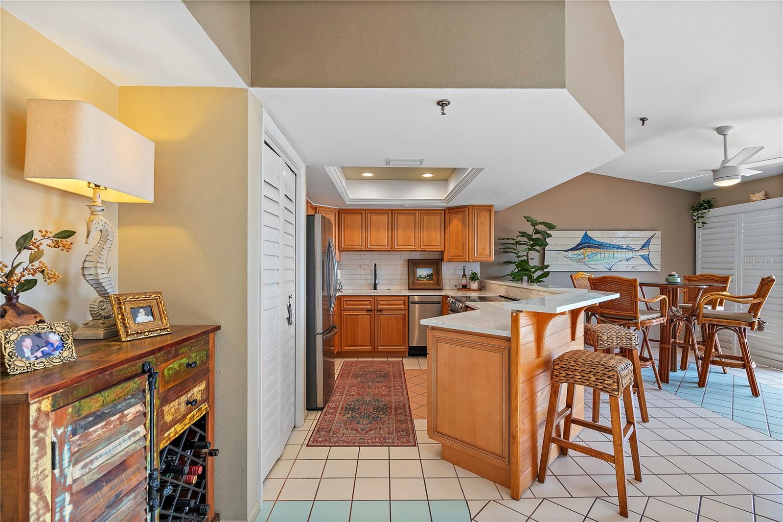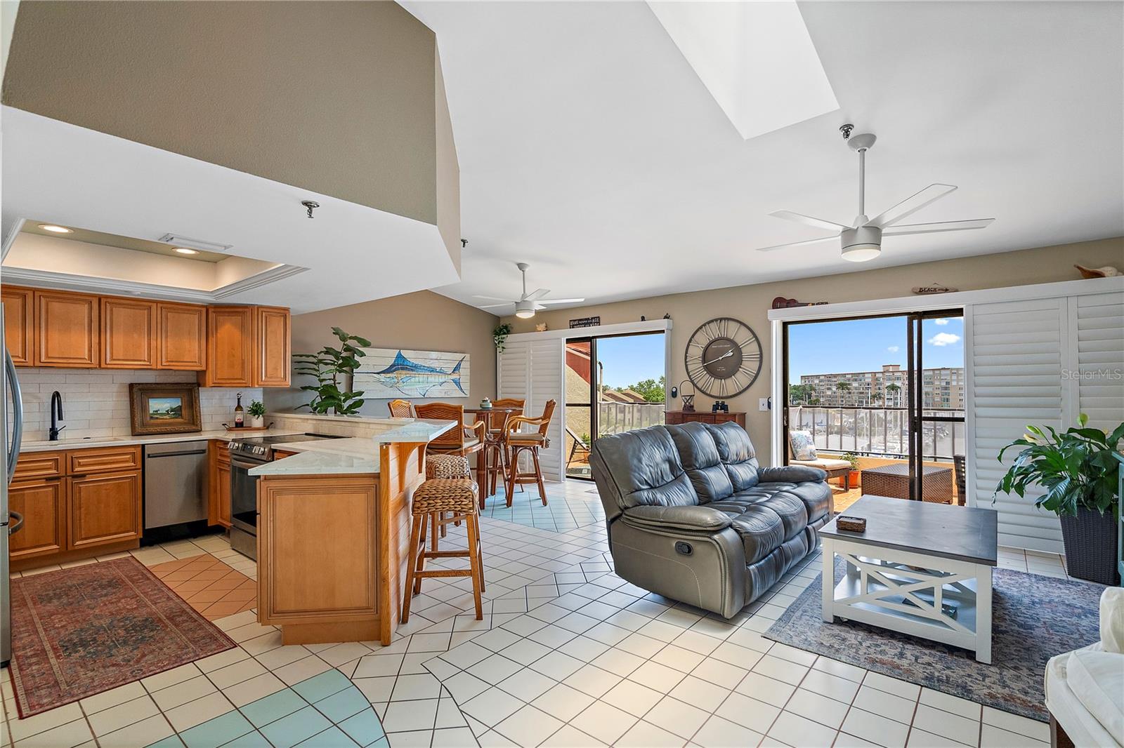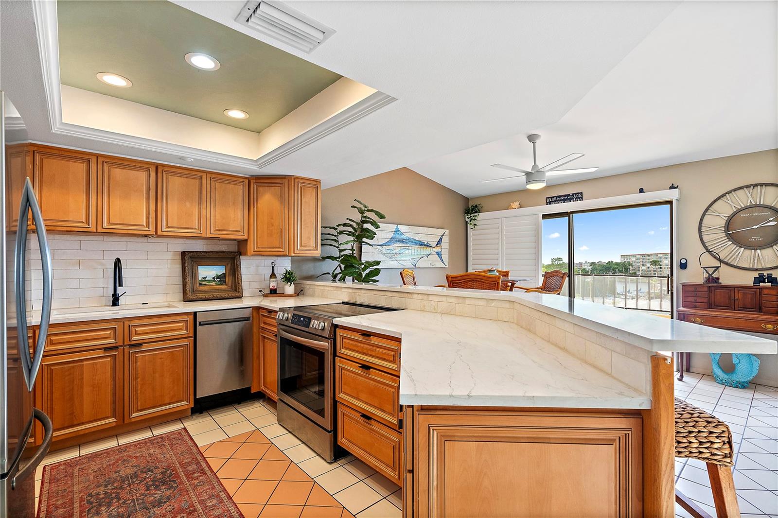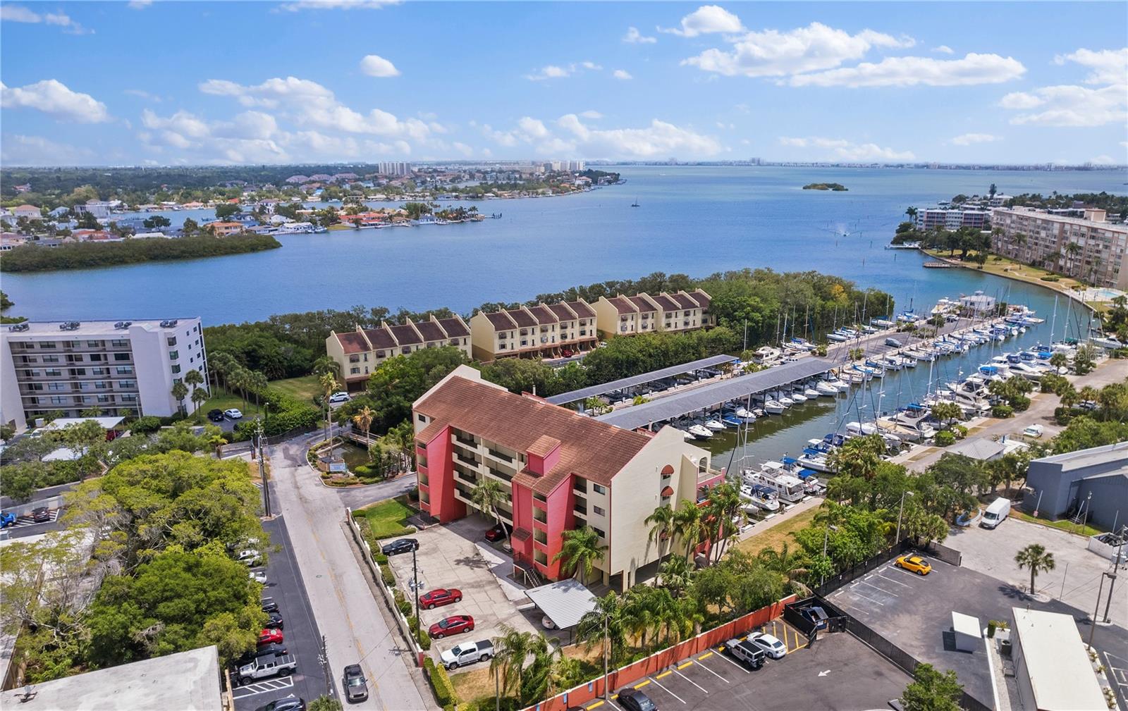Welcome to your dream penthouse overlooking the serene bay water, marina, and vibrant cityscape! This stunning condominium offers a luxurious retreat on the top floor, showcasing endless, glorious views that you will never tire of. Step into elegance with an open floor plan, highlighted by a brand-new kitchen that caters to both functionality and style. Gleaming stainless steel appliances grace the fantastic, tasteful remodel. Natural light floods the living space, accentuated by a captivating skylight that invites the sun's soothing rays into the heart of your home, enhancing the airy feel of the space. Unwind in the comfort of your expansive, private balcony, complete with a retractable cover for year-round enjoyment of the breathtaking views. Beautified with California shutters, the sliders seamlessly connect indoor and outdoor living. You'll find the perfect setting for relaxation or entertaining guests against the backdrop of the tranquil bay waters. The handsome bedroom comes with an en-suite bathroom and a fabulous walk-in closet. Located right off the hallway, there is a half bath, the walls adorned with tropical wallpaper that adds a touch of personality and fun to this exquisite abode. Every detail has been carefully curated to elevate your living experience, from the new paint inside to the fresh fans that circulate the coastal breeze throughout. Convenience meets luxury with underbuilding covered parking, ensuring your vehicle stays protected from the elements. Embrace the sense of community with exclusive access to the clubhouse that offers his and hers saune and a well-stocked kitchen and pool, offering the perfect space to socialize or host gatherings with friends and neighbors. Kayak storage and launch onsite to explore the magnificent waterways with your own personal vessel. Experience waterfront living at its finest in this meticulously crafted, pet-friendly condominium, where every moment is enhanced by the beauty of your surroundings. Boaters: Dock slips are available for rent steps from your front door at the Pasadena Marina.