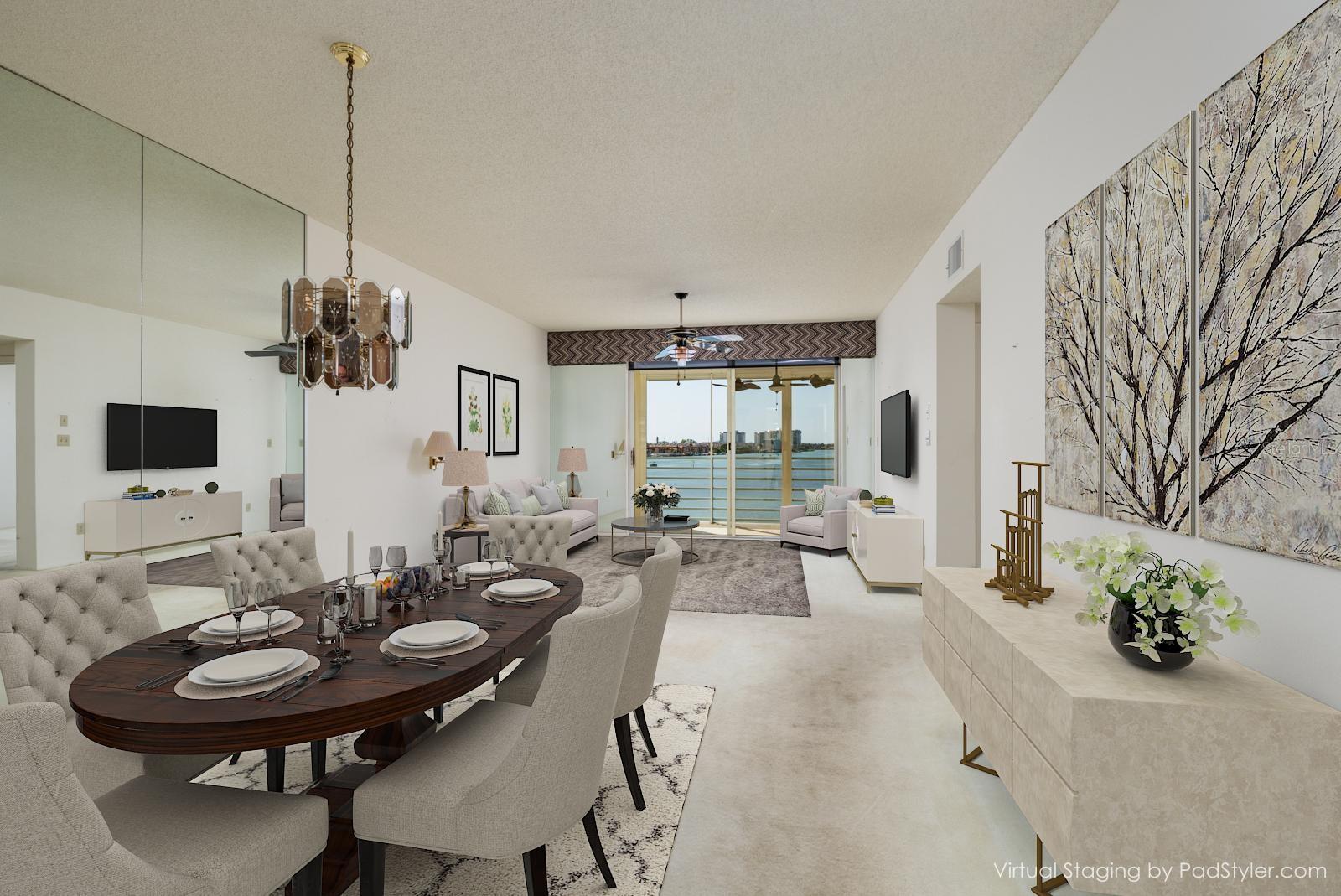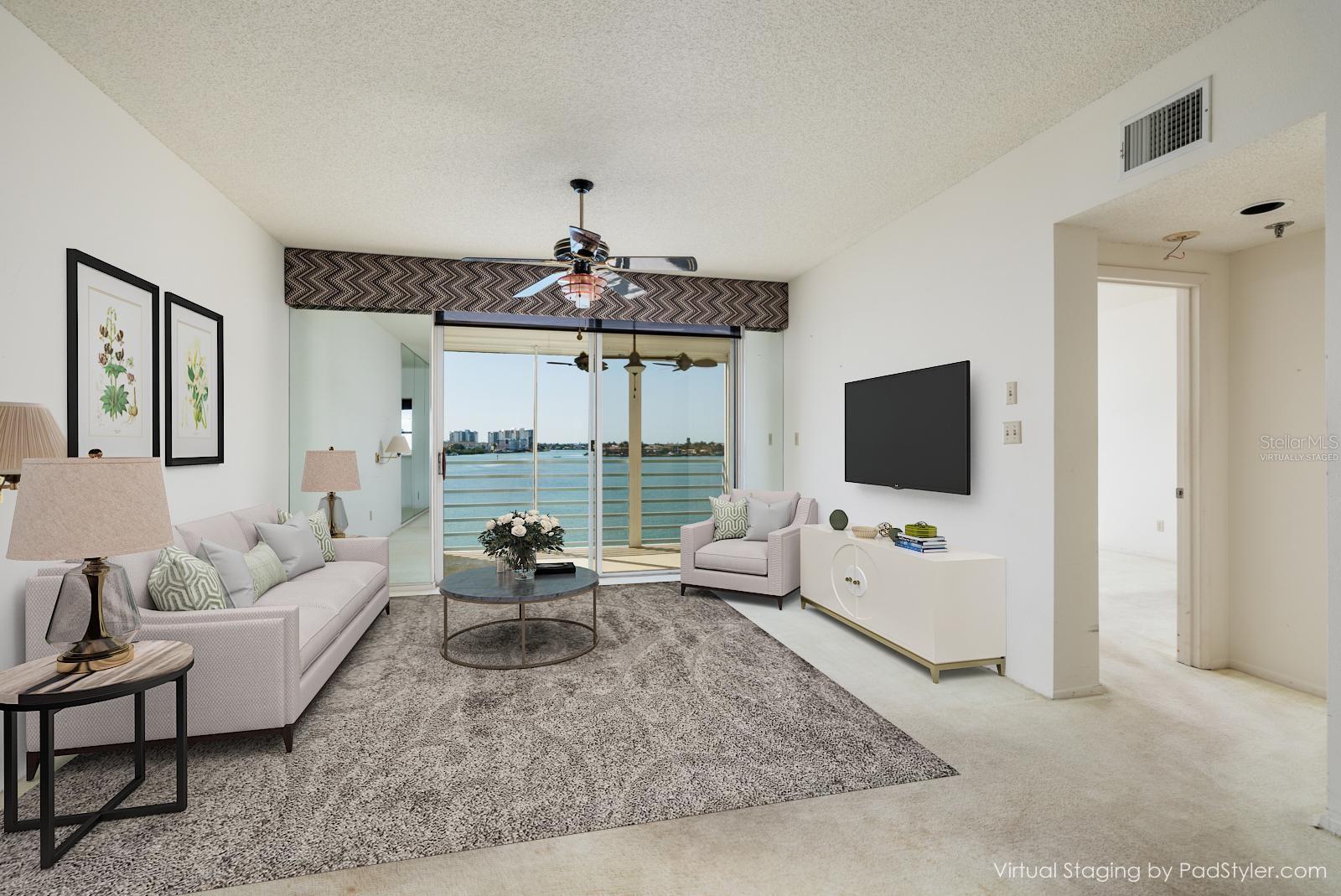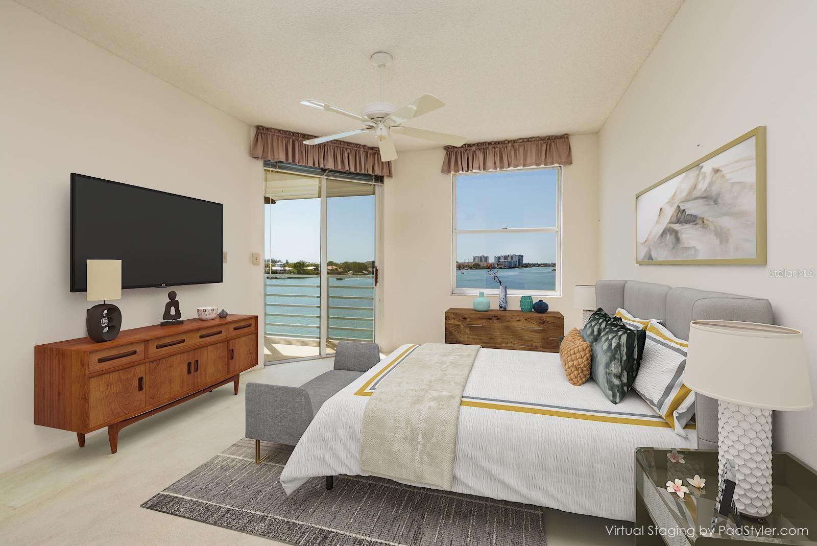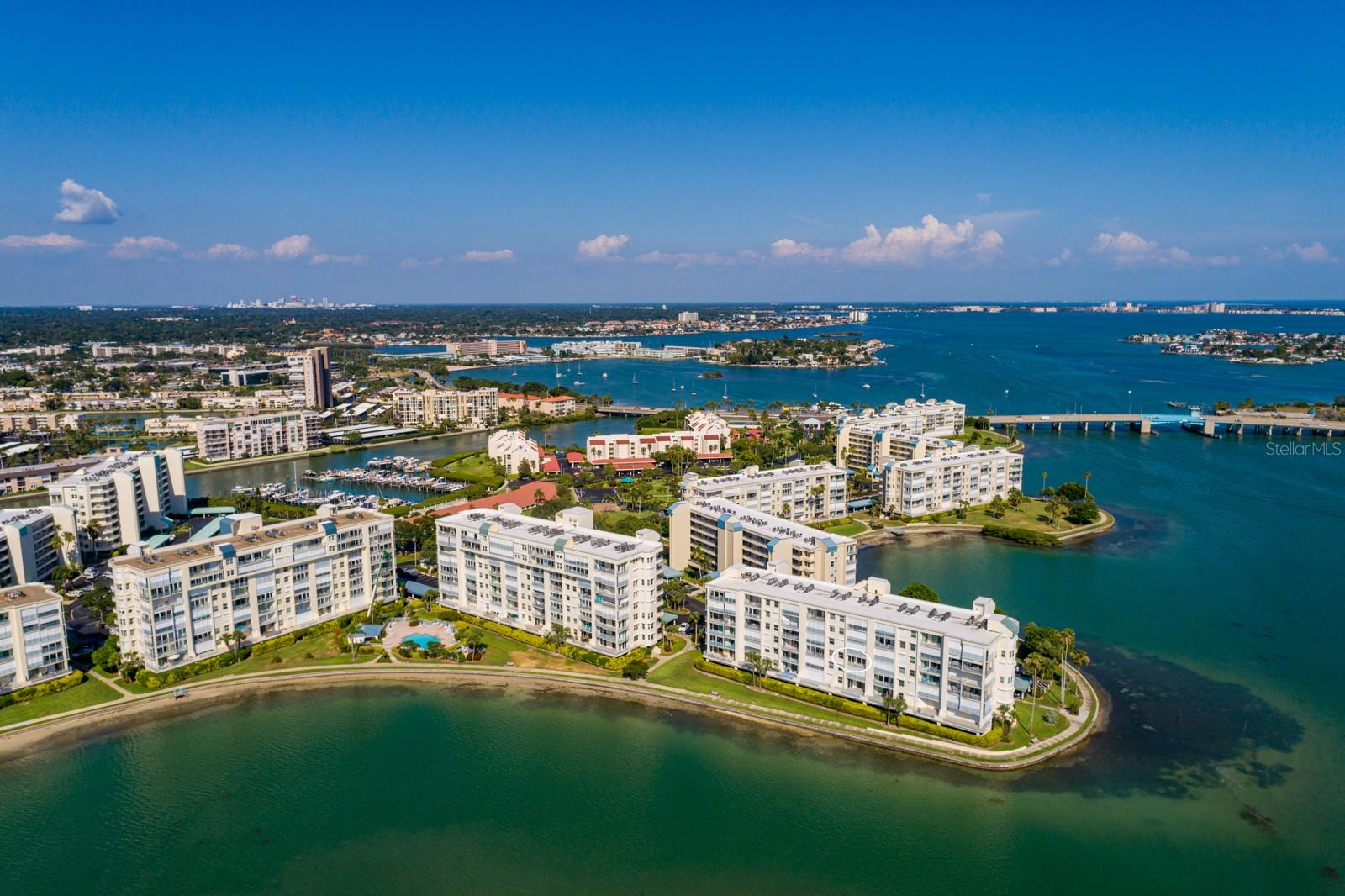 One or more photo(s) has been virtually staged. Experience sweeping north and south panoramic water views of the Intracoastal Waterway from both the front and back of this condo, plus its main living area, master bedroom and balcony of this 1BR, 2BA condo in the sought-after community of HarbourSide. You will enjoy gorgeous sunsets 365 days a year. The fabulous Intracoastal Waterway is right off your balcony filled with dolphins, manatees, pelicans and other marine life. An evening sunset, a glass of wine and you have arrived in paradise. This 980 sq. ft., 3rd-floor unit with 9 foot ceilings offers the location--you have the taste to make it exceptional. Why pay more for the design choices of another, when you can purchase this beautifully located unit and finish it to your own liking. Included are hurricane shutters, 2019 HVAC and 2019 water heater. Best of all the Windwards Association has passed the Milestone Inspection. No assessments pending or planned. It all comes down to location, location, location, and 7922 Sailboat Key #304 has the ultimate location. There is interior storage off the balcony and exterior storage near the 3rd floor elevator. This condo includes an assigned covered parking space #45 and additional guest parking in the front of the building. HarbourSide buildings are constructed of solid steel reinforced concrete which makes the units very quiet and the structure very strong. HarbourSide is a pet friendly, 24 hour guard-gated private island community with fabulous amenities including beautifully landscaped grounds, a marina with 87 deeded slips, kayak storage, 5 tennis courts with pickle ball, 6 pools, shuffleboard, saunas and a hot tub, a 1.5 mile waterside walking path, his/hers fitness centers, a country club style clubhouse with an active social agenda, 3 car wash stations with vacuum and air, electric charging stations, a short bike ride to the beach and much more. HarbourSide is close to shopping, dining, medical facilities, entertainment venues, the revitalized downtown St Petersburg, world class Gulf beaches, major sport venues, international airports and last but not least – Disney World. Close to everything, yet a world away! This is resort style living at its finest!! HarbourSide is not an age-restricted community.
