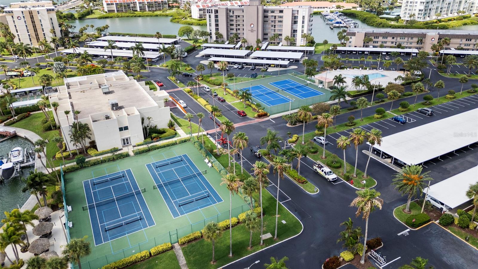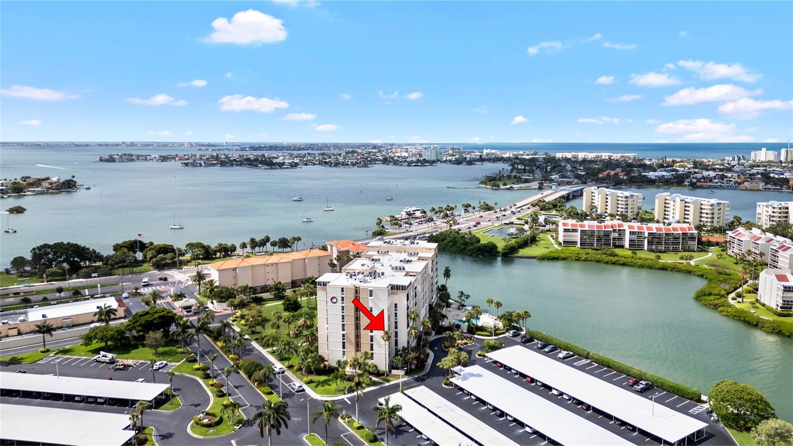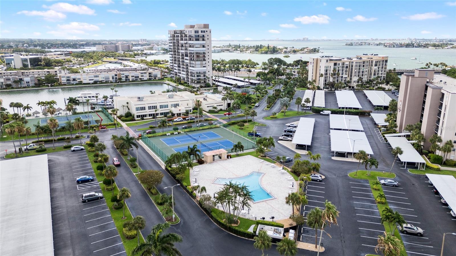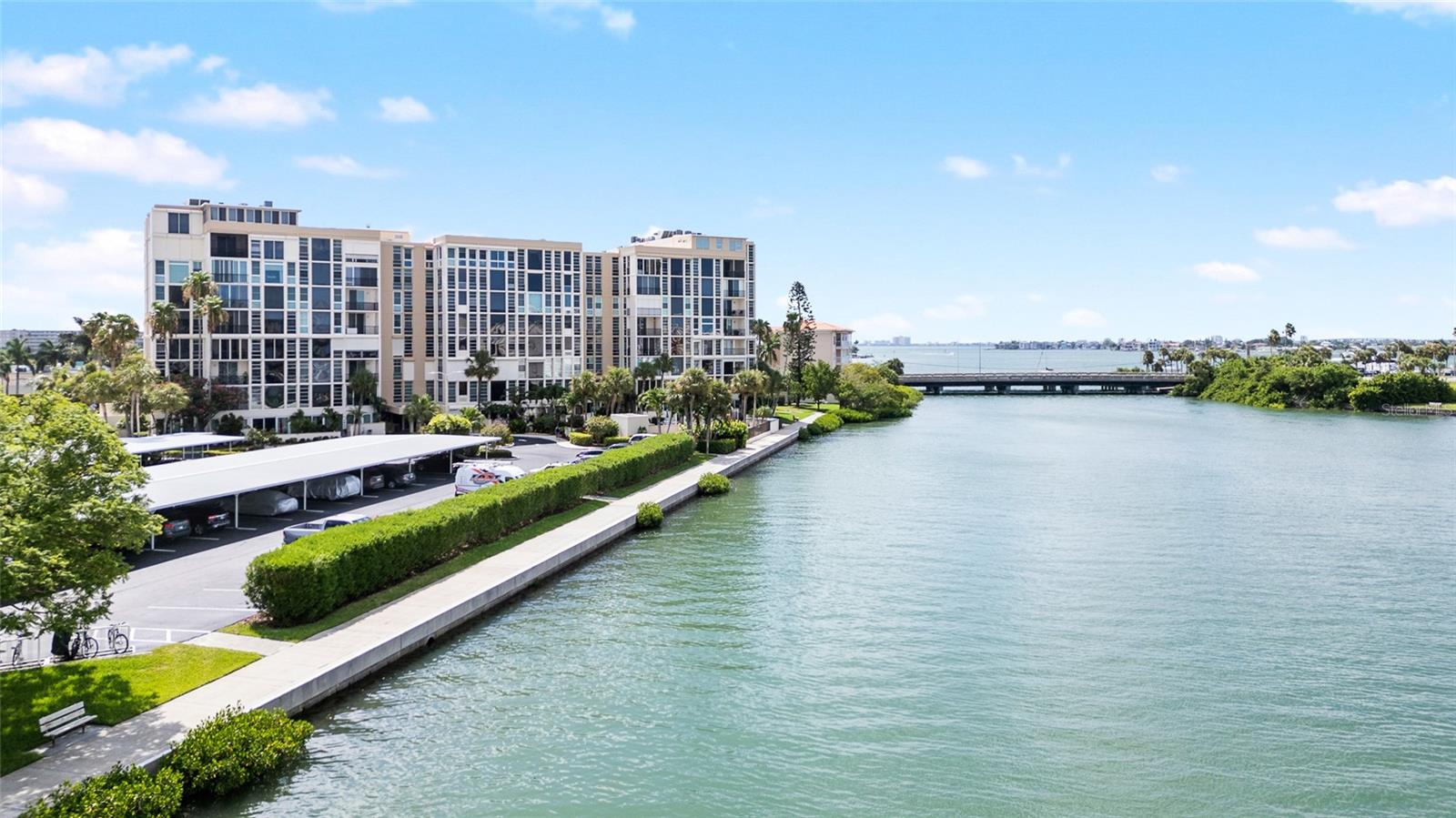 Sun Island community is a haven of peace. At the same time it is close to St Pete beach action, restaurants, etc. Meticulous grounds. 6 pools. 4 tennis courts. 2 pickel ball courts. 2 gyms. Multiple BBQs. Potential slip at Sun Island marina. Recreation center with pool tables, card room, library, great hall available for special events. Admin office. Gated. Constant security. Night patrol. Closeness to local hospital. This freshly painted condo home features a screened balcony with breathtaking views of the intracoastal waterway, boat marina, swaying palm trees, blooming flowers, and mesmerizing singing birds. The corner unit boasts an abundance of windows, a storage locker conveniently located on the same floor, and a covered parking spot. Enhanced with electric hurricane shutters and an in-unit washer and dryer, this meticulously designed 2-bed, 2-bath retreat spans 1300 sq.ft. The spacious layout includes floor-to-ceiling windows in the living room, framing captivating scenes. The open kitchen is perfect for culinary enthusiasts. The master suite offers panoramic vistas, an ensuite shower, and a generous walk-in closet. This condo, awaiting the right person to update or remodel to their own desires, is offered at an unbeatable price for its prime location. Nestled within the esteemed Bay Island 55+ community, residents can indulge in resort-style amenities and easy access to St. Pete Beach. Whether exploring nearby attractions or enjoying the community's wealth of facilities, from pools and tennis courts to a gym and organized activities, luxury living awaits in this exceptional condo!