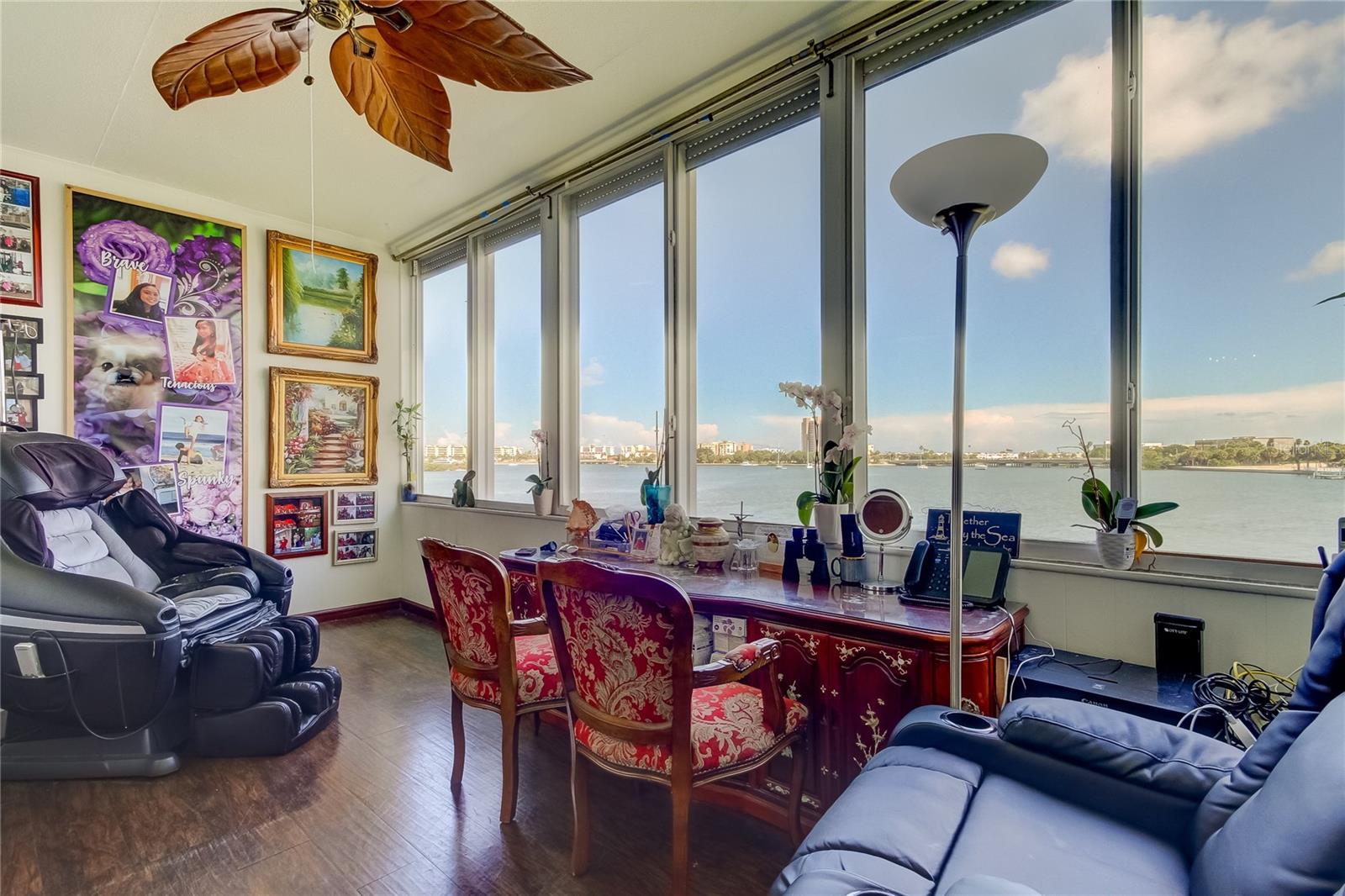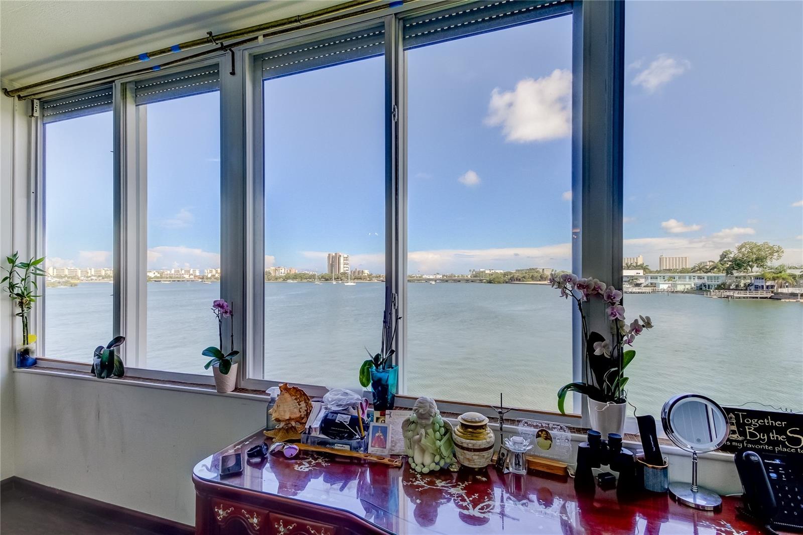 Discover your slice of paradise in this 2 bedroom, 2 bath condo with breathtaking views of Boca Ciega Bay. The view never gets old here, watch manatee at play, boaters go by and feel the breeze off the bay. You will be delighted to cook and entertain in your updated kitchen with sleek backsplash, stainless steel appliances, granite counters, gas cooking, wine fridge and plenty of prep room for those family dinners. Easy care laminate flooring throughout the living area. The spacious bedrooms have ample natural light and will fit the largest of furniture, plenty of room for a desk or seating area. Both baths have been updated and the owner’s suite features a walk in shower, large vanity, and a bank of closets, plenty of storage here! Electric Hurricane shutters provide storm protection. This well-maintained 55+ community has many amenities including waterfront heated pools, inviting patio with grills for waterside dining, a pier for fishing or just relaxing with family and friends, shuffleboard courts, a clubhouse for gathering and a fitness center. The monthly fee includes Cable, Internet, Water, Sewer, Trash, and even Gas for cooking, hot water, and heat. Perfectly suitable for a full-time home or a vacation home, do not miss your chance on this one! This convenient community is minutes from eclectic Gulfport. No Car needed here - try the new SunRunner from “the Beach to the Burg”. Experience the Florida Lifestyle at the Beach or downtown St Petersburg with its dining, vibrant waterfront scene and the new Pier. Easy access to Tampa International and St. Pete Clearwater airport. Laundry is located on each floor. Parking Spot #55. Sorry, no pets and no leasing permitted.