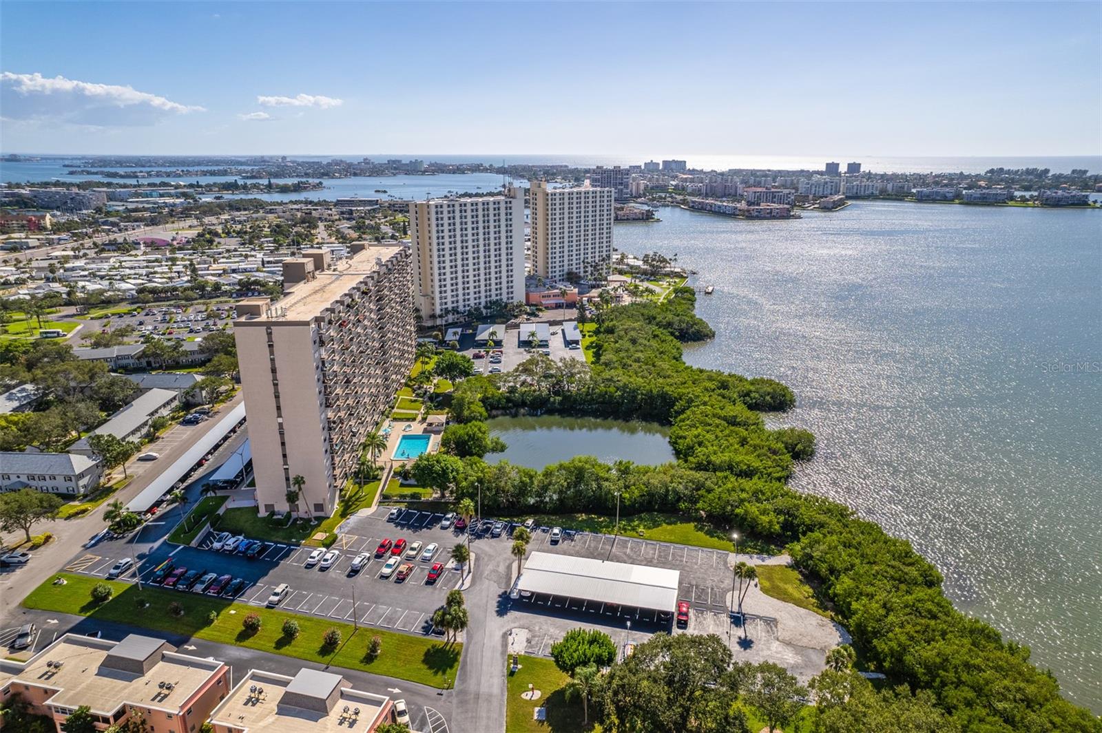 EASY TO SHOW, Breathtaking Condo in Château Towers. Welcome to your dream home! This inviting one-bedroom, one and a half-bath condo on the eighth floor of the prestigious Château Towers offers unmatched views and an unbeatable location. From the balcony you can see from Madeira Beach to the Don Cesar in St Pete Beach. Enjoy the view from the kitchen window of the Sunshine Skyway Bridge and the Tropicana Field downtown St Petersburg. Boca Ciega Bay and a view of the Gulf of Mexico right outside your window in from west-facing balcony, perfect for savoring sunsets every evening. This bright and open condo features laminate flooring throughout, complemented by a spacious kitchen with a breakfast bar. The generous bedroom boasts a large walk-in closet and an en-suite bathroom with a walk-in shower. For added convenience, this unit includes in-unit laundry. Château Towers welcomes residents of all ages, and with the milestone inspection completed and no assessments needed, you can move in worry-free. Located in South Pasadena, you're just a short walk to Publix and a quick drive to the beautiful beaches of St. Pete Beach and Treasure Island. Enjoy easy access to dining, unique shops, hospitals, and entertainment options. The condo comes with a reserved parking spot and offers fantastic amenities, including a workout room, sauna, pool with barbecue area, canoe/kayak rack, bike rack, and a large community room for parties. Don’t miss this incredible opportunity to live in a prime location with all the comforts and conveniences you could desire. Welcome to your new home at Château Towers!