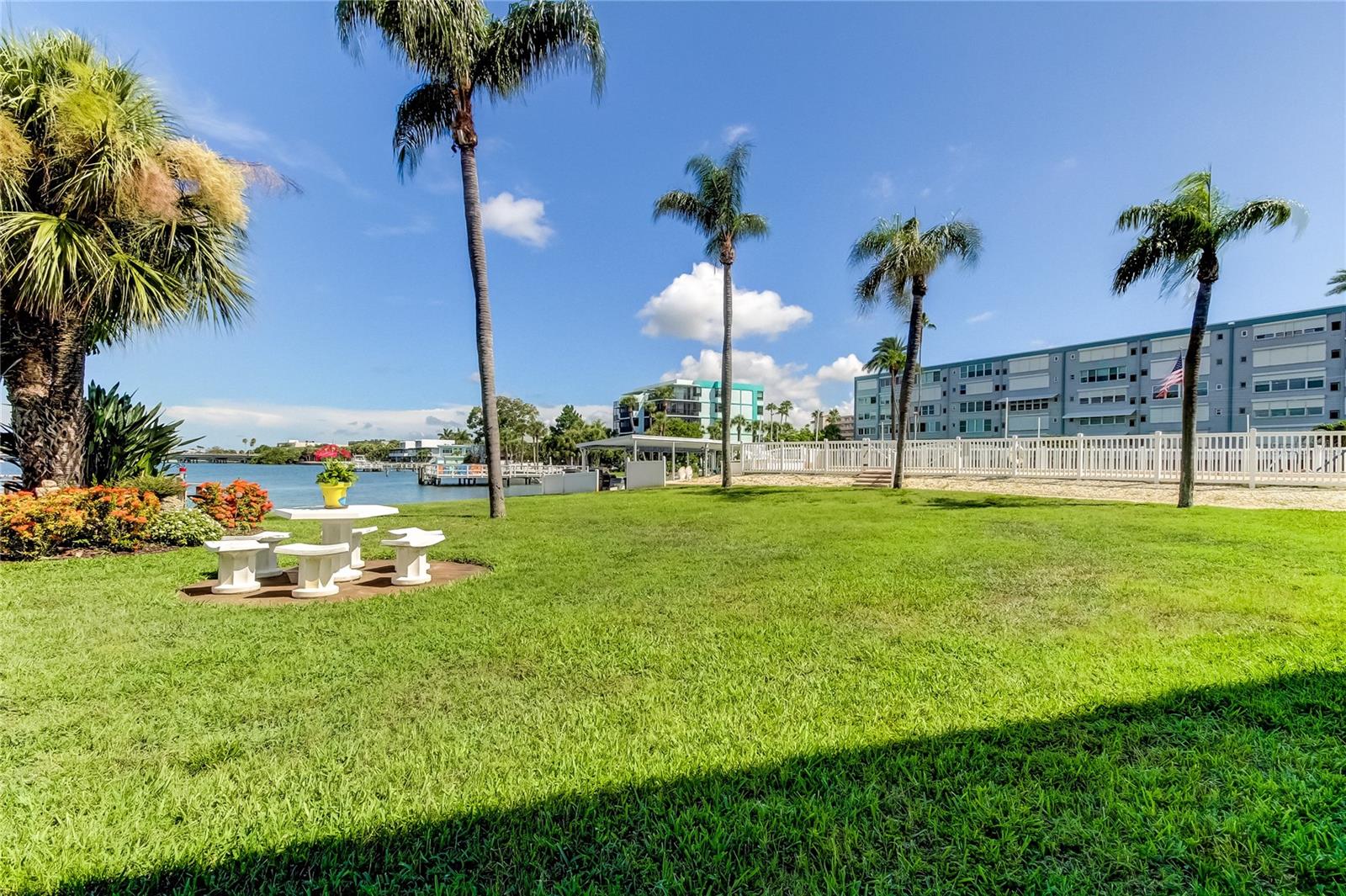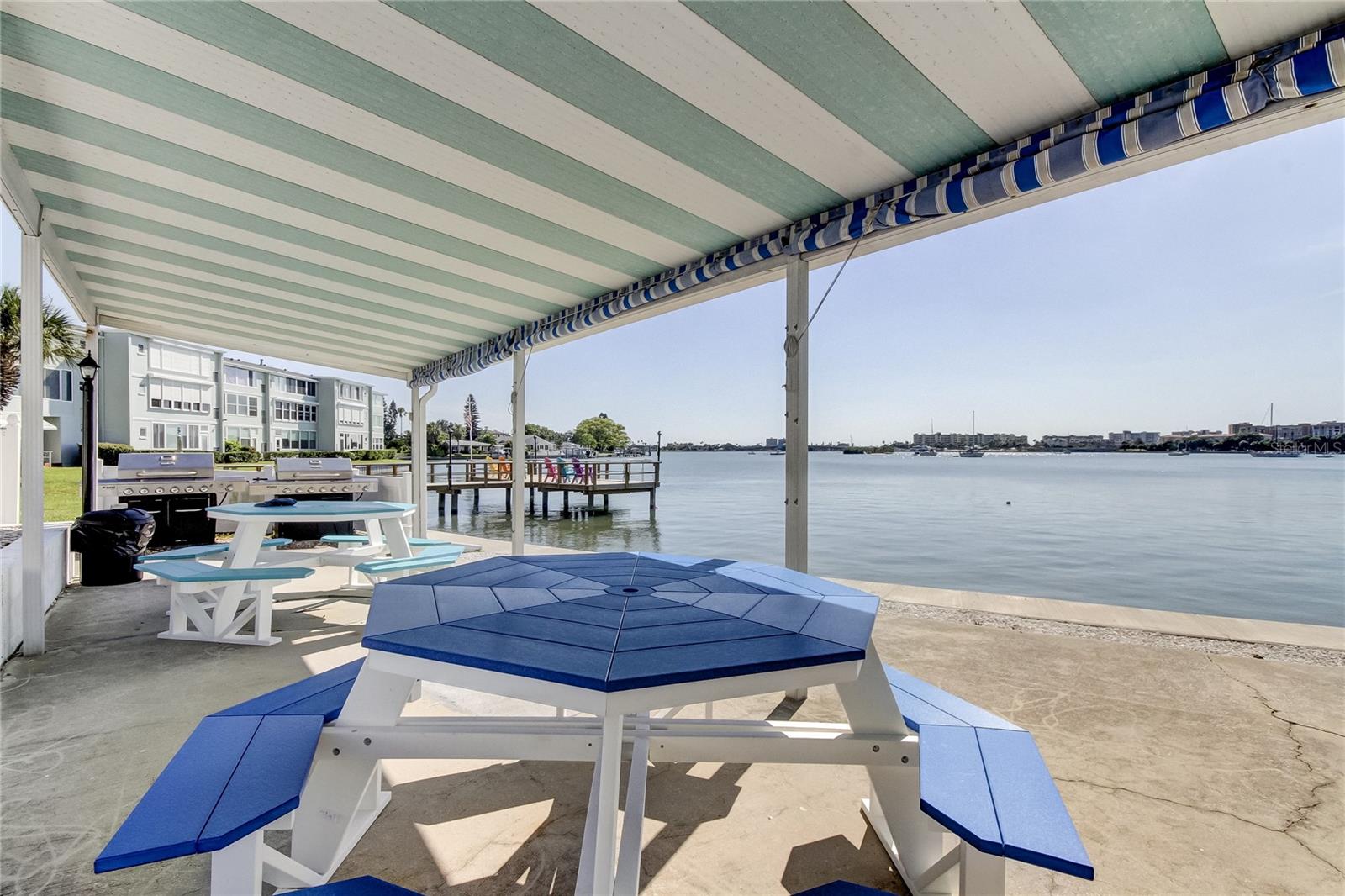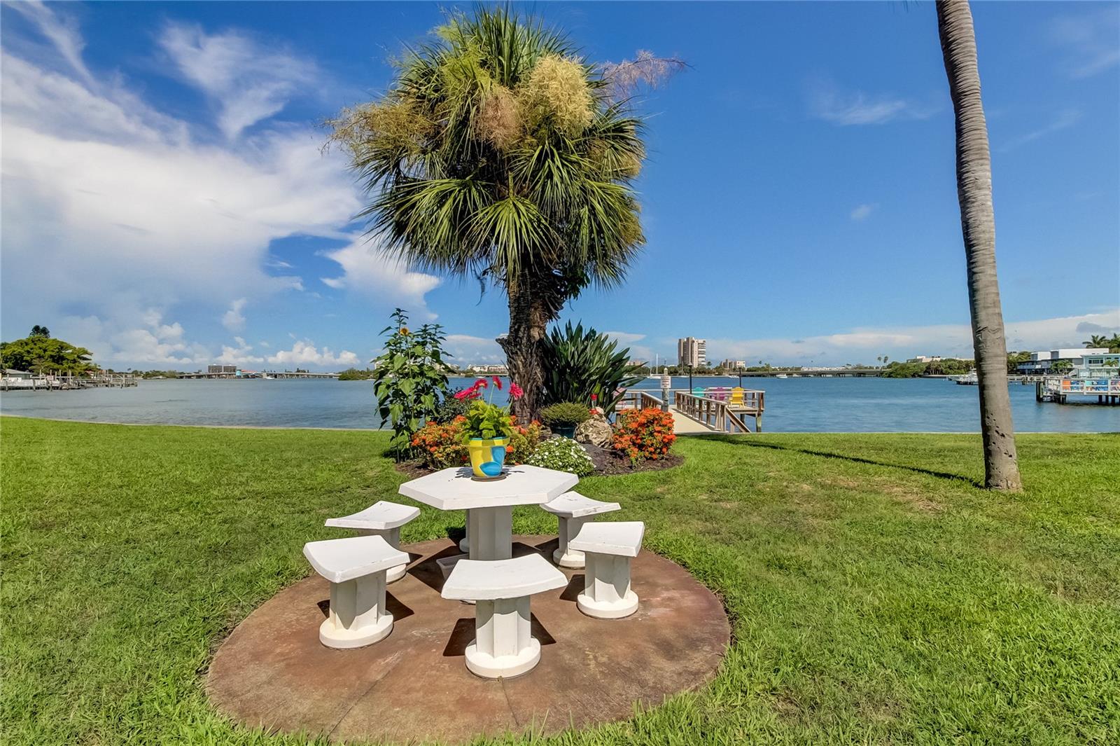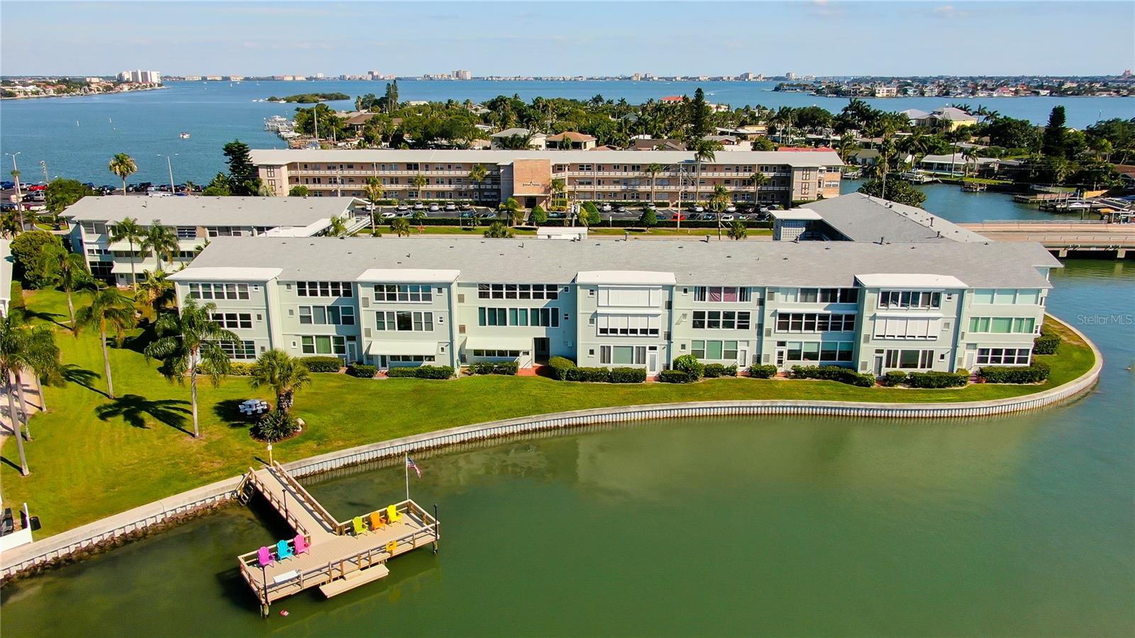 Welcome home to this 1st Floor, walkout - 2 bedroom, 2 bath condo with beautiful views of Boca Ciega Bay. This spacious end unit has large windows providing for lovely natural light. You will be pleased with the renovated kitchen featuring stainless steel appliances, granite counters, gas cooking, plenty of cabinetry and a bonus large pantry. Easy clean laminate flooring throughout the living area and Florida room. The sizable bedrooms fit king beds easily with room to spare for an at home office or reading nook. The owner’s suite has an updated bath, with walk in shower, new vanity, and sleek tile. With a newer HVAC and windows, what more could you ask for? This well-maintained 55+ community has many amenities including waterfront heated pools, inviting patio with grills for waterside dining, a pier for fishing or just relaxing with family and friends, shuffleboard courts, a clubhouse for gathering and a fitness center. The monthly fee includes Cable, Internet, Water, Sewer, Trash, and even Gas for cooking, hot water, and heat. No Car needed here - try the new SunRunner from “the Beach to the Burg.” Experience the Florida Lifestyle at the Beach or downtown St Petersburg with its dining, vibrant waterfront scene and the new Pier. Easy access to Tampa International and St. Pete Clearwater airport. Laundry is located on each floor. Parking Spot #18. Sorry, no pets and no leasing permitted.