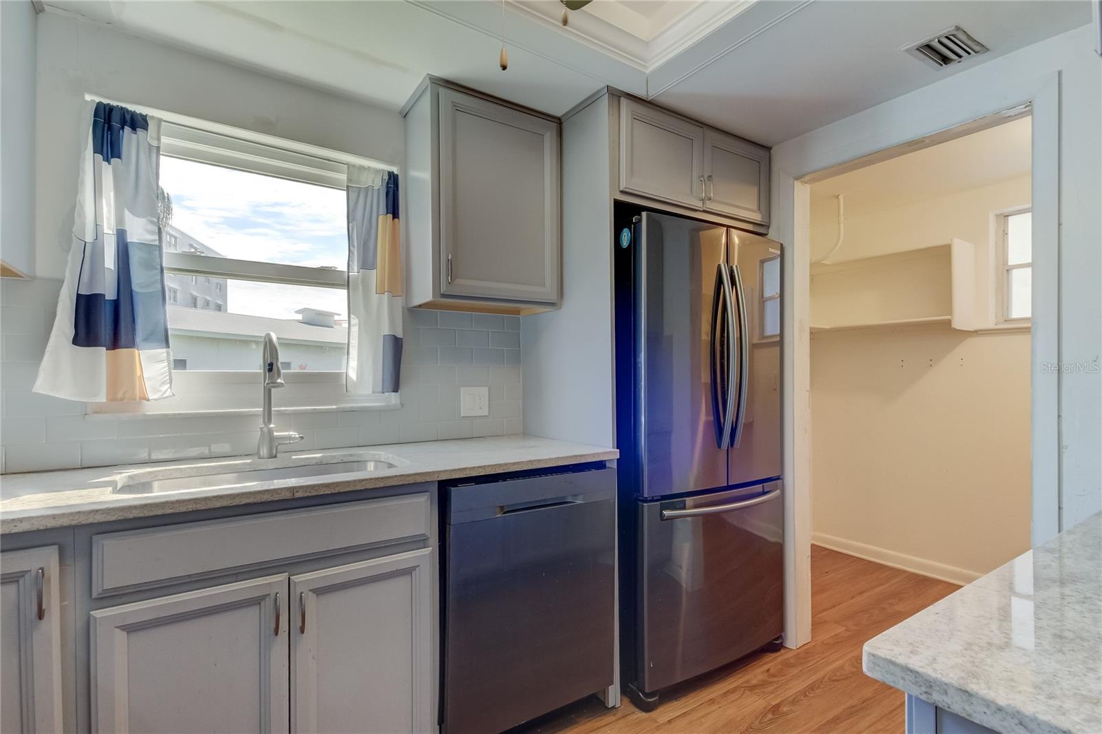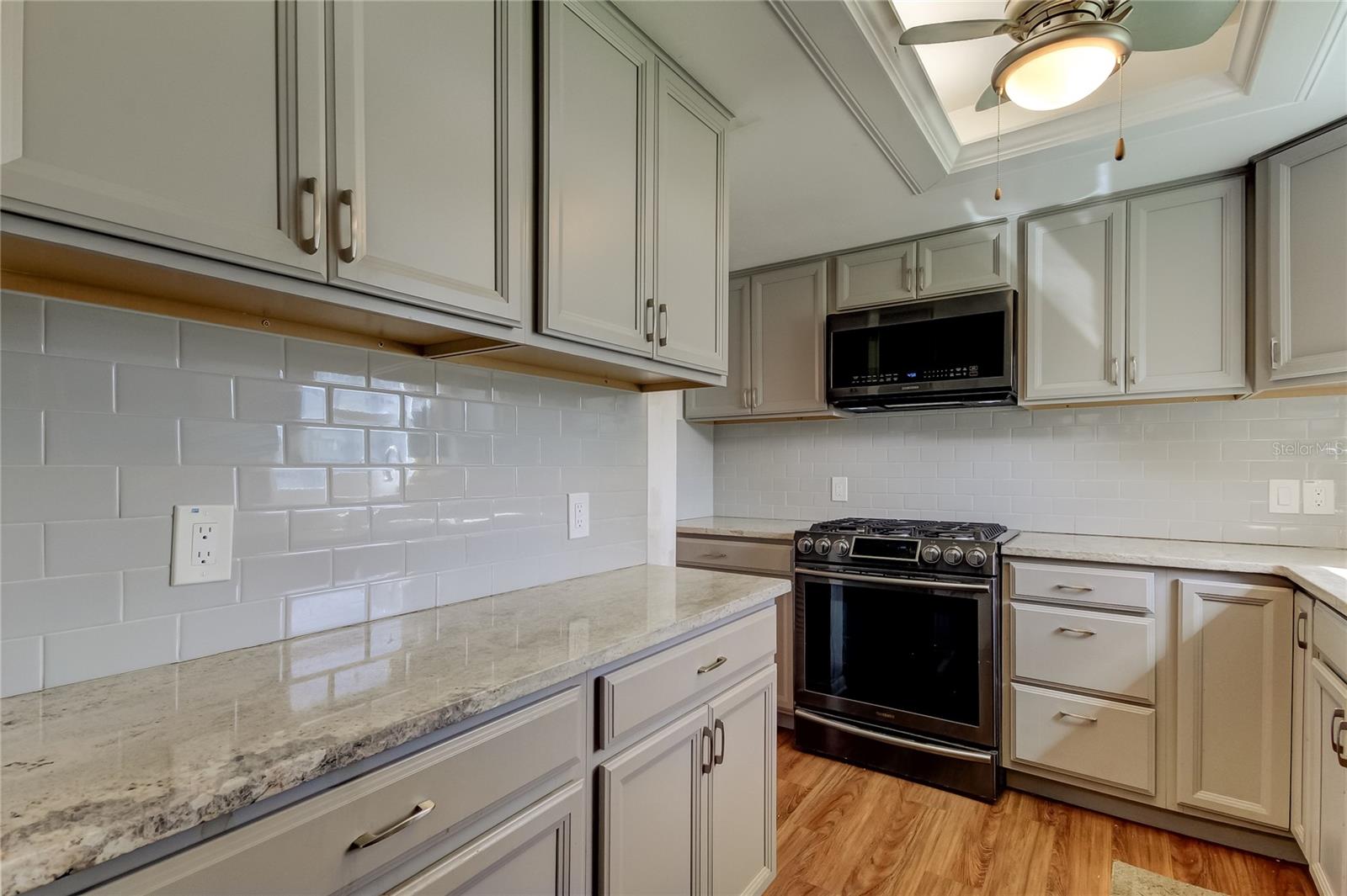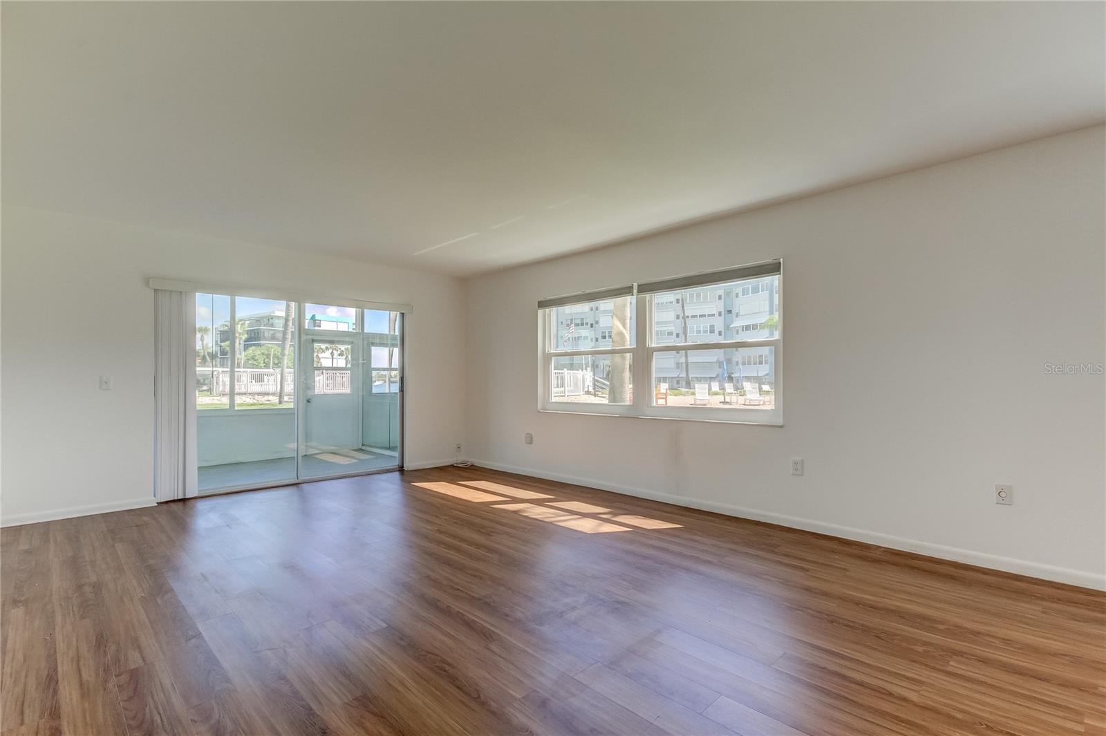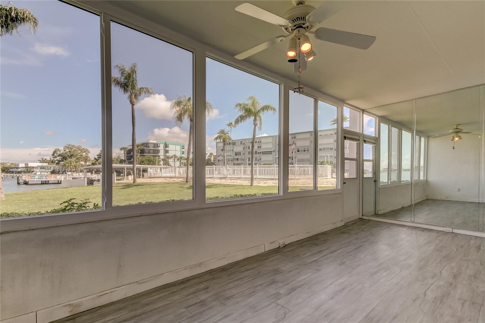 Welcome home to this 1st Floor, walkout - 2 bedroom, 2 bath condo with beautiful views of Boca Ciega Bay. This spacious end unit has large windows providing for lovely natural light. You will be pleased with the renovated kitchen featuring stainless steel appliances, granite counters, gas cooking, plenty of cabinetry and a bonus large pantry. Easy clean laminate flooring throughout the living area and Florida room. The sizable bedrooms fit king beds easily with room to spare for an at home office or reading nook. The owner’s suite has an updated bath, with walk in shower, new vanity, and sleek tile. With a newer HVAC and windows, what more could you ask for? This well-maintained 55+ community has many amenities including waterfront heated pools, inviting patio with grills for waterside dining, a pier for fishing or just relaxing with family and friends, shuffleboard courts, a clubhouse for gathering and a fitness center. The monthly fee includes Cable, Internet, Water, Sewer, Trash, and even Gas for cooking, hot water, and heat. No Car needed here - try the new SunRunner from “the Beach to the Burg.” Experience the Florida Lifestyle at the Beach or downtown St Petersburg with its dining, vibrant waterfront scene and the new Pier. Easy access to Tampa International and St. Pete Clearwater airport. Laundry is located on each floor. Parking Spot #18. Sorry, no pets and no leasing permitted.