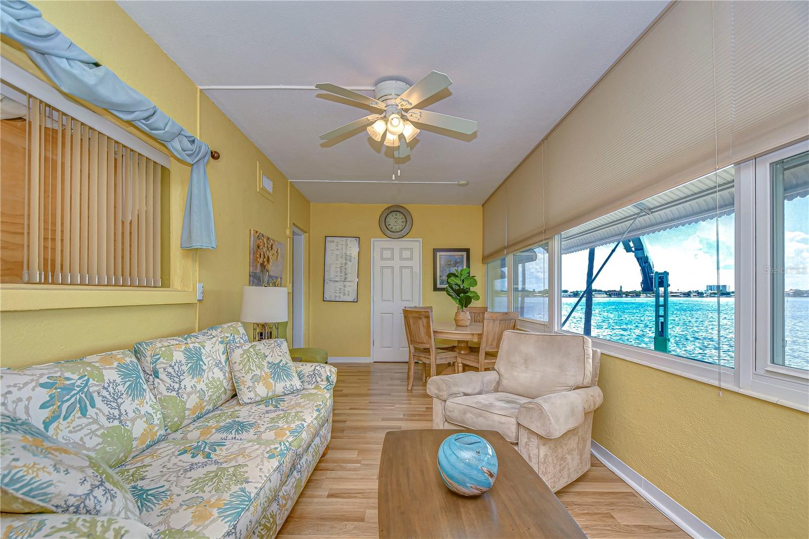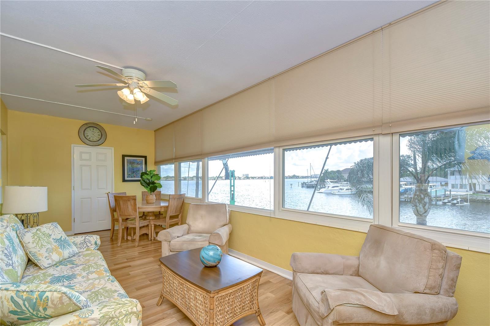 Experience the ultimate waterfront lifestyle in this beautiful condo, where every day begins with breathtaking views of Boca Ciega Bay and the Intracoastal Waterway. Imagine sipping your morning coffee while watching dolphins, manatees, and passing boats from your expansive Florida room. Nestled within the serene 55+ Shore Plaza community, this charming residence is just minutes from the award-winning St. Pete Beach and is brimming with amenities to enhance your comfort and enjoyment. This inviting condo features two generously sized bedrooms, a full bathroom, and a spacious Florida sunroom that offers versatile space—perfect as an office, guest room, or relaxing lounge. This condo features dual entry doors, the front entry from the living room and another from the bedroom. Upon entering the front door, you'll be greeted by a warm and welcoming living room, seamlessly connected to a fully equipped kitchen with a gas stove, ample cabinet storage, and a large sink. The sunroom is an ideal spot to unwind, whether you're starting your day or winding down with evening cocktails. There is a laundry room located on every floor along with a trash shoot. Shore Plaza offers a host of amenities, including a scenic dock and fishing pier, waterfront picnic tables with a gas grill. The condo fee covers cable/internet, gas, water, and building maintenance, with a central gas boiler that helps reduce individual insurance costs. You will love the Shore community with its clubhouse, heated waterfront pool, fitness center, billiards, and a kitchen. Conveniently located in South Pasadena, you'll have easy access to shopping, dining, and medical facilities, as well as the new SunRunner Express bus that can whisk you away to the beach or downtown St. Petersburg. Explore the vibrant cultural scene, trendy restaurants, and world-class museums of downtown St. Petersburg and Gulfport, all just a short drive away. Plus, Tampa International Airport is only 35 minutes from your door.