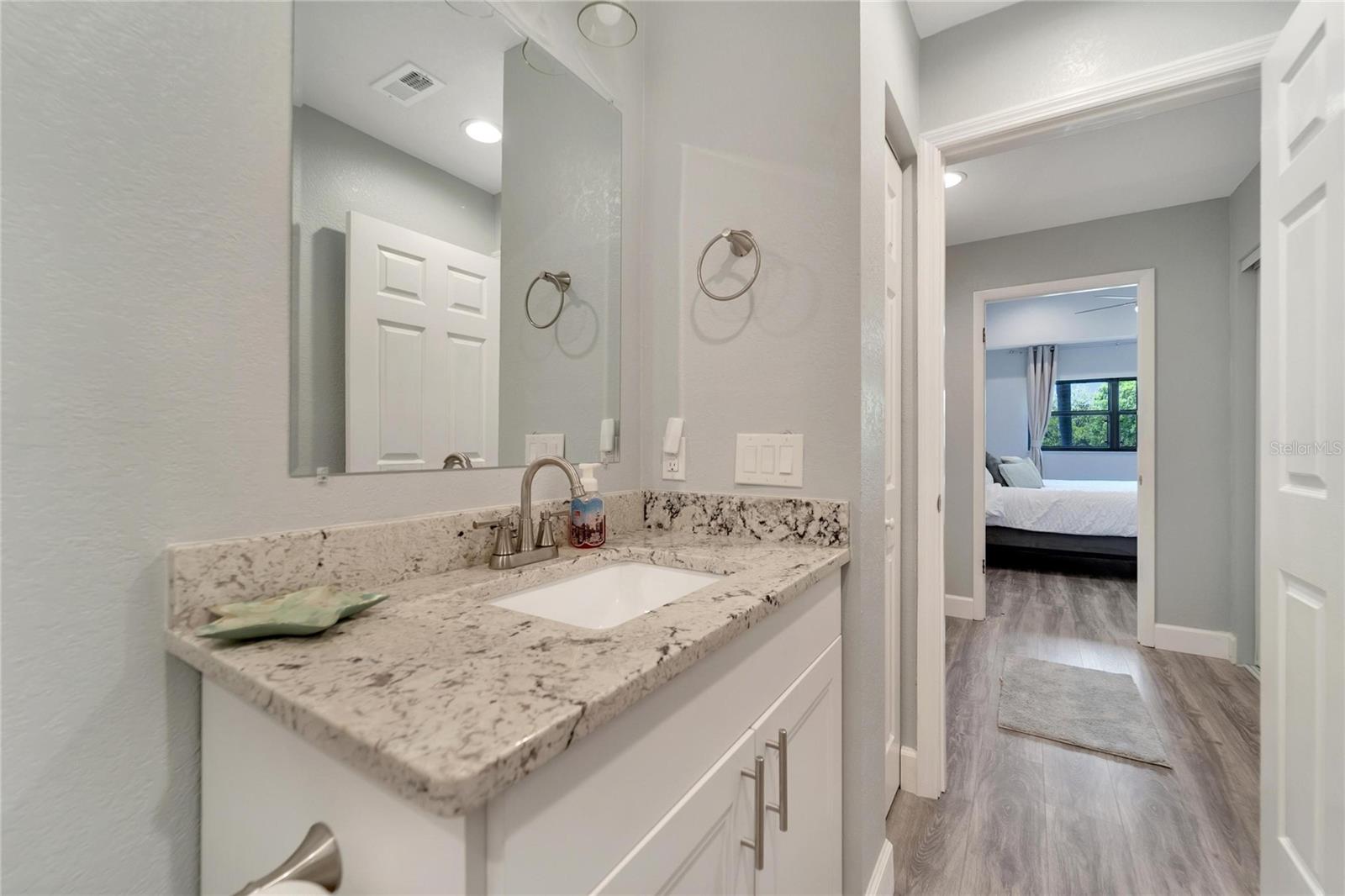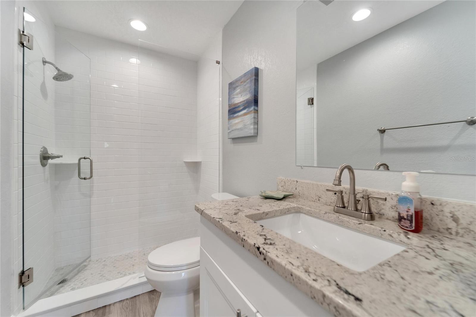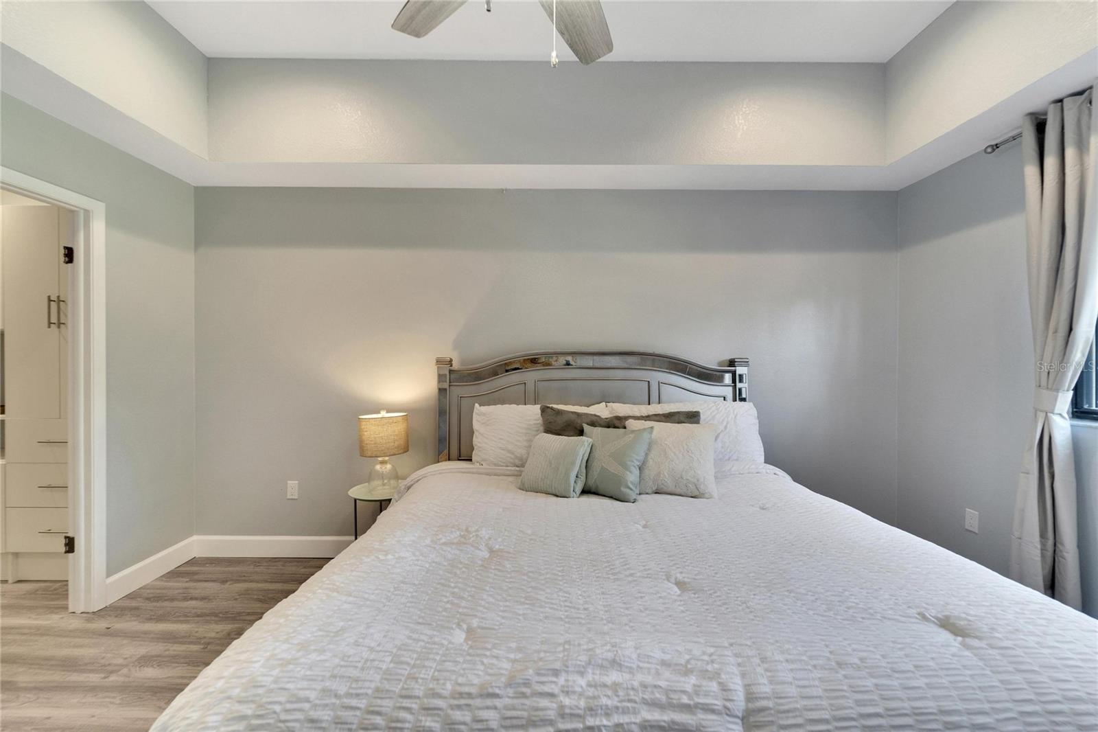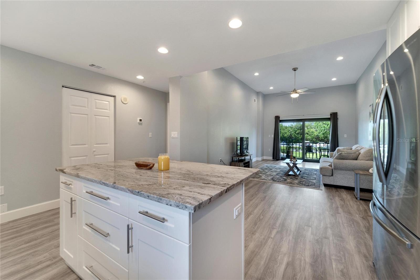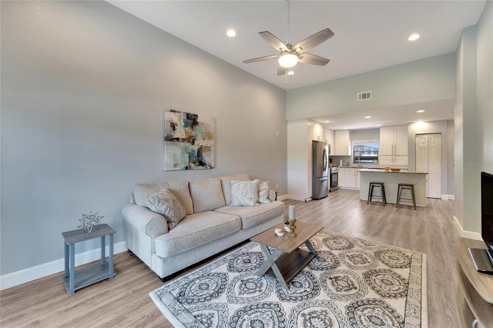 Experience the epitome of modern living in this beautifully remodeled 1-bedroom, 1.5-bathroom condo, ideally located in the heart of South Pasadena. Meticulously updated with thoughtful design and premium finishes, this ground-floor unit stands apart from the rest, offering unparalleled convenience and style. What makes this home truly unique is its soaring ceilings—13 feet in the living room and 11 feet in the primary suite—made possible by its ground-level location. The result is a bright, open space that feels expansive and luxurious. The new waterproof luxury vinyl plank flooring throughout is as durable as it is stylish, complemented by sleek baseboards for a clean, contemporary look. The kitchen is a chef’s dream, featuring solid wood, soft-close shaker cabinets, a built-in pantry, and a stunning marble-topped island with abundant storage. Brand-new Samsung appliances complete this gourmet space, while a private washer and dryer are seamlessly integrated for ultimate convenience. The spacious primary suite is a retreat in itself, with vaulted ceilings, a custom walk-through closet, and a spa-like bathroom. Enjoy designer touches such as upgraded granite, chic tilework, and a high-end vanity. The full-size shower, adorned with a Super-HD glass door, elevates the entire experience. Additional features include a new sliding glass patio door, recessed lighting with dimmers, hurricane shutters, and an assigned parking space. The building offers a wealth of amenities, including a pool, hot tub, steam room, sauna, fitness center with pool views, library, game room, and party room. Step outside to discover nearby parks, tennis courts, and a Publix within walking distance—an unbeatable location for convenience and leisure. This exceptional condo is more than a home; it’s a lifestyle upgrade. Don’t miss this rare opportunity!