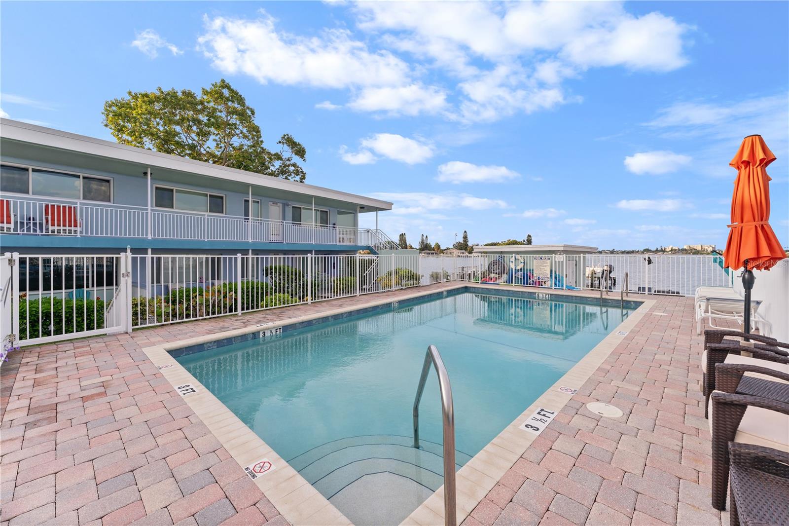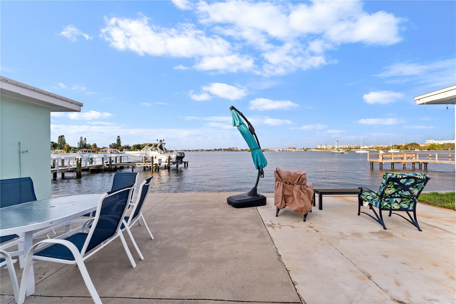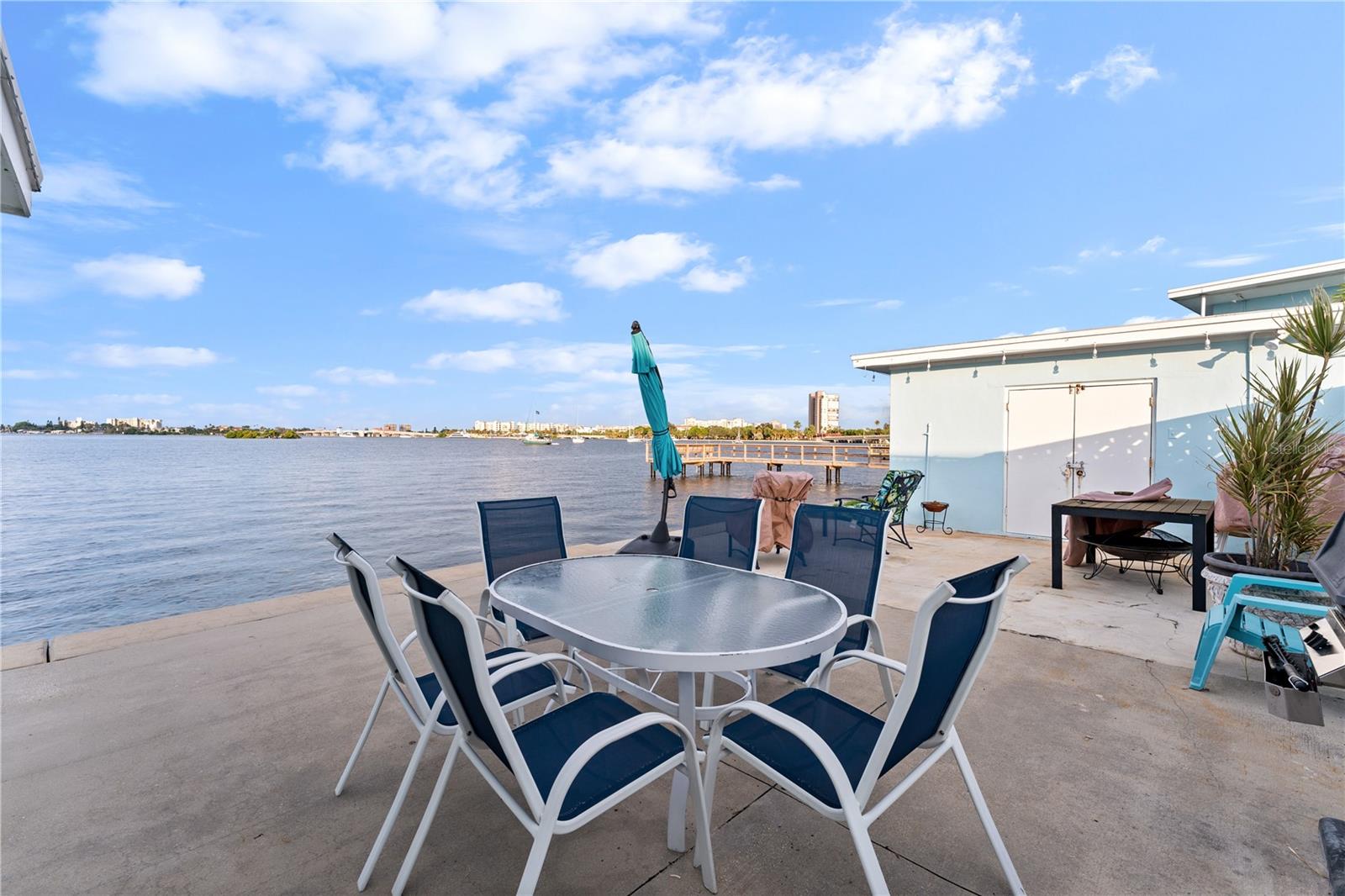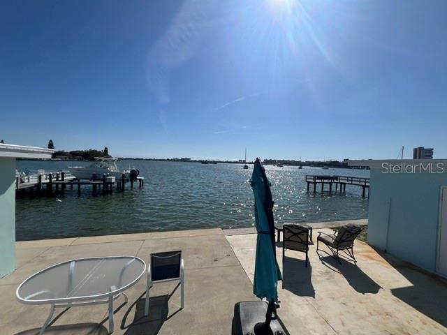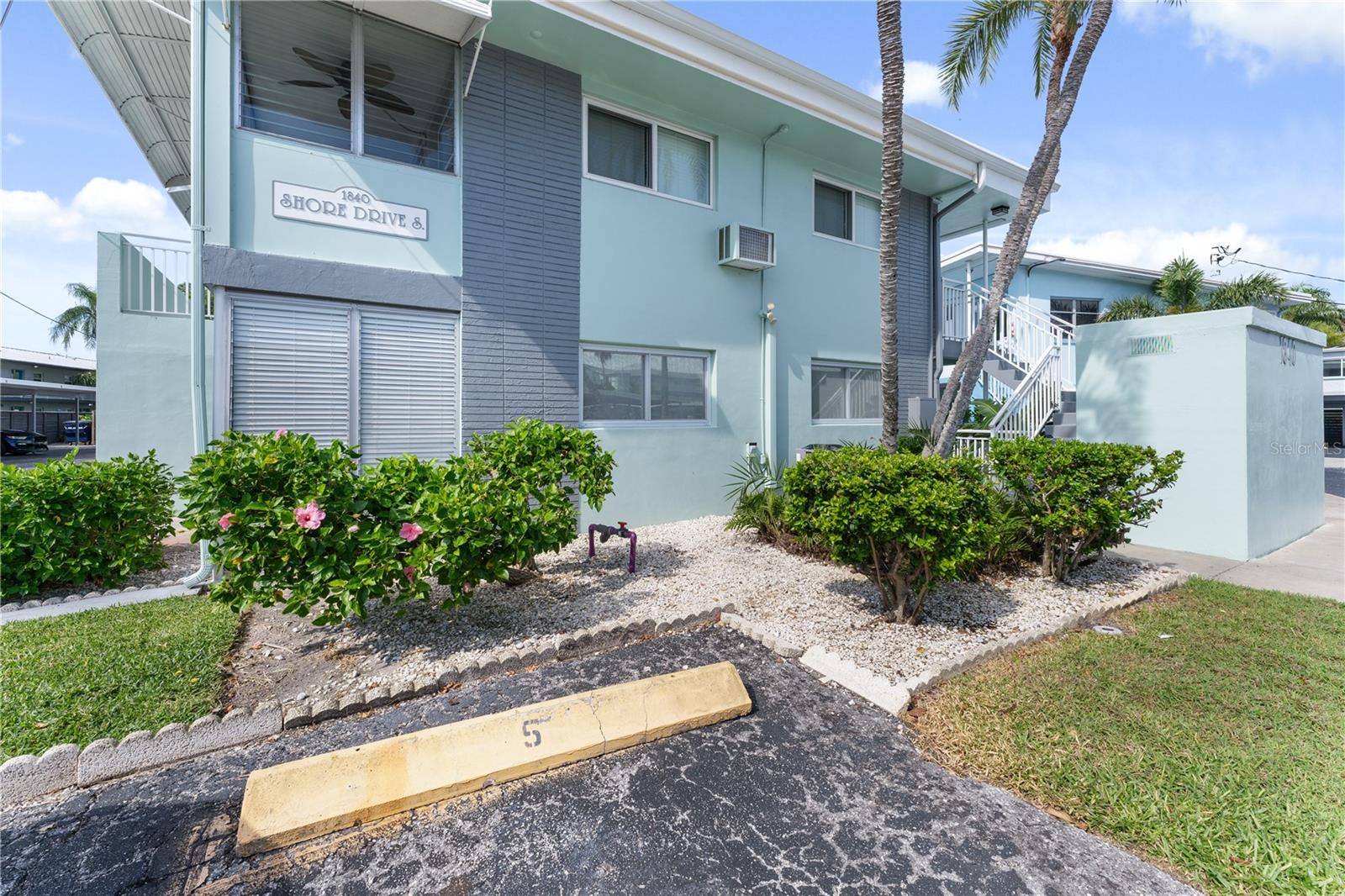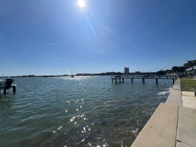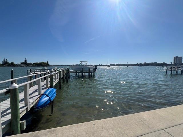 Enjoy waterfront living on beautiful Boca Ciega Bay! Shore Drive is a hidden jewel. Just steps from your unit you'll enjoy gorgeous sunsets while sitting at the waterfront patio. Get ready to see Dolphin and Manatee playing in your backyard. If you enjoy paddle boarding or kayaking you are in for a treat. It's a wonderful place to call home year round or enjoy as a vacation home. Ground floor unit offers easy access. This fully remodeled 1 bedroom, 1 bath condo is all you need and is turn key move in ready. Porcelain tile throughout is perfect for our Florida climate. Absolutely beautiful updated bathroom, large linen closet and very spacious walkin closet that also offers additonal overhead cabinet storage. Updated kitchen with plenty of cabinets and stainless steel appliances. Portable island on wheels is perfect for the gourmet at heart or family and friends to gather. Charming french sliding doors off living room lead to your spacious bedroom. Private enclosed laundry room complete with washer & dryer. This unit comes with 2 private patios. The rear covered patio is screen enclosed and perfect storage for your bike, paddle board or kayak. You also have a spacious covered front porch. Saving the best for last is your waterfront pool ovverlooking Boca Ciega. Available immediately and priced to sell quickly. Please note a few of the rooms shown have been virtually staged to show furnishing options