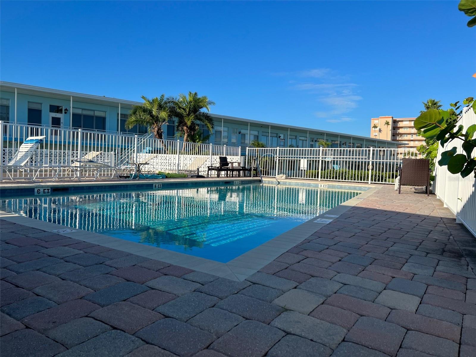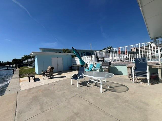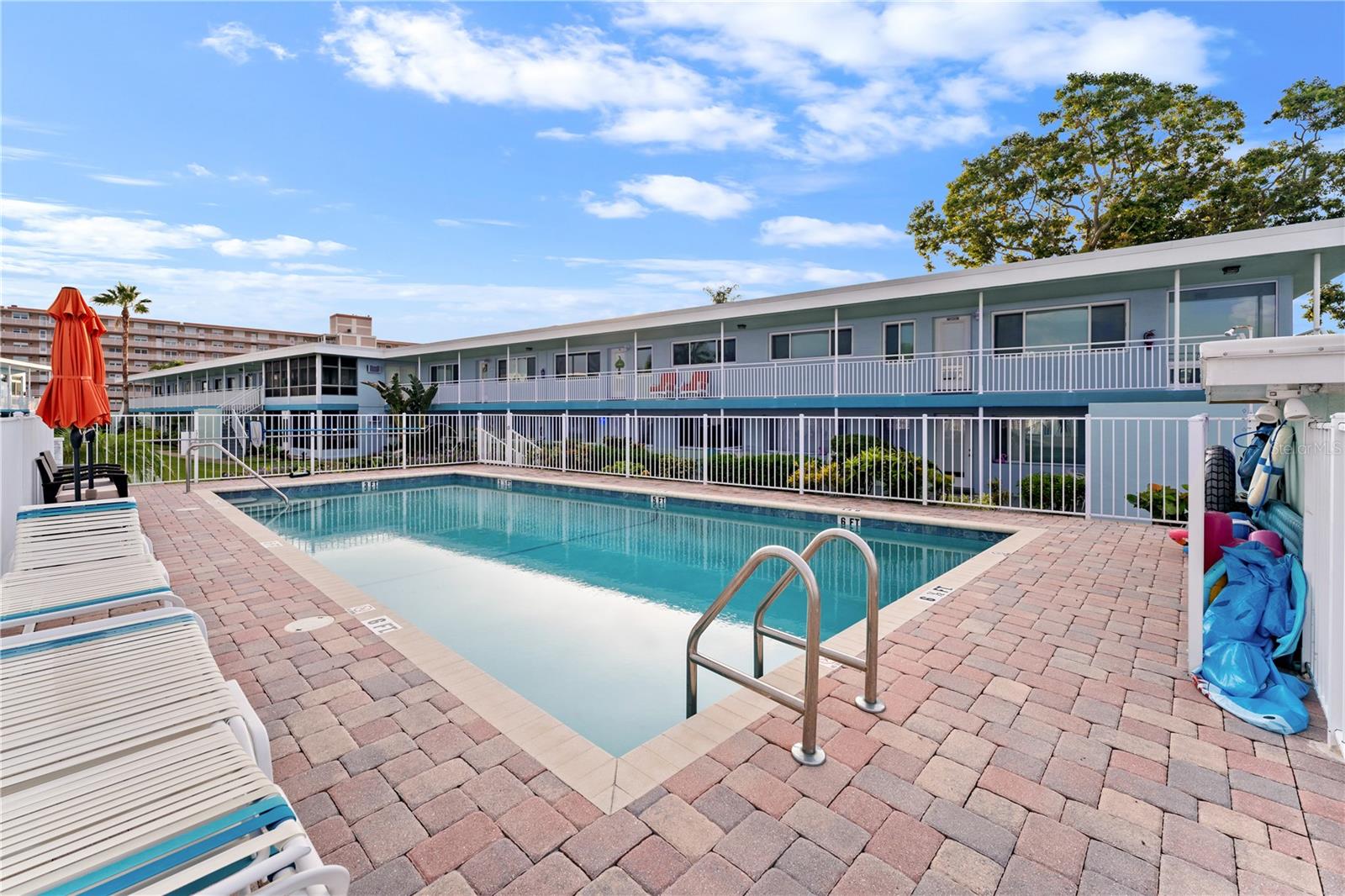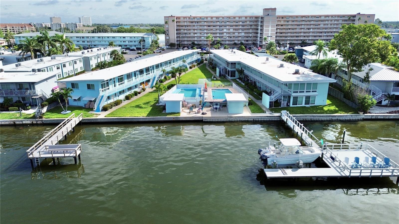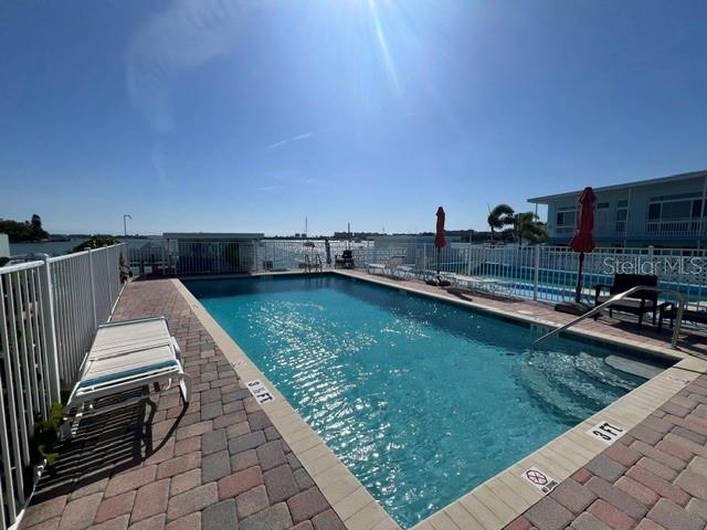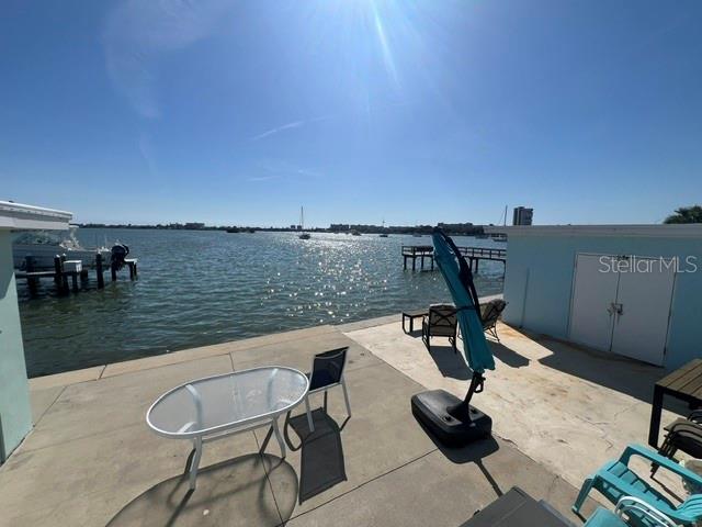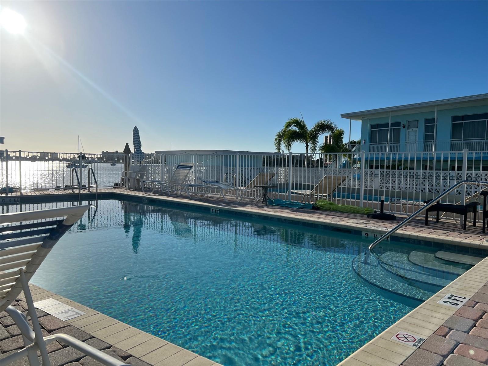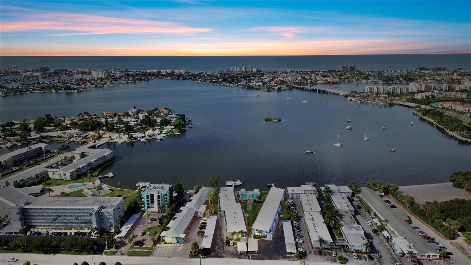 Enjoy waterfront living on beautiful Boca Ciega Bay! Shore Drive is a hidden jewel. Just steps from your unit you'll enjoy gorgeous sunsets while sitting at the waterfront patio. Get ready to see Dolphin and Manatee playing in your backyard. If you enjoy paddle boarding or kayaking you are in for a treat. It's a wonderful place to call home year round or enjoy as a vacation home. Ground floor unit offers easy access. This fully remodeled 1 bedroom, 1 bath condo is all you need and is turn key move in ready. Porcelain tile throughout is perfect for our Florida climate. Absolutely beautiful updated bathroom, large linen closet and very spacious walkin closet that also offers additonal overhead cabinet storage. Updated kitchen with plenty of cabinets and stainless steel appliances. Portable island on wheels is perfect for the gourmet at heart or family and friends to gather. Charming french sliding doors off living room lead to your spacious bedroom. Private enclosed laundry room complete with washer & dryer. This unit comes with 2 private patios. The rear covered patio is screen enclosed and perfect storage for your bike, paddle board or kayak. You also have a spacious covered front porch. Saving the best for last is your waterfront pool ovverlooking Boca Ciega. Available immediately and priced to sell quickly. Please note a few of the rooms shown have been virtually staged to show furnishing options
