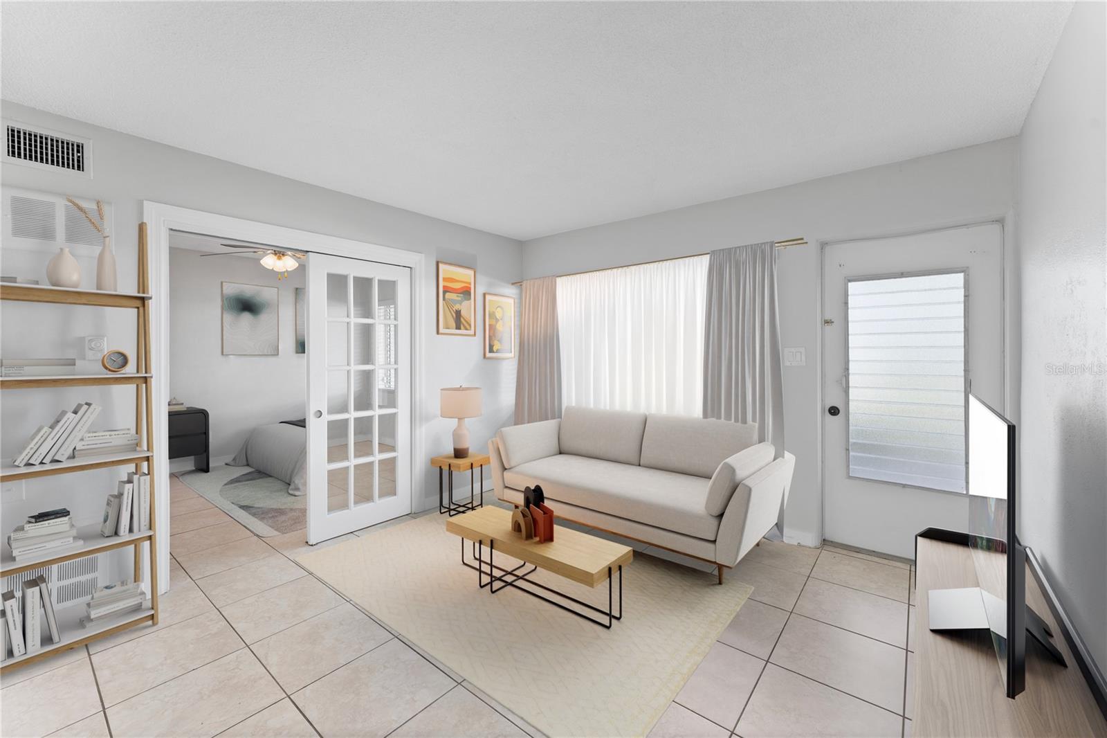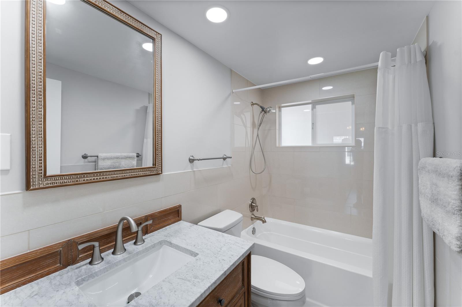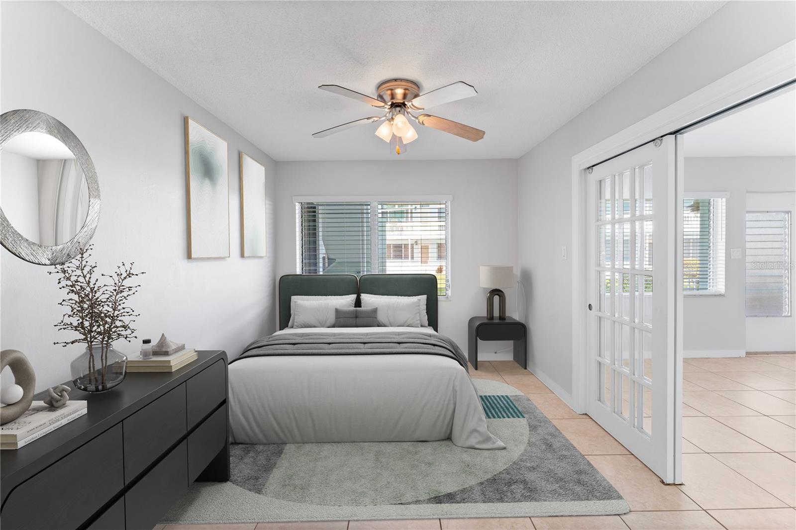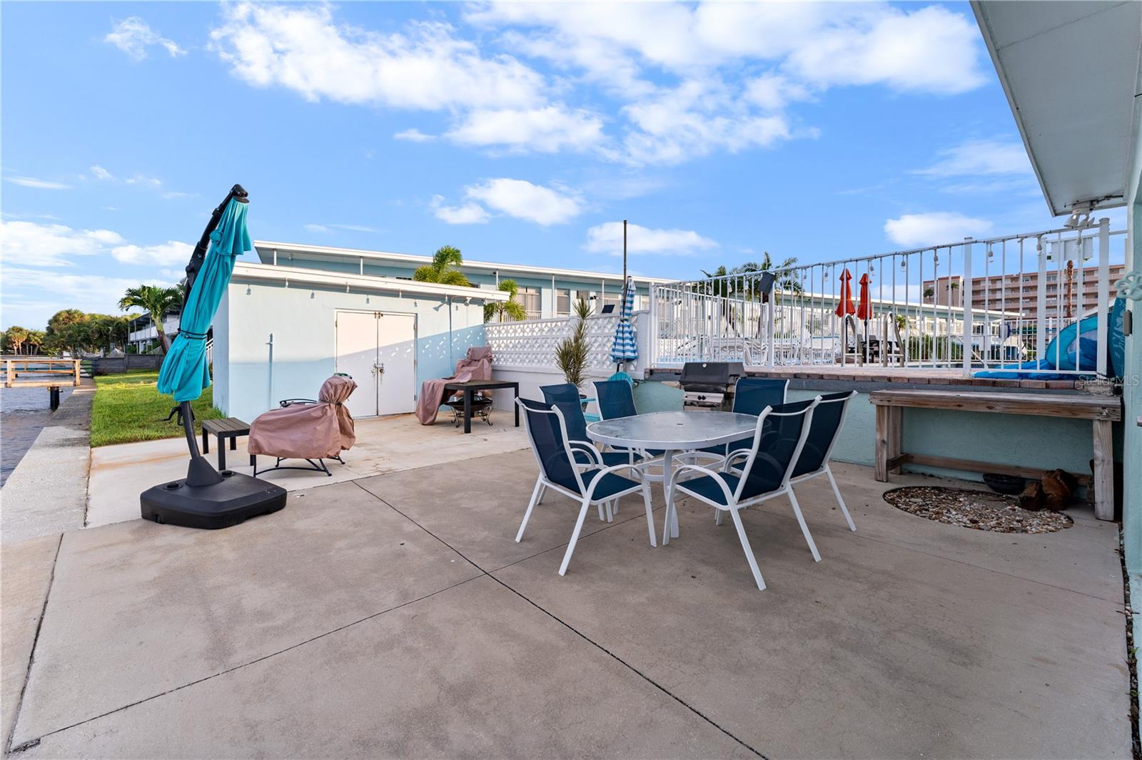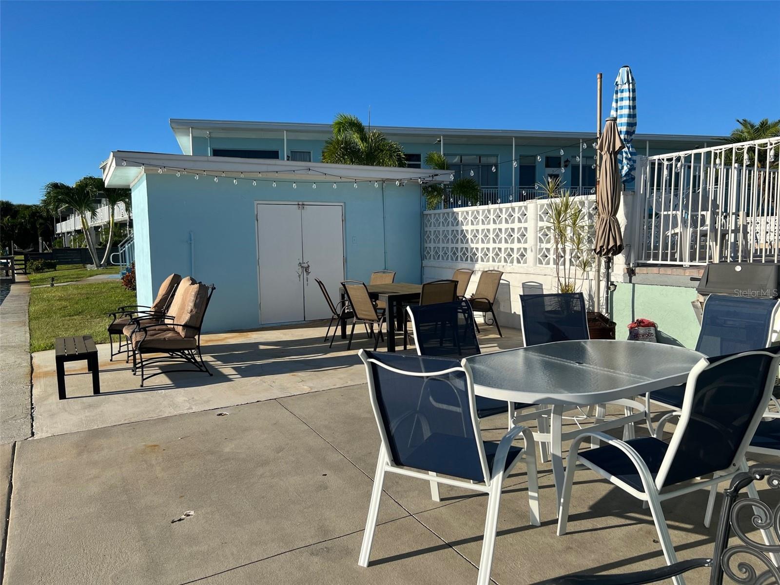 Enjoy waterfront living on beautiful Boca Ciega Bay! Shore Drive is a hidden jewel. Just steps from your unit you'll enjoy gorgeous sunsets while sitting at the waterfront patio. Get ready to see Dolphin and Manatee playing in your backyard. If you enjoy paddle boarding or kayaking you are in for a treat. It's a wonderful place to call home year round or enjoy as a vacation home. Ground floor unit offers easy access. This fully remodeled 1 bedroom, 1 bath condo is all you need and is turn key move in ready. Porcelain tile throughout is perfect for our Florida climate. Absolutely beautiful updated bathroom, large linen closet and very spacious walkin closet that also offers additonal overhead cabinet storage. Updated kitchen with plenty of cabinets and stainless steel appliances. Portable island on wheels is perfect for the gourmet at heart or family and friends to gather. Charming french sliding doors off living room lead to your spacious bedroom. Private enclosed laundry room complete with washer & dryer. This unit comes with 2 private patios. The rear covered patio is screen enclosed and perfect storage for your bike, paddle board or kayak. You also have a spacious covered front porch. Saving the best for last is your waterfront pool ovverlooking Boca Ciega. Available immediately and priced to sell quickly. Please note a few of the rooms shown have been virtually staged to show furnishing options