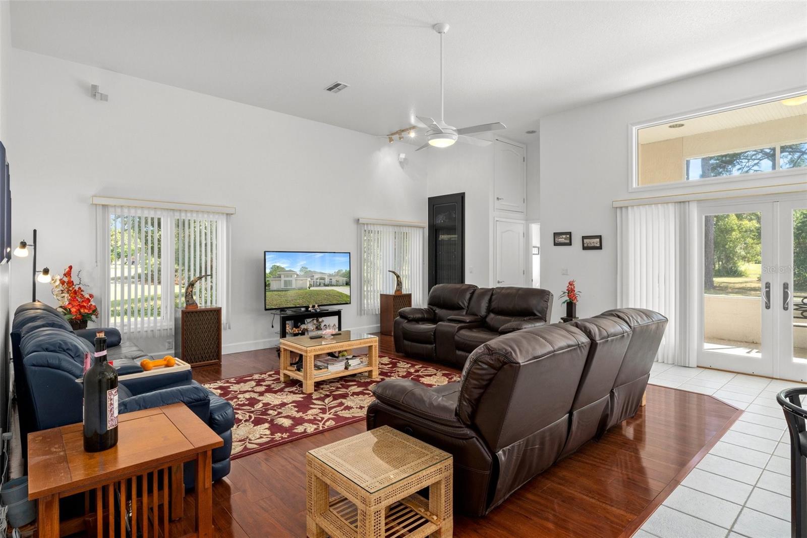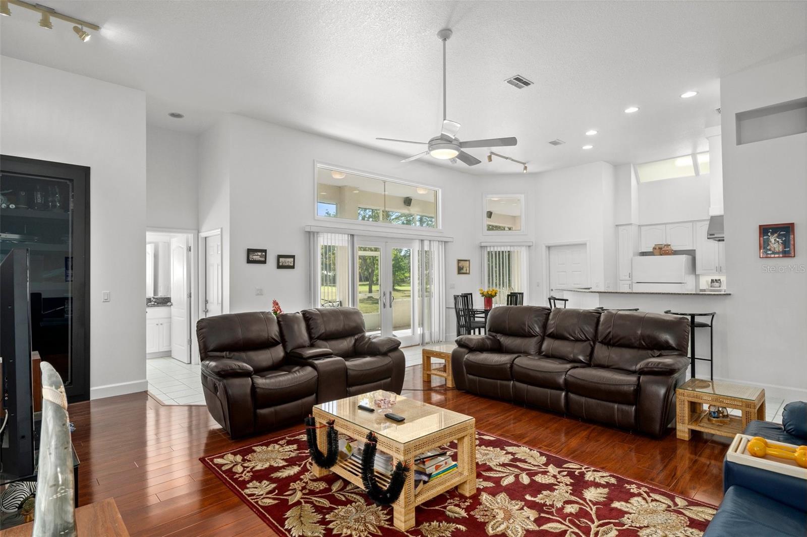 Motivated Seller!! Discover unparalleled luxury and comfort in this spectacular 4-bedroom, 3-bathroom, 3-car garage home located within the prestigious confines of Oak Hills Golf Club. Step into an expansive living space through grand double Marvin front doors that welcome you with sophistication. This home is engineered with precision for superior durability and is built like a fortress providing strength and security with the added touch of premium glass block windows providing privacy. The elegant 12-foot ceilings offer a spacious and open ambiance throughout. Light and bright with an open architect and split bedroom floor plan. No carpet. Formal dining and living rooms with a great room as the central hub. A chef's dream, featuring solid stone countertops, custom plywood cabinets designed for functionality and style, a gas cooktop, and a central island. The kitchen is thoughtfully designed with a breakfast bar and an inviting eat-in cafe, ideal for both casual meals and culinary adventures. Formal living room and dining room. Enjoy panoramic views of the picturesque golf course from the master bedroom's large bay window. The master suite boasts a 12x10 walk-in closet, luxurious jetted tub, walk in shower, dual vanities, and the added comfort of a bidet. Throughout the home, find ample storage spaces that effortlessly accommodate your needs. French doors reveal a captivating full-length Lanai, offering a stunning panorama of the serene golf course. Equipped with a sink and a two-burner stove, this space is an outdoor entertainer's paradise. Laundry room is 15x14 mol with utility sink, cabinets, counter space and hanging rack. A three-car garage, featuring insulated doors, complements the ample driveway space, providing parking for an additional 6 cars. The abundant storage space to include a walk-in attic ensures a well-organized and clutter-free living experience. This residence harmonizes sophistication, practicality, and comfort, offering a lifestyle that seamlessly combines luxurious living with the tranquility and scenic beauty. Whole house water softener. 80-foot well for irrigation convenience.