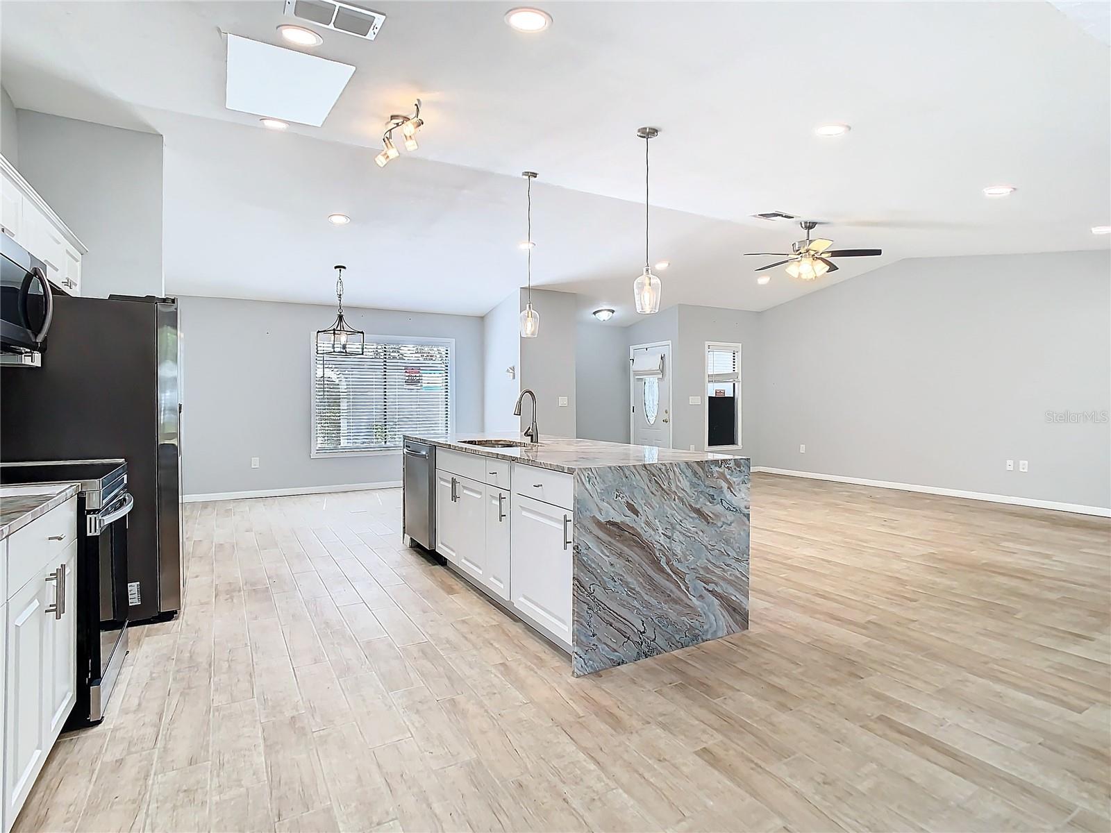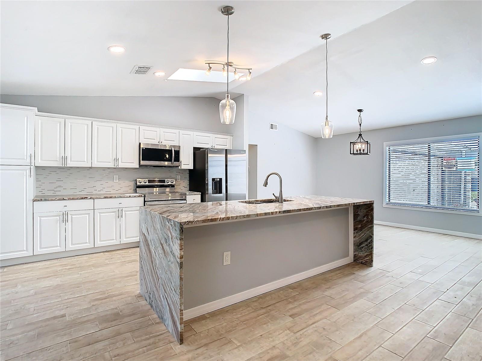 A single-family home comprised of a modest square footage that "checks all the boxes." Inside, interior updates are found throughout the residence. Soft, light wall color, along with continuous tile flooring create a calming ambience that flows between the living, kitchen and bedroom spaces. The kitchen boasts modern, neutral cabinetry and the granite countertop has a waterfall design over both ends of the island. Eating and living spaces are open to the kitchen, providing a cohesive area for gathering together. A trio of sliding doors on the far wall of the great room open to the back patio. Each of the two bathrooms are styled with granite countertops complimentary to that of the kitchen. The primary bedroom suite has a closet with built-in storage shelving, too. This home is situated on a spacious corner lot. Finally, the attached, 2-car garage has a utility sink and washer/dryer hookups. Property sold "As-is". Buyer and/or buyer's agent responsible for verifying all pertinent information deemed relevant by the prospective buyer, including but not limited to square footage, acreage, utilities, taxes, zoning, permitting, condition, school zones, HOAs, etc.