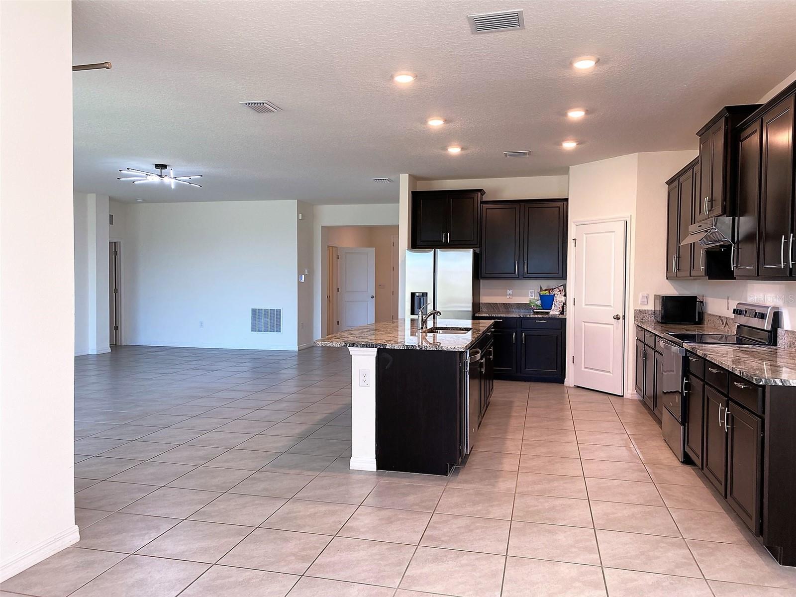 A 2537 sq. ft. single family home in the gated Barrington community. 4 bedrooms 3 bathrooms (all with granite counters) spread across 2 suites. Secluded master suite at the back of the house has a soffit ceiling, 2 big walk-in closets, a double sink vanity, and a luxurious tub, and a walk-in shower. Second suite also has a walk-in closet and walk-in shower. Wide open kitchen with granite counters, pantry, Fotile under cabinet range hood, and an expansive large floating island. The home has high ceilings, new window blinds (2023), all windows are easy clean tilt-sash energy efficient thermopane hurricane double pane windows with no need for hurricane shutters, lots of storage, a 3 car garage, attic with radiant insulation, and a fenced back yard bordering an open area with no neighbors. Back yard is large enough to put in a pool. Back patio is large enough for a table. Home is situated high and dry. Smart home systems including door bell and sprinkler system, optionally integrated with ADT. The Barrington community offers 2 pools (one of them Olympic size); a Splash Pad; a play ground; miles of walking trails; lighted tennis court, basketball court and volleyball court; fitness center; dog park; billiards room; a storage area for RVs & boat parking; meeting rooms for rent. Close to Publix, Target, Kohls, Walgreens, elementary schools, etc., about 6 miles to Weeki Wachee Springs paddle boarding and kayaking with manatees.