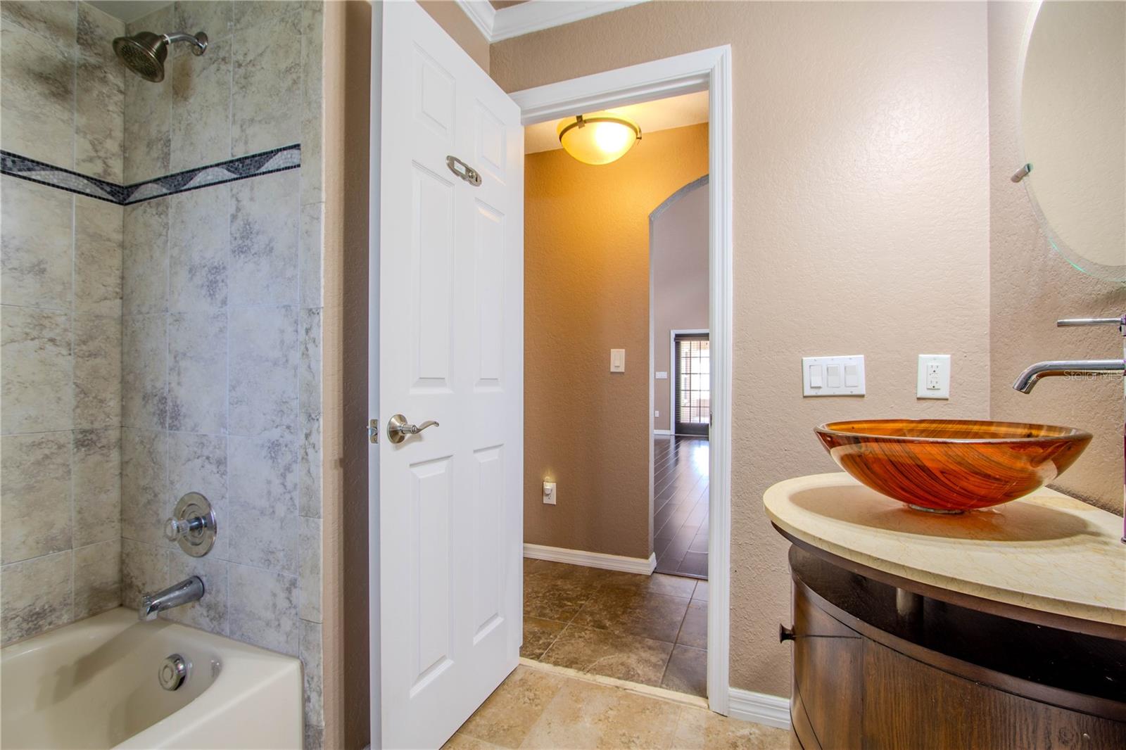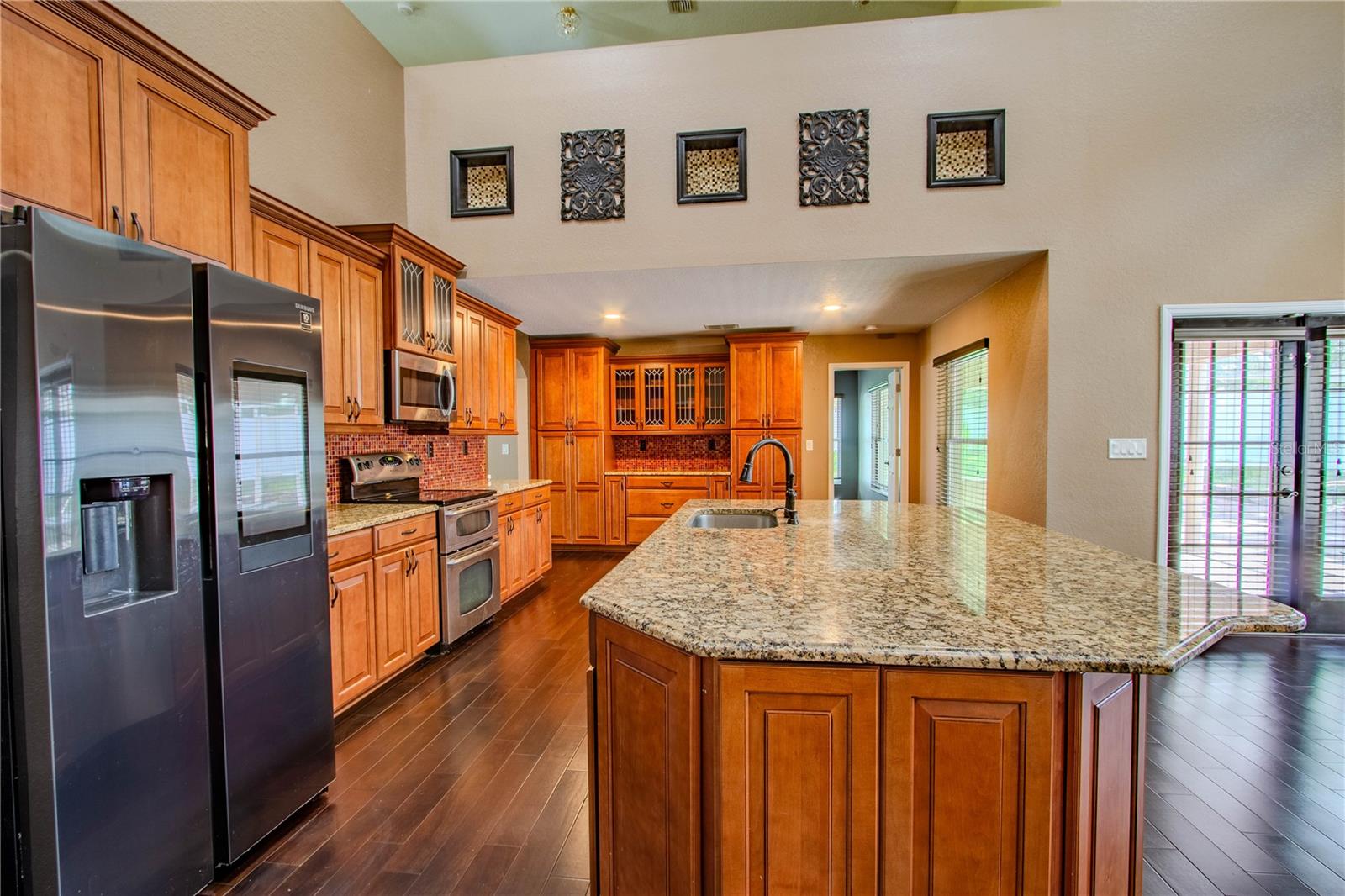Welcome to your dream oasis in Spring Hill! Seller Motivated! This executive custom pool home is a true masterpiece, boasting 4113 sq ft of luxurious living space. No community HOA. Nestled in a prime location, this property features 5 bedrooms, 4 bathrooms, and a spacious upstairs loft area perfect for relaxation or entertaining. The layout includes not just one, but three master bedrooms, each with its own private en suite bathroom. The first floor hosts a master retreat, while upstairs, two master bedrooms await. The double master suite is particularly impressive, offering tray ceilings, a large walk-in closet, an additional sitting room, and a lavish en suite bathroom complete with a jetted garden tub and walk-in shower. The heart of the home is its custom kitchen, highlighted by granite countertops, stainless steel appliances, ample wood cabinets, and an inviting island with bar-style seating. Throughout the home, custom lighting, fixtures, and ceiling fans add elegance and functionality. A hard-wired home security system with cameras provides peace of mind. For convenience, the laundry room features wood cabinets and granite countertops, ensuring organization is effortless. Step outside to discover a covered porch at the entrance and a breathtaking balcony upstairs, perfect for enjoying picturesque sunsets. The screened-in pool area is a haven unto itself, featuring brick pavers, an outdoor shower, and ample space for entertaining or unwinding. A detached pool house offers additional storage or the potential for a bonus living space. The fully fenced property is adorned with brick paver driveways leading to a parking pad and a two-car garage. This stunning home is truly turnkey, awaiting your personal touch. Don't miss out on this opportunity—schedule your showing today and envision yourself living in luxury and comfort in Spring Hill!