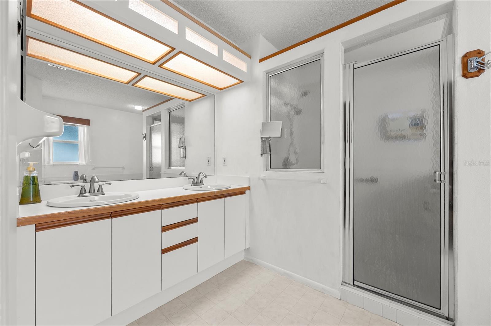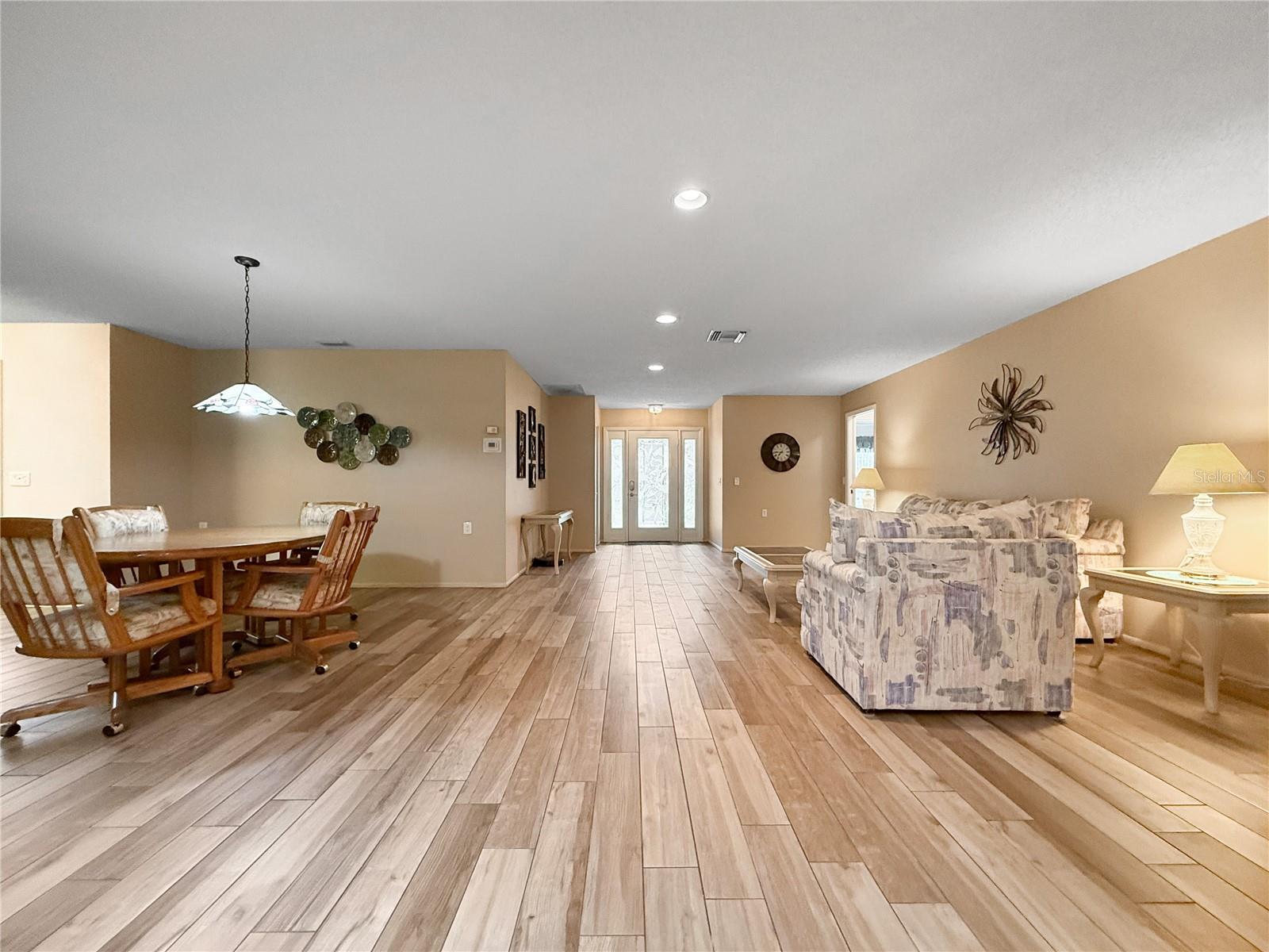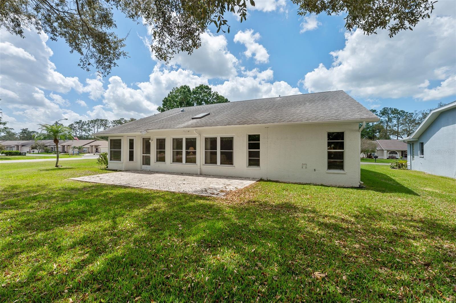 Discover your future residence on this prime corner lot within an active 55+ golf community. This delightful two-bedroom, two-bathroom home features an open floor plan that is flooded with natural light. The new, stylish ceramic tile flooring adds a designer touch. The spacious living room and dining area area enhanced by skylights, along with an area that could be considered a sunroom with numerous windows making it perfect for entertaining, eat-in galley kitchen is equipped with stainless steel appliances, making it both functional and appealing. Retreat to the primary bedroom, which boasts dual sinks, a shower, and a separate garden tub, providing a serene escape to unwind. An additional generously sized bedroom is also available for your use. The interior laundry room features built-in cabinetry, a countertop, and a utility sink to help keep you organized. Step outside to enjoy a lovely open paver patio, ideal for fresh air and offering panoramic views of the community. This home is conveniently located near the community amenity center. Timber Pines is a 24-hour guard-gated active adult community catering to those aged 55 and over, nestled along the picturesque Nature Coast of Tampa Bay. This meticulously maintained neighborhood is surrounded by stunning natural scenery and offers an impressive array of amenities. Golf enthusiasts can choose from four expertly manicured golf courses. Additional features include miles of scenic walking paths, a recently updated clubhouse, a restaurant and bar, a fitness center, and courts for shuffleboard, tennis, basketball, and pickleball. Residents also enjoy a private billiards room, a new dog park, picnic areas, a wellness center, craft rooms, and several community pools, including two Olympic-sized options—all available for a modest monthly HOA fee. Welcome home, call today to see this home for yourself!